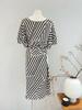 Vestido de Seda de Manga Corta para Mujer 2026 Primavera y Verano Nuevo Estilo Estampado Transpirable Lazo para Ceñir la Cintura Vestido 100% Seda de Morera