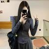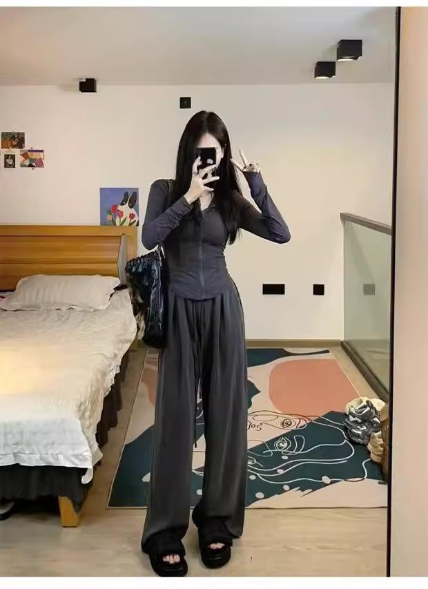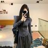 Stand collar waist yoga sun protection clothing - gray (high quality)