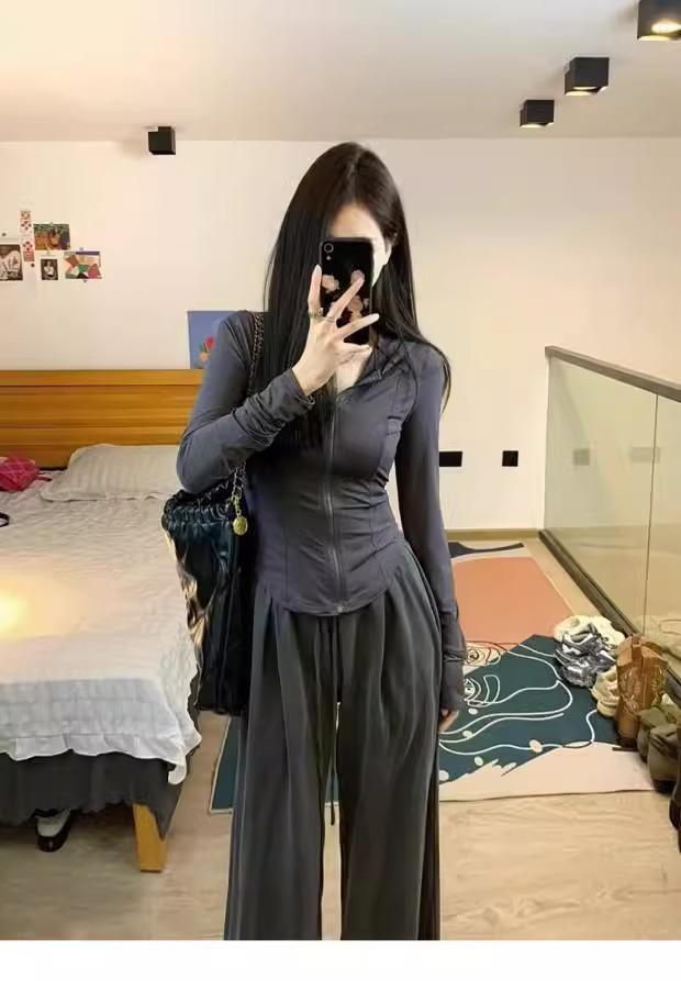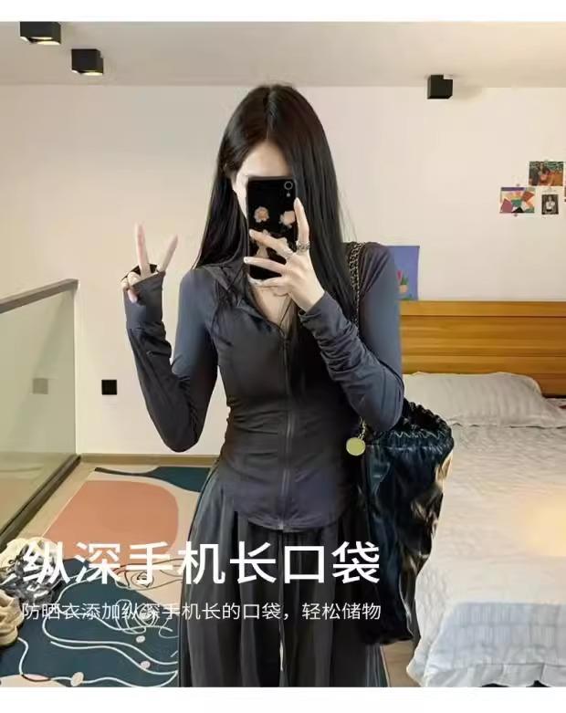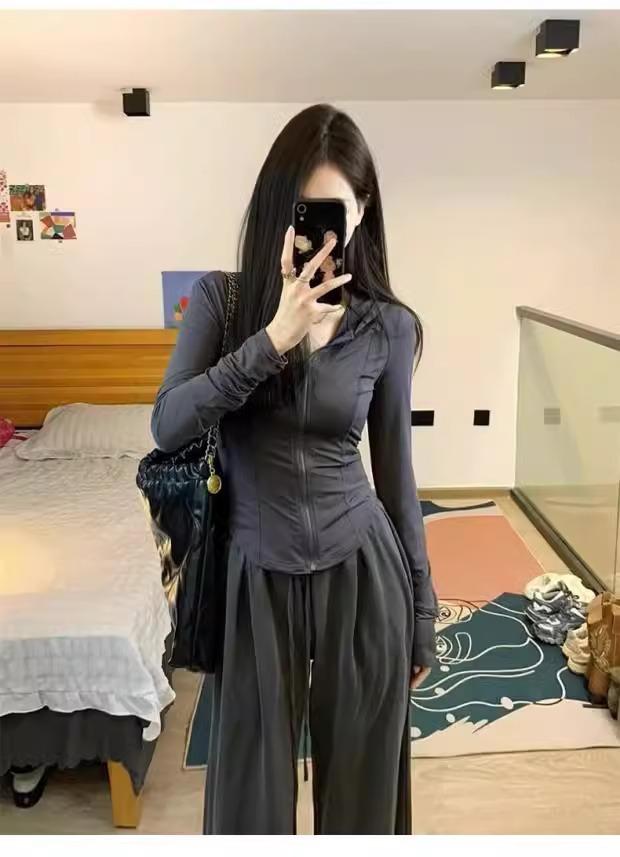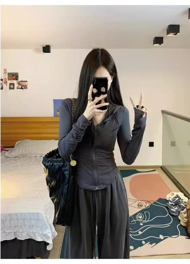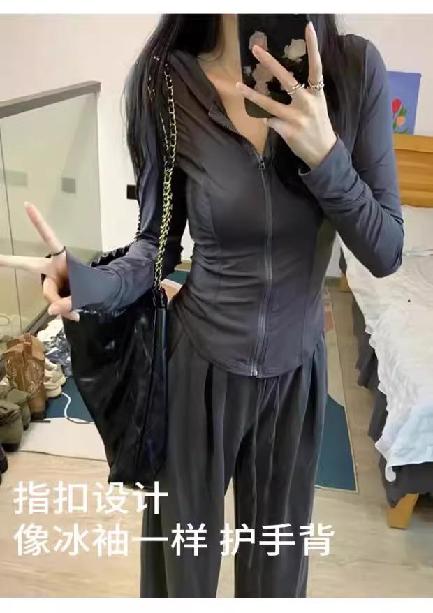 Hooded slim fit yoga sun protection clothing - gray (high quality)