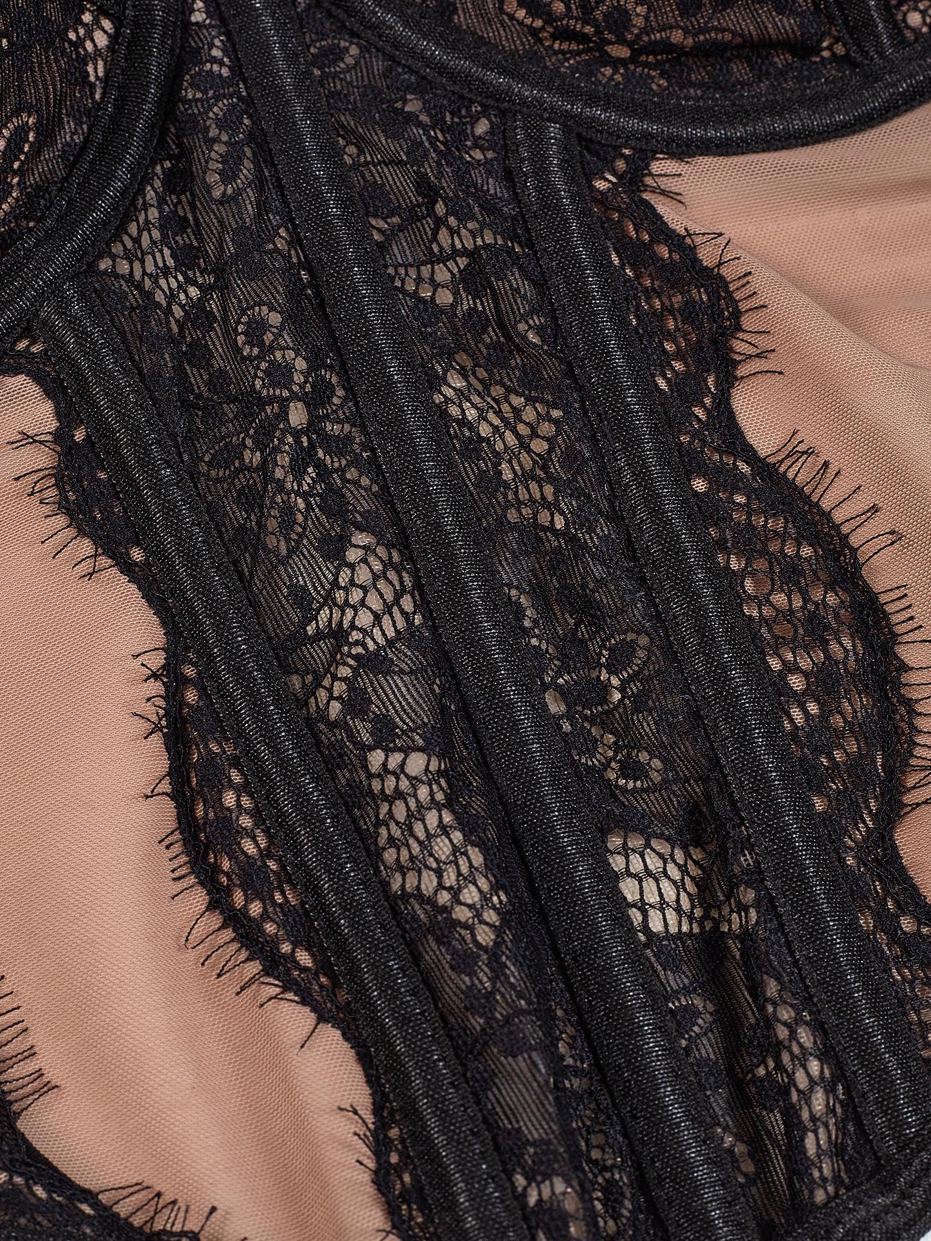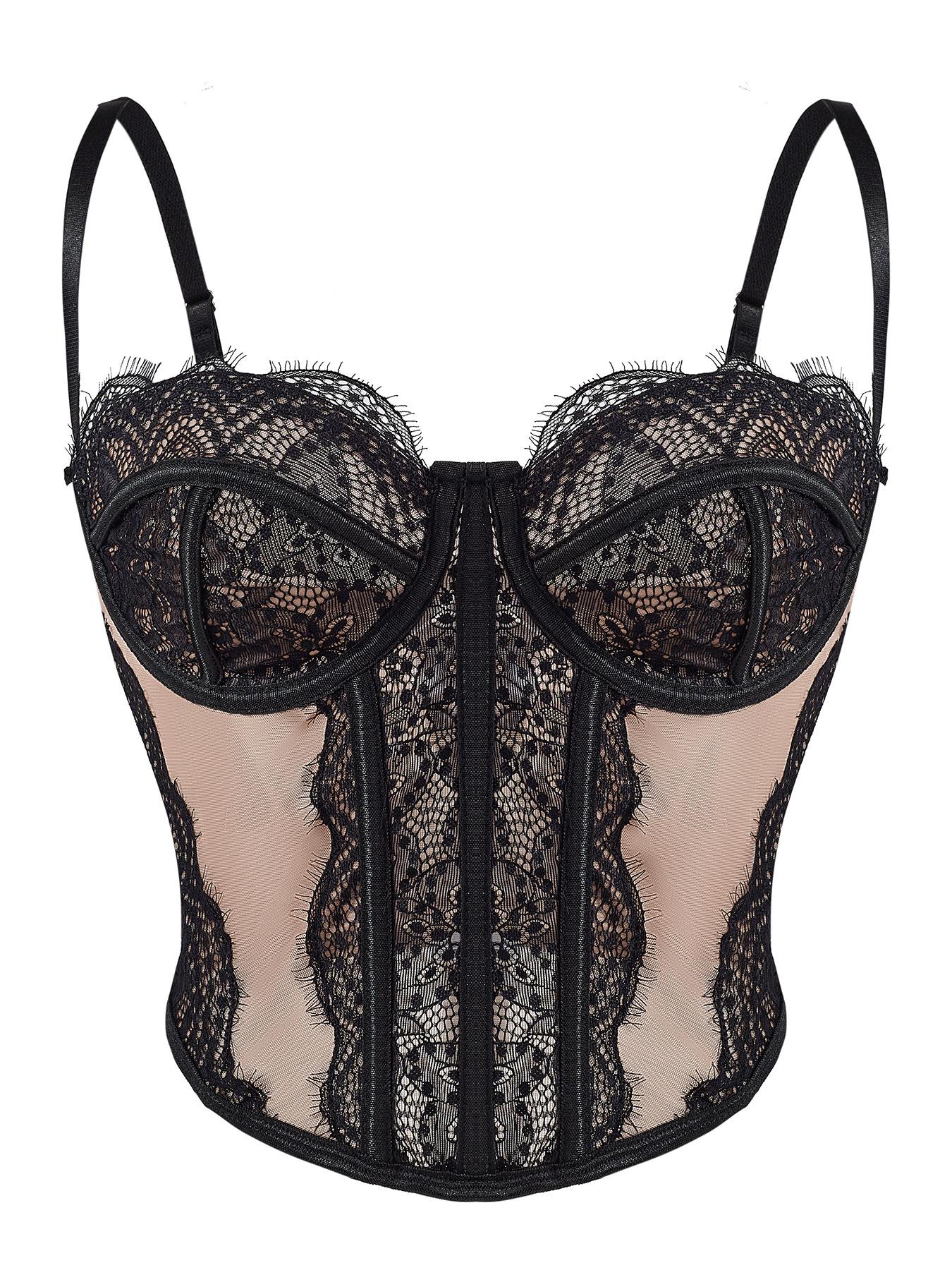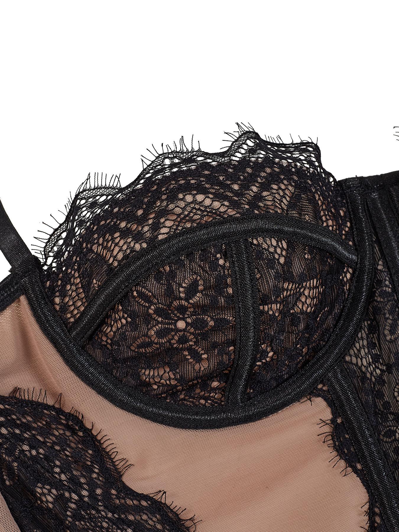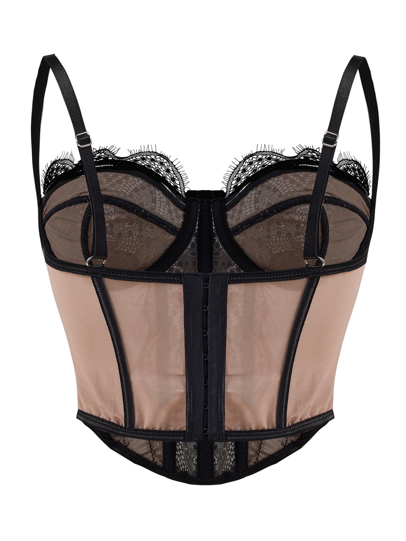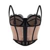 Estilo Europeo y Americano Encaje de Color Contrastante Encaje Moldeador de Huesos Sexy Top de Tubo Recortado Espalda Descubierta Transparente Top de Tirantes para Mujer