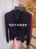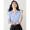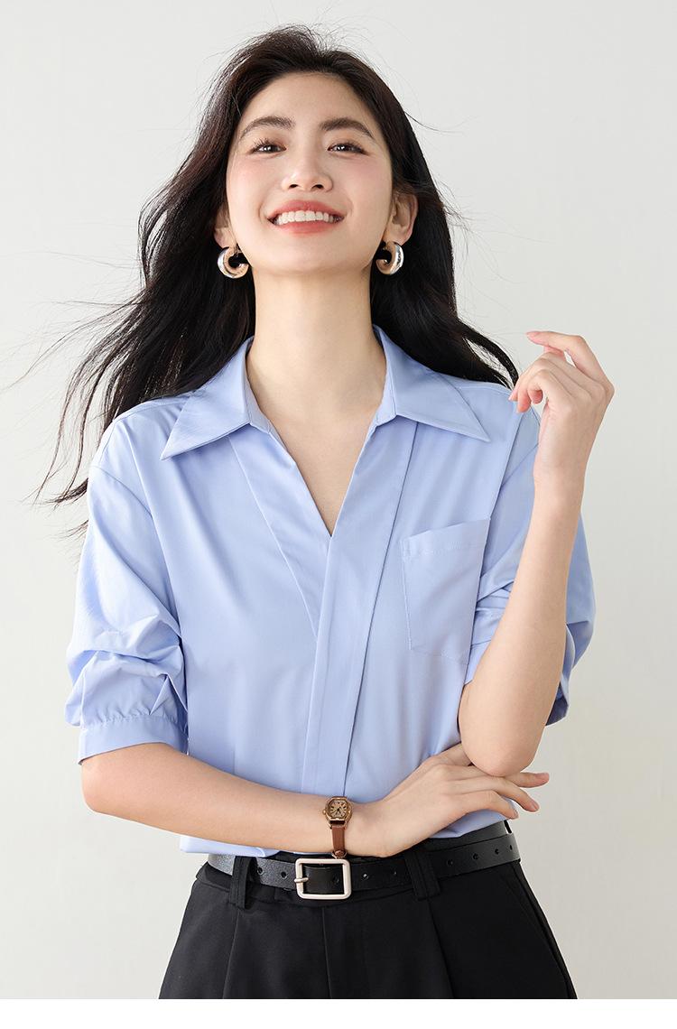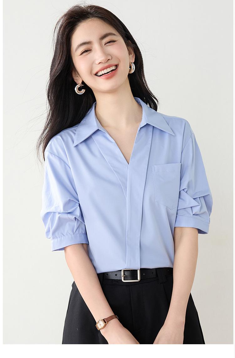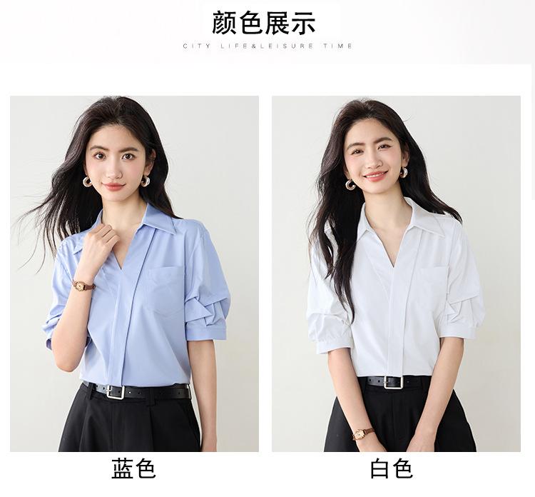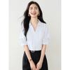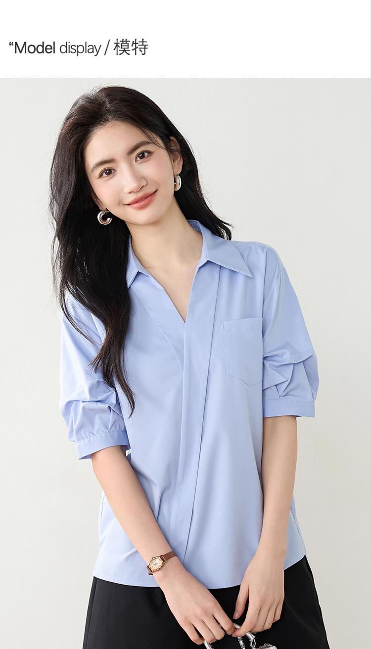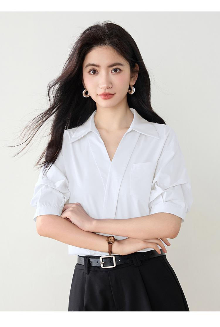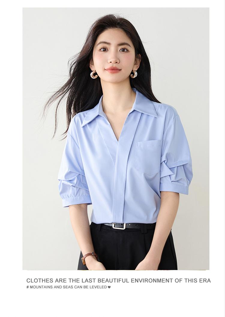 Camisa de cuello en V para mujer, manga corta, verano 2025, nuevo diseño de nicho francés, elegante jersey antiedad con mangas abullonadas