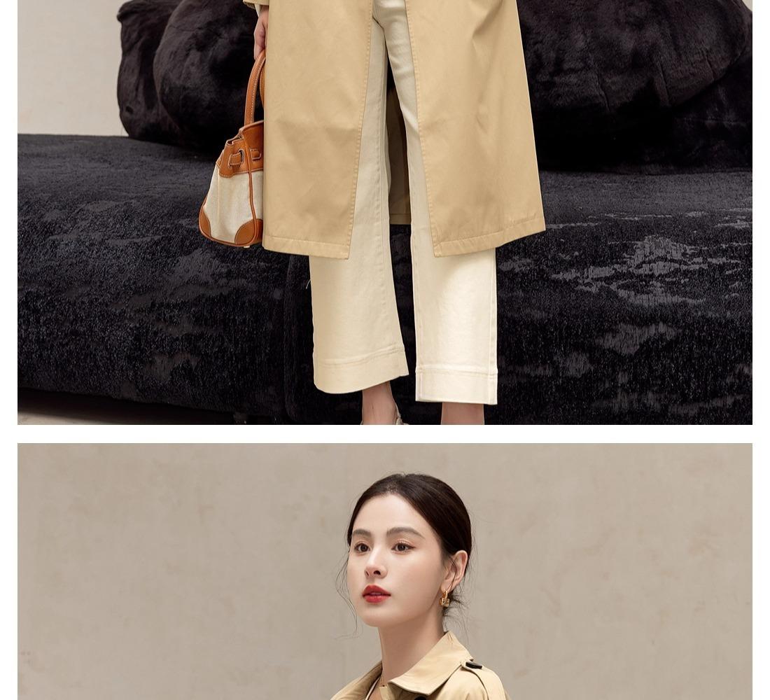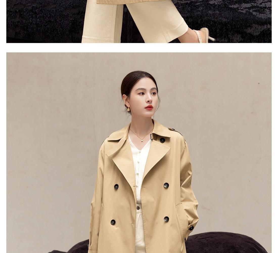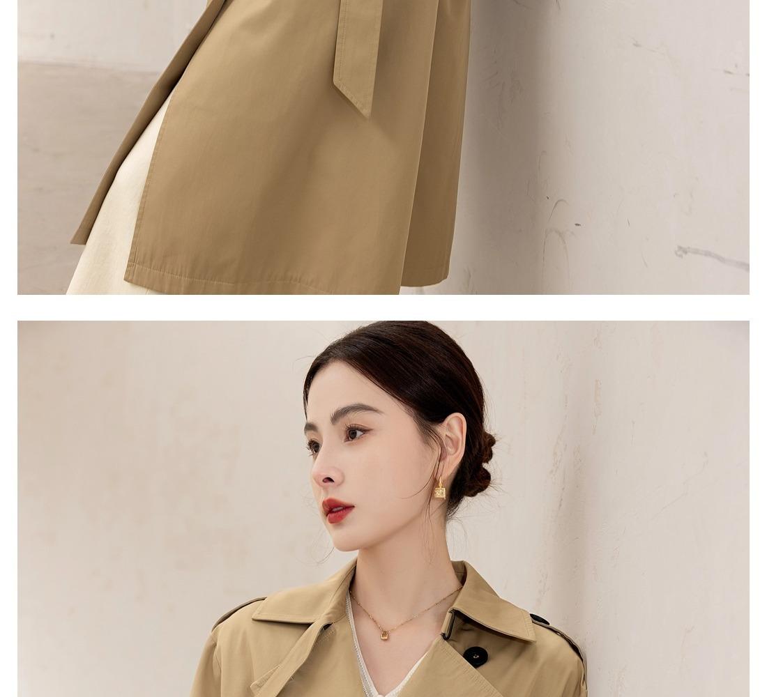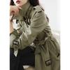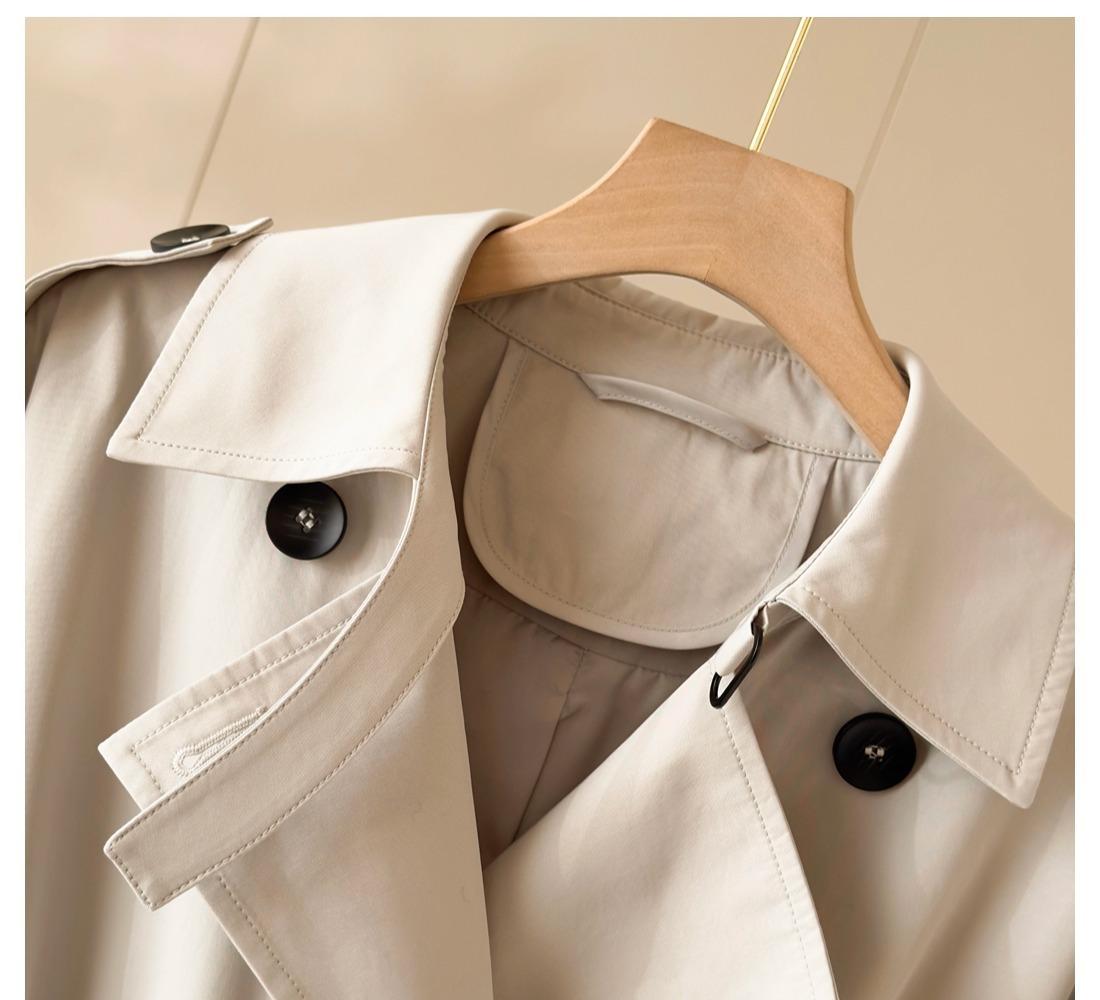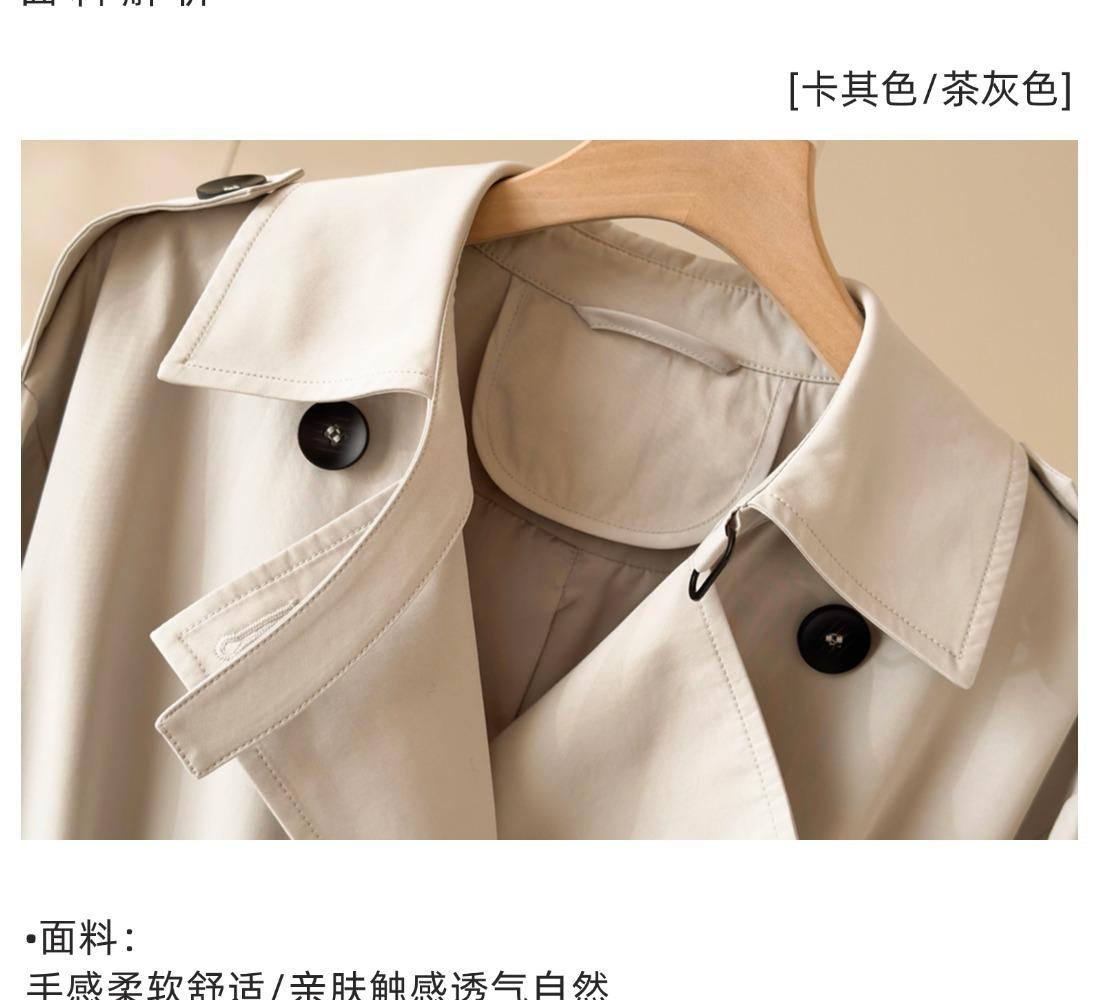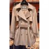 Gabardina Petite de Largo Medio Estilo Británico para Mujer 2025 Nuevo Otoño Versátil Chaqueta Caqui de Alta Gama