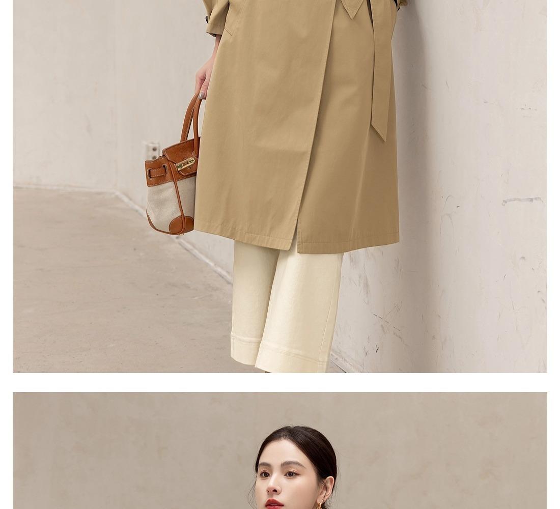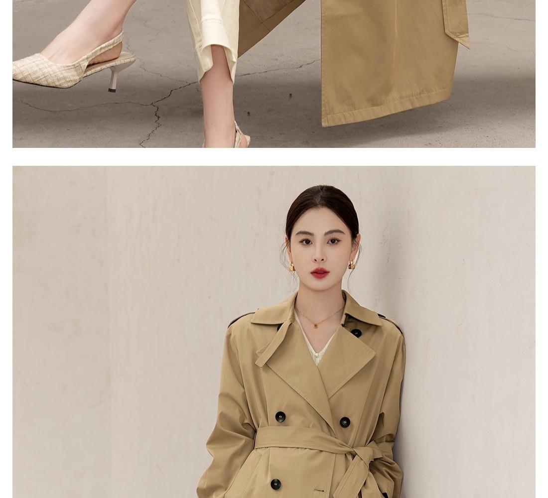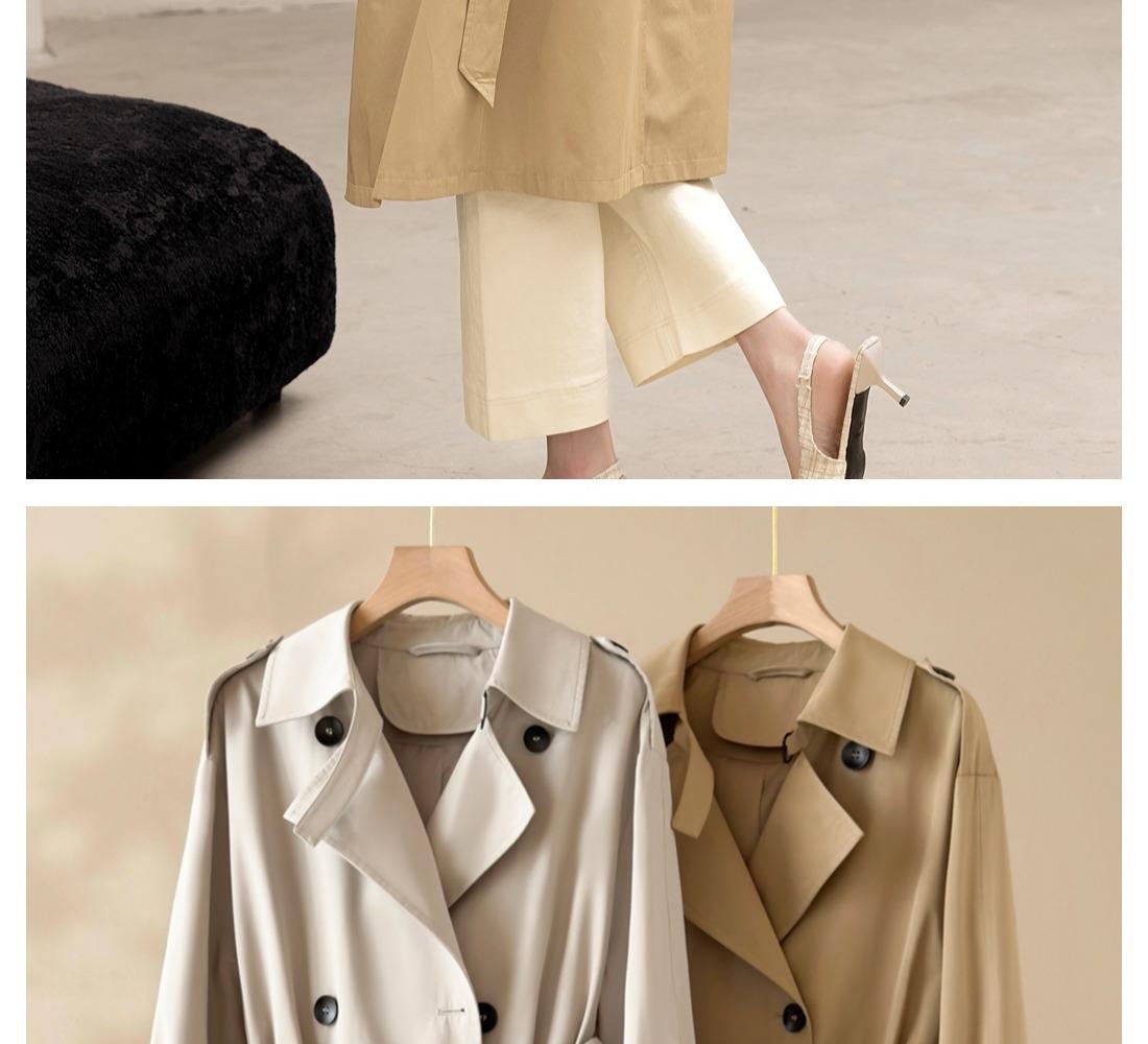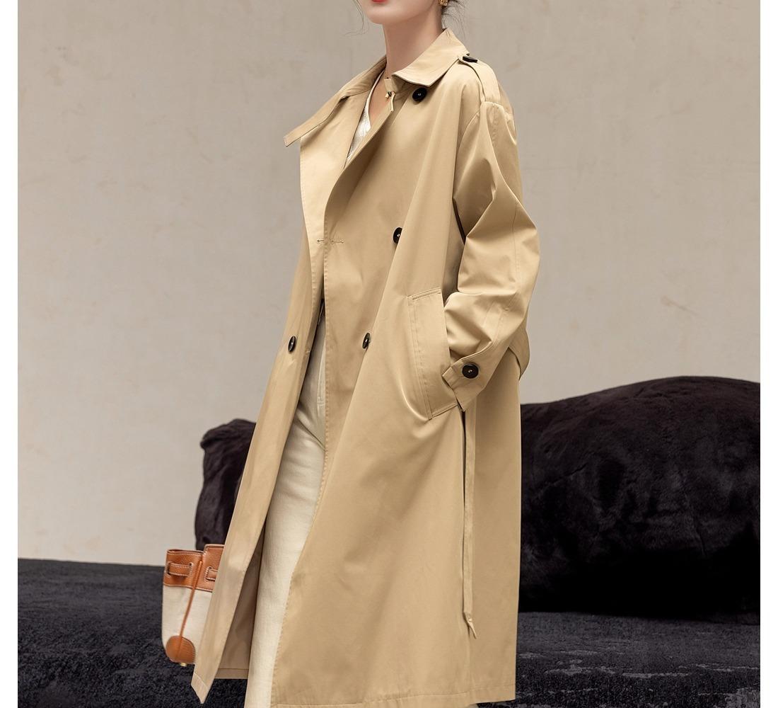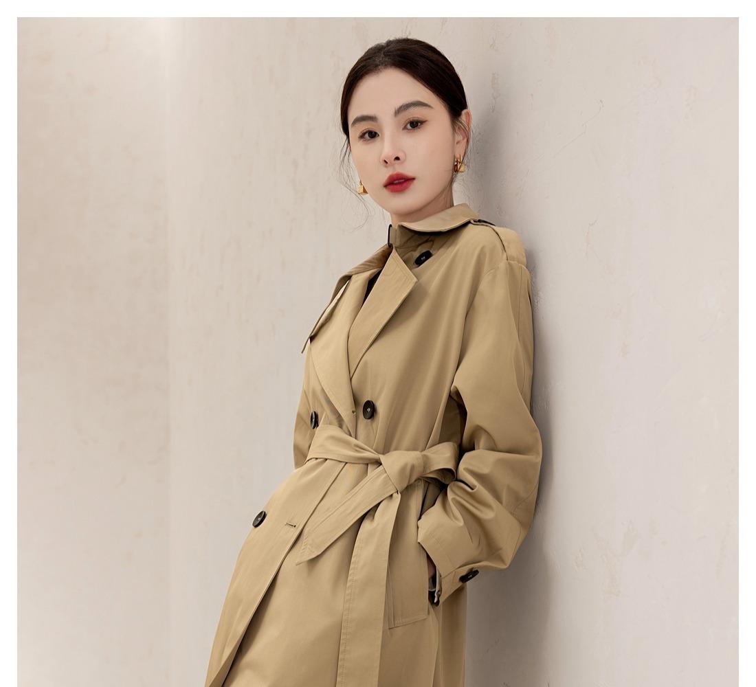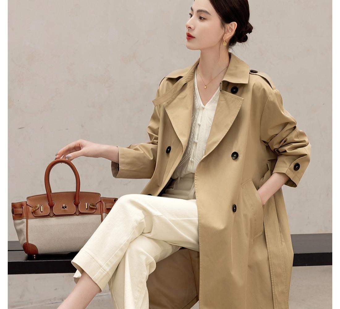 Gabardina Petite de Largo Medio Estilo Británico para Mujer 2025 Nuevo Otoño Versátil Chaqueta Caqui de Alta Gama