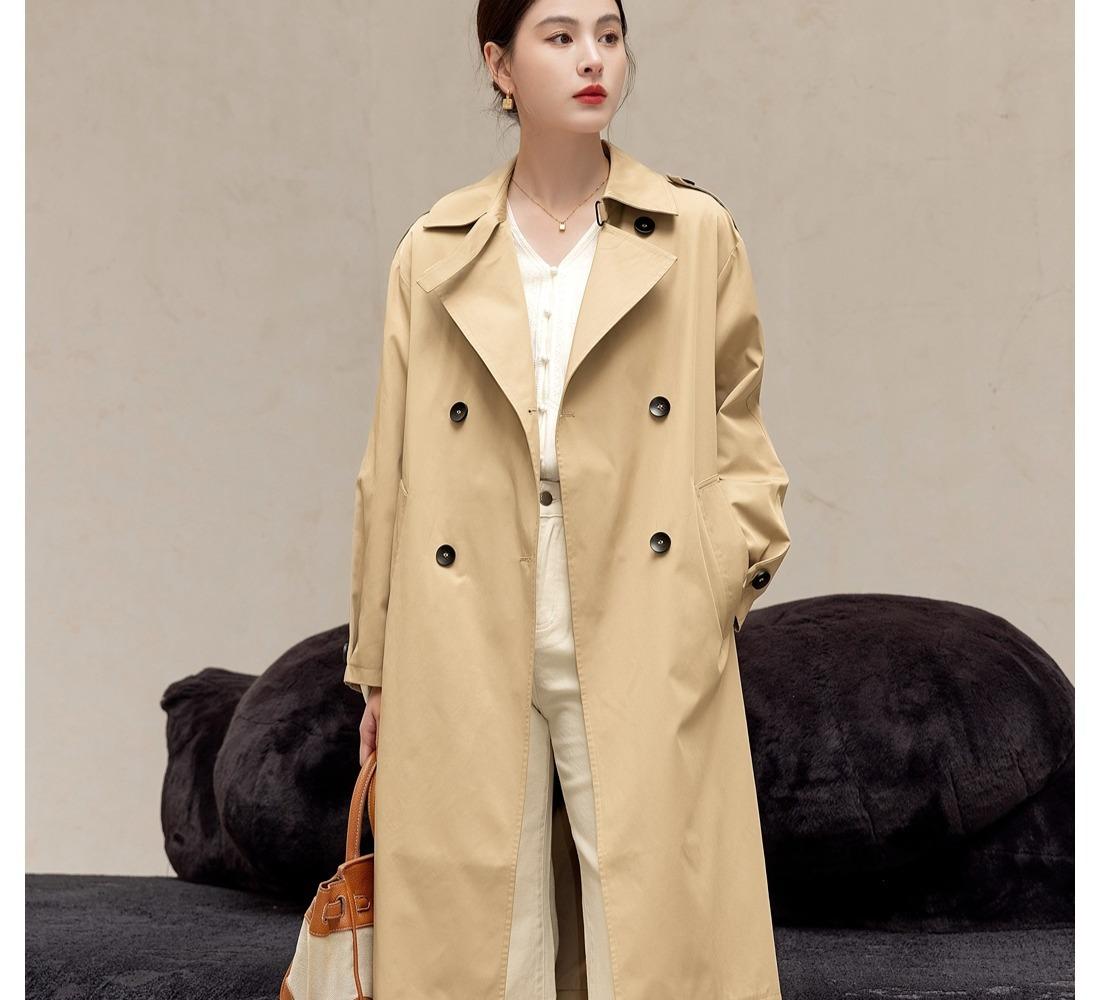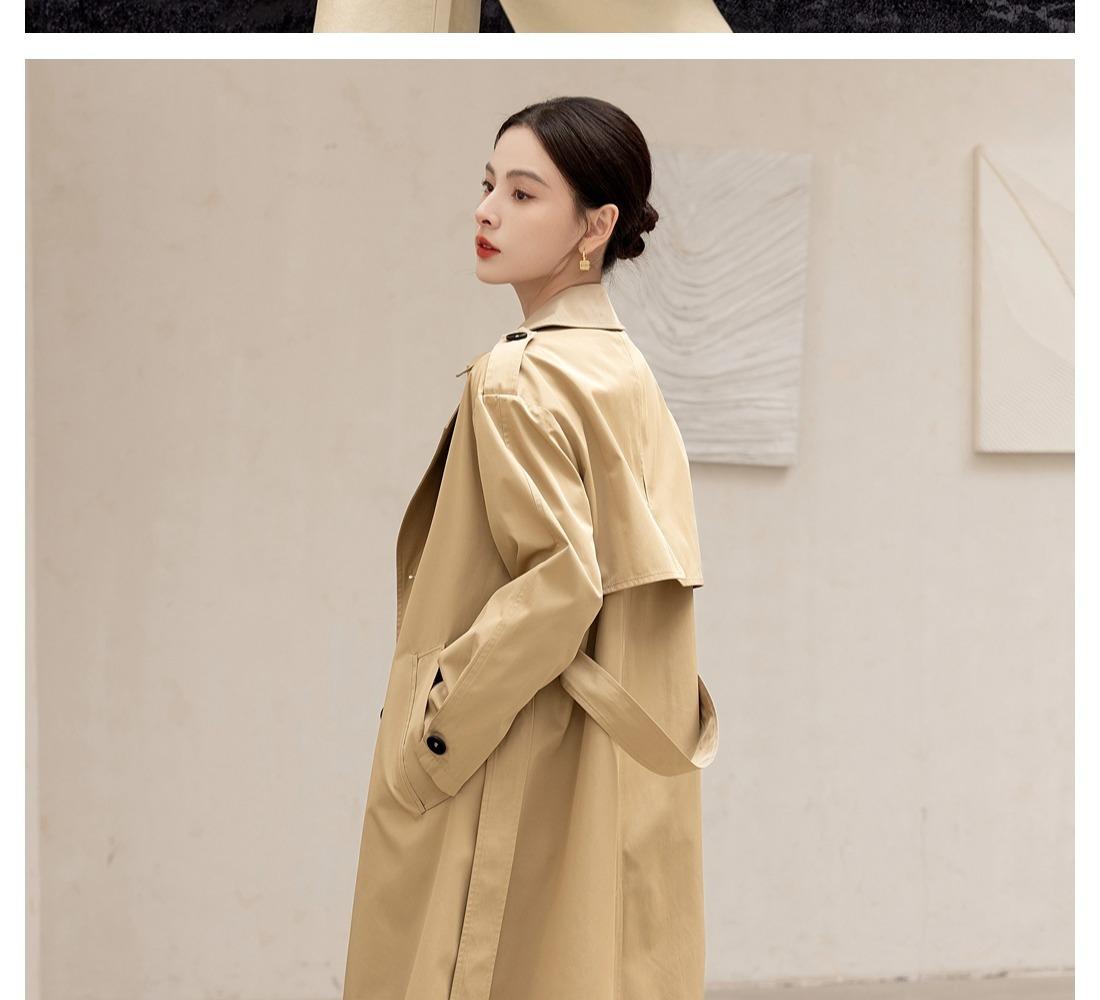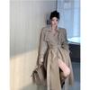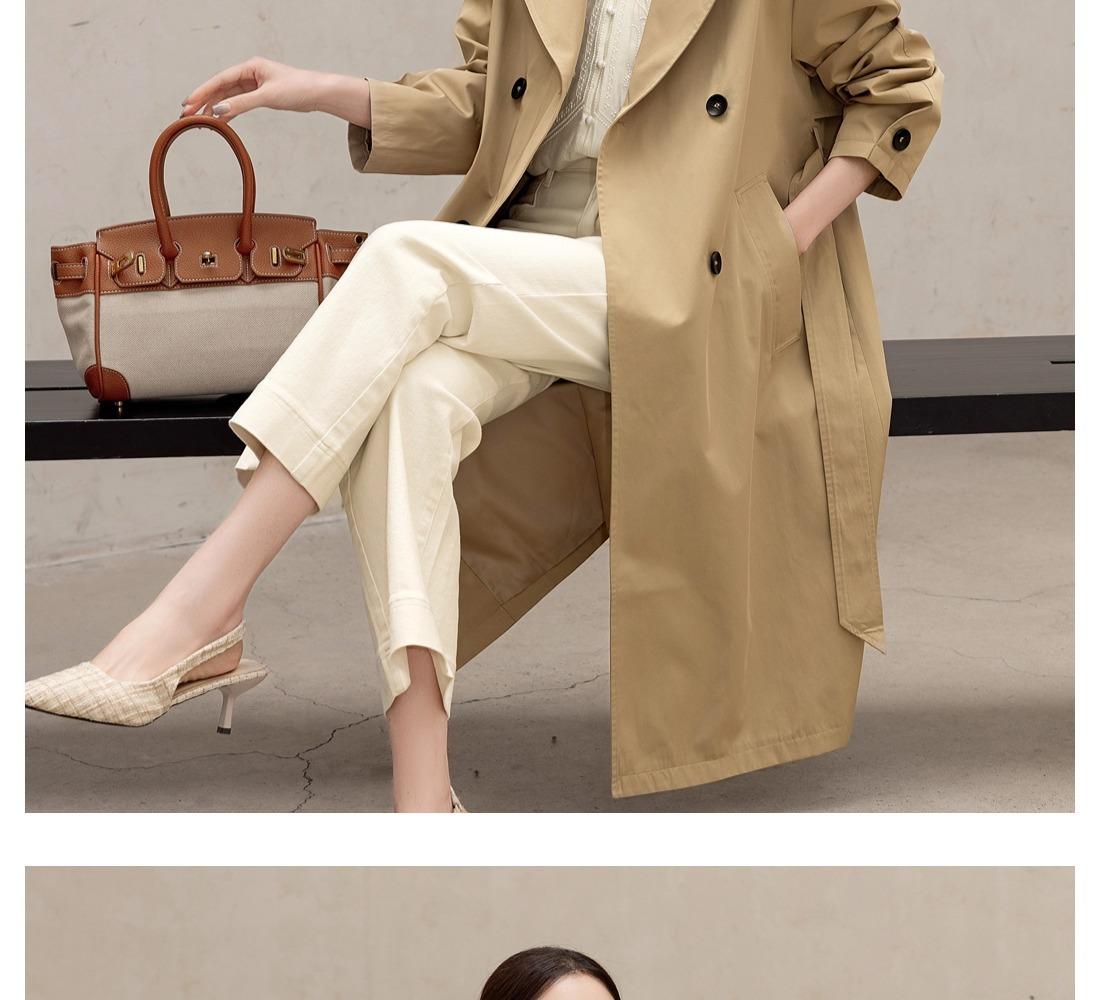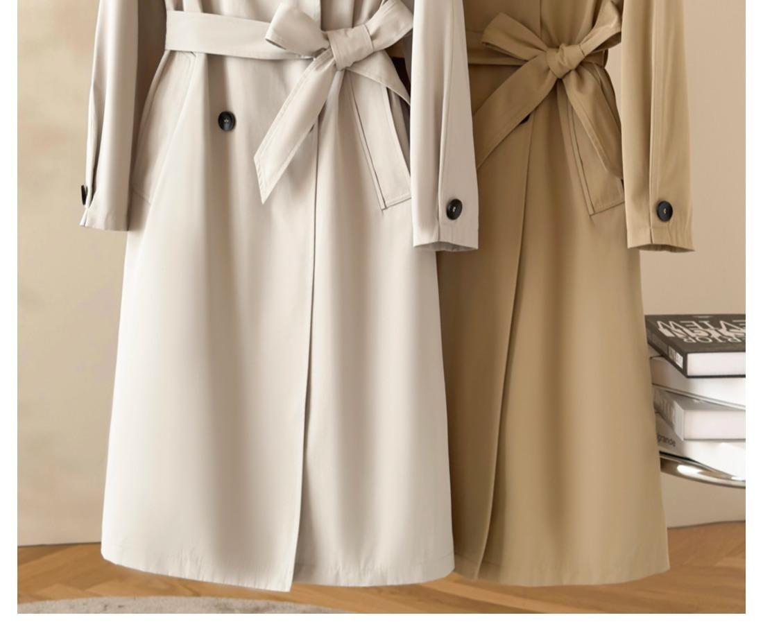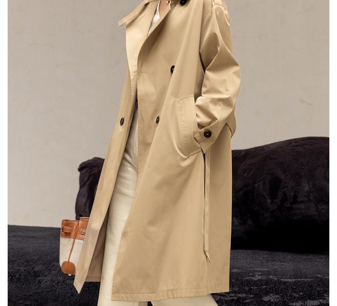 Gabardina Petite de Largo Medio Estilo Británico para Mujer 2025 Nuevo Otoño Versátil Chaqueta Caqui de Alta Gama