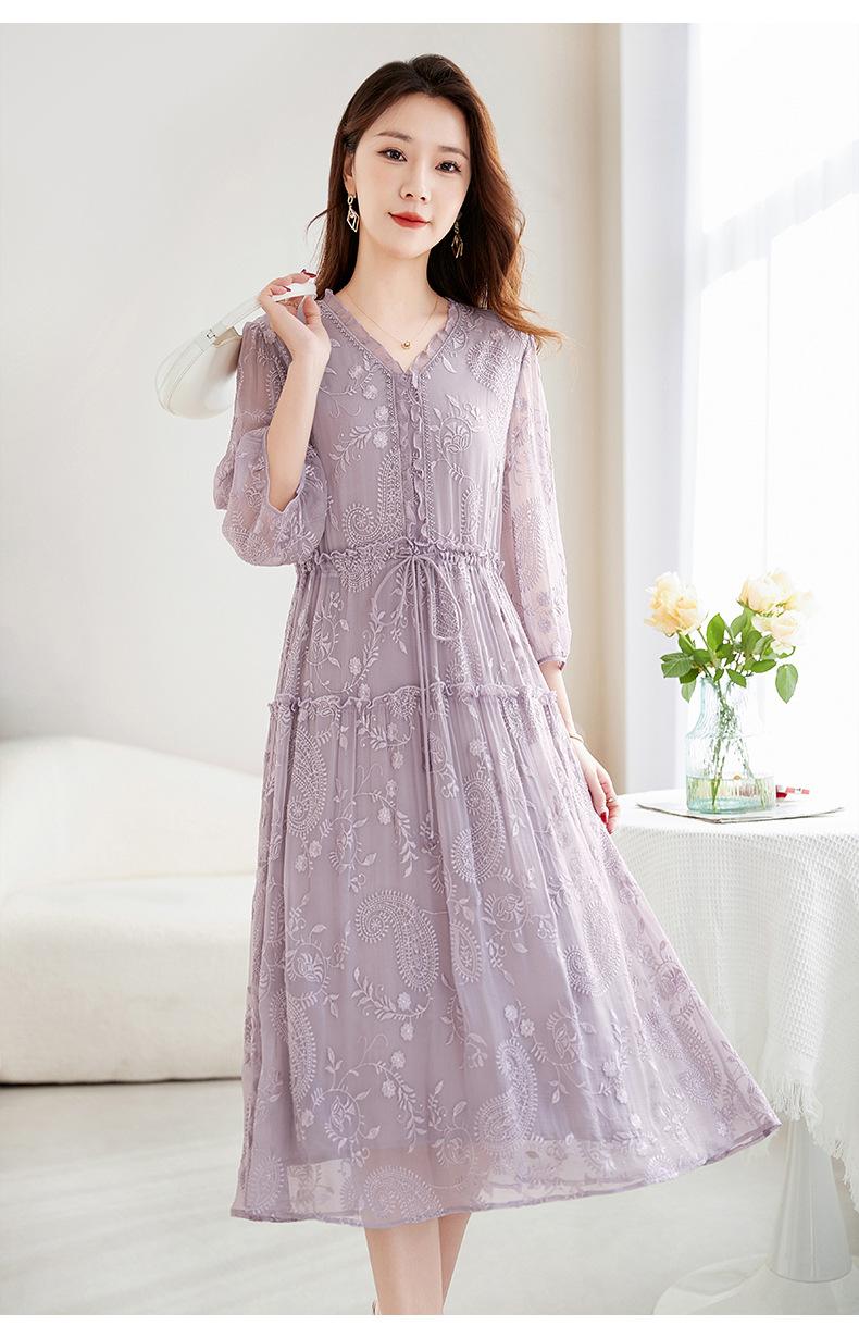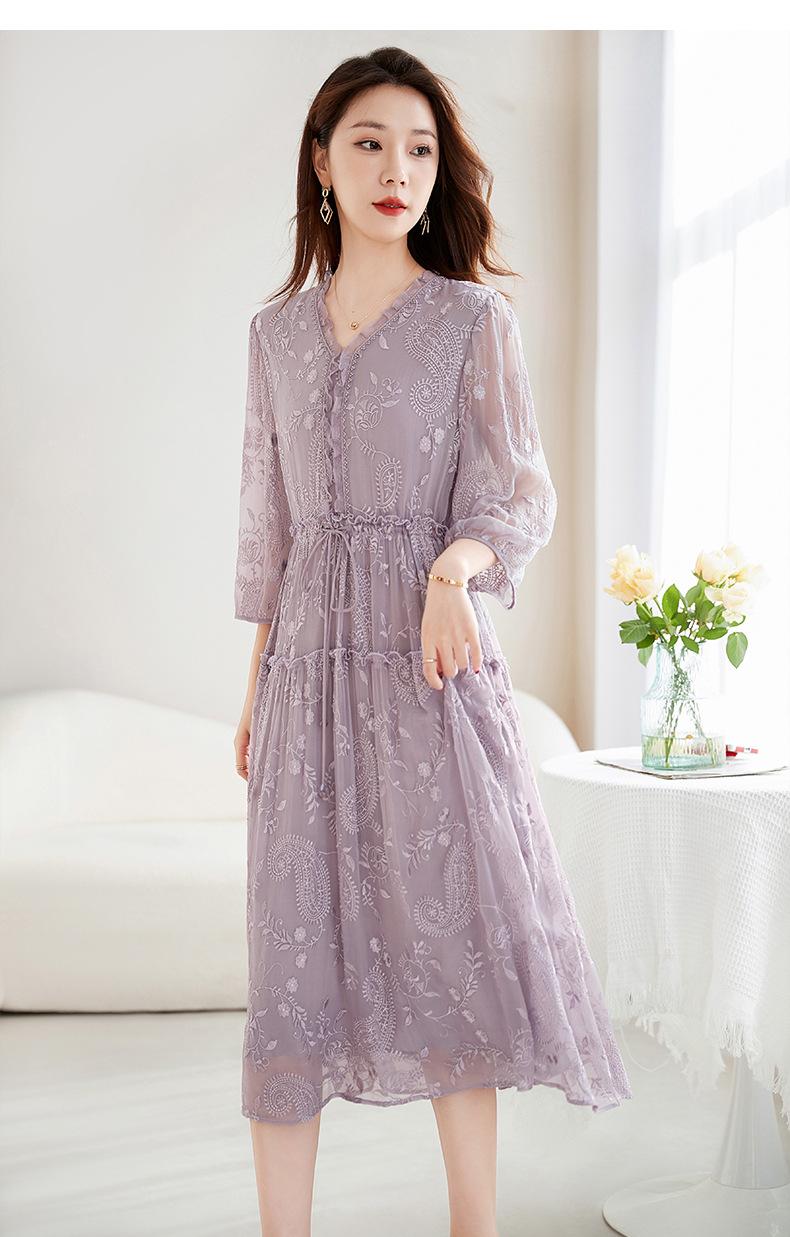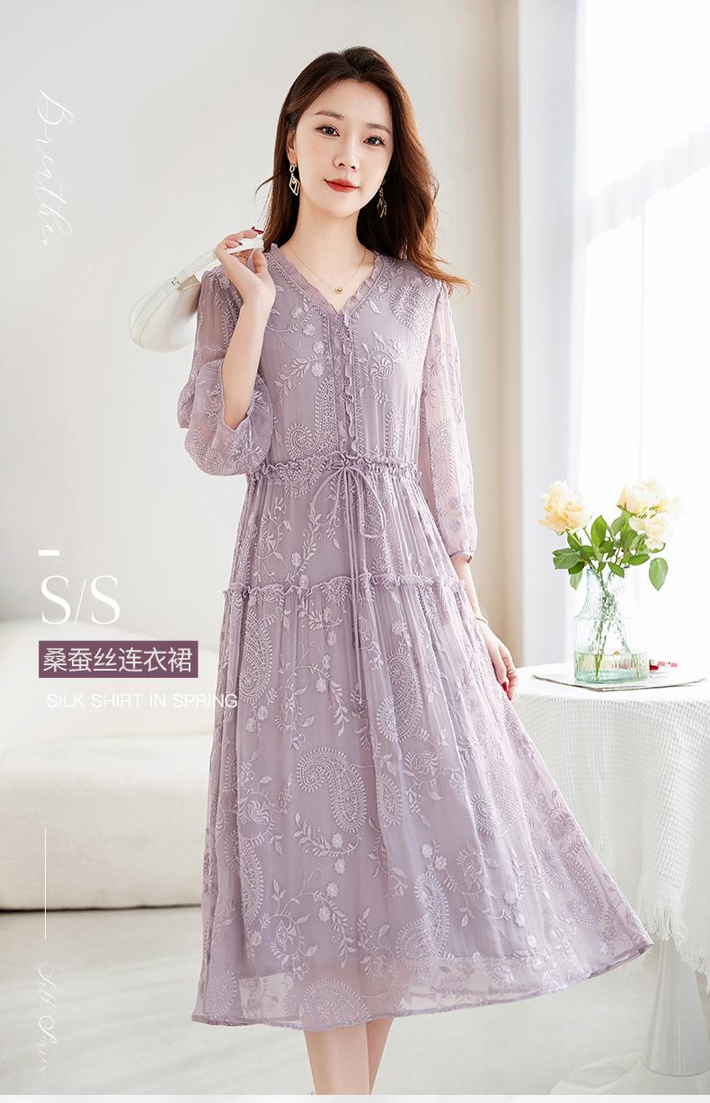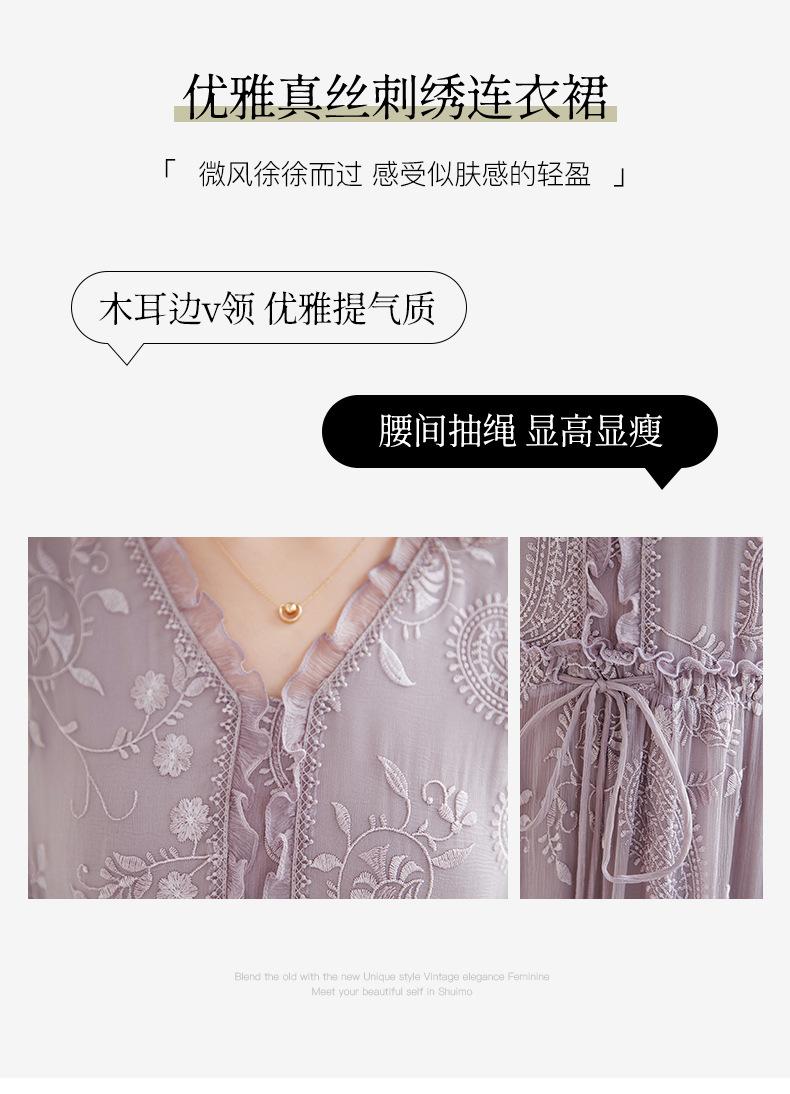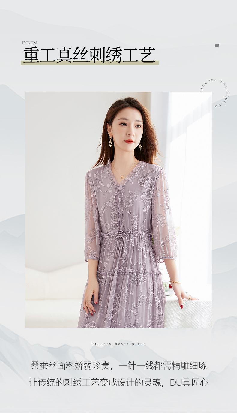 Bordado de Yunhe Oda a la Seda de Hangzhou Vestido de Seda Seda de Morera Verano 2025 Bordado Talla Grande Vestido Midi 8866