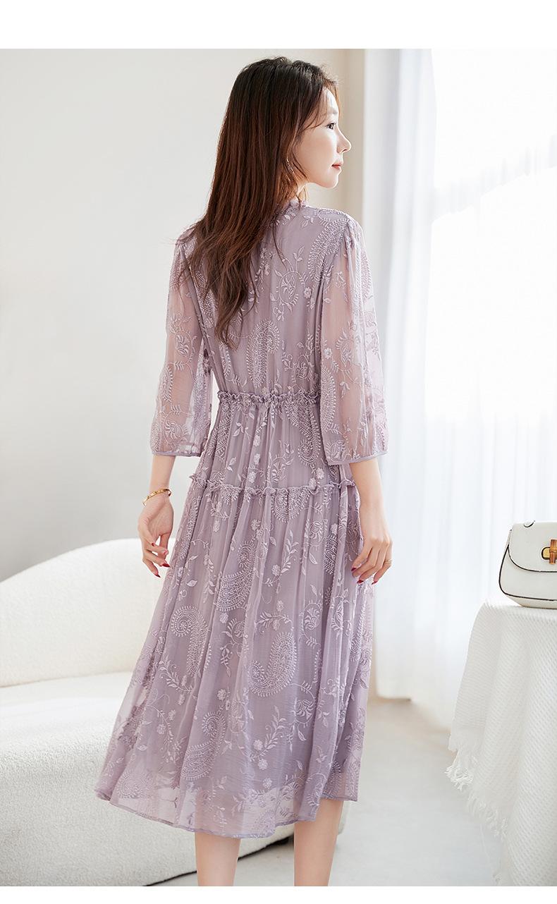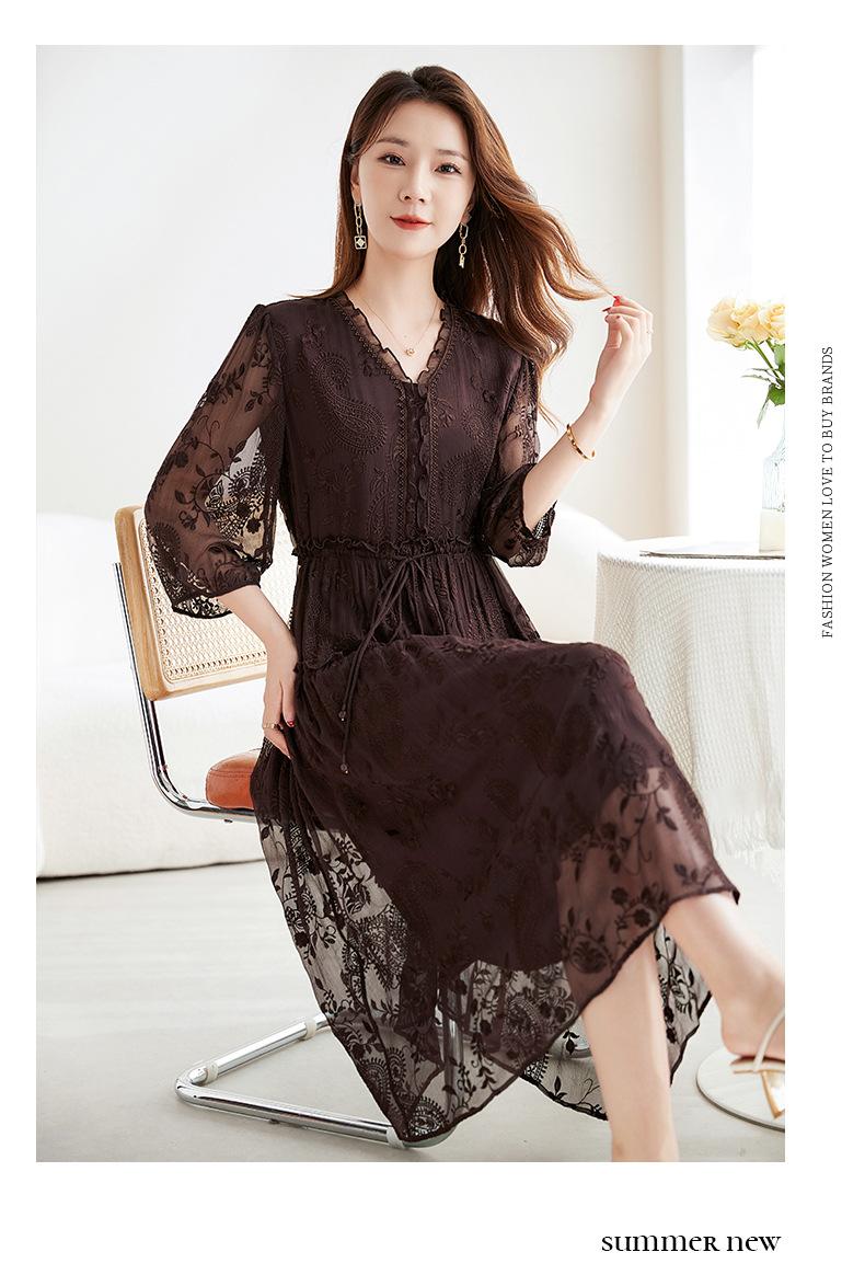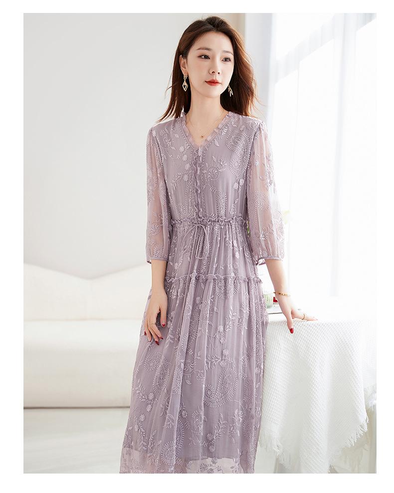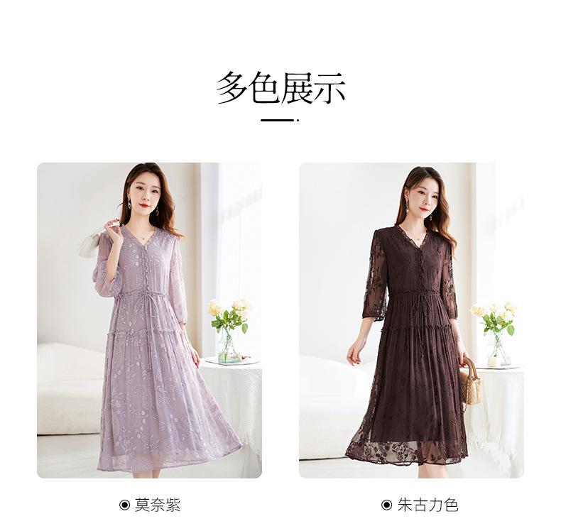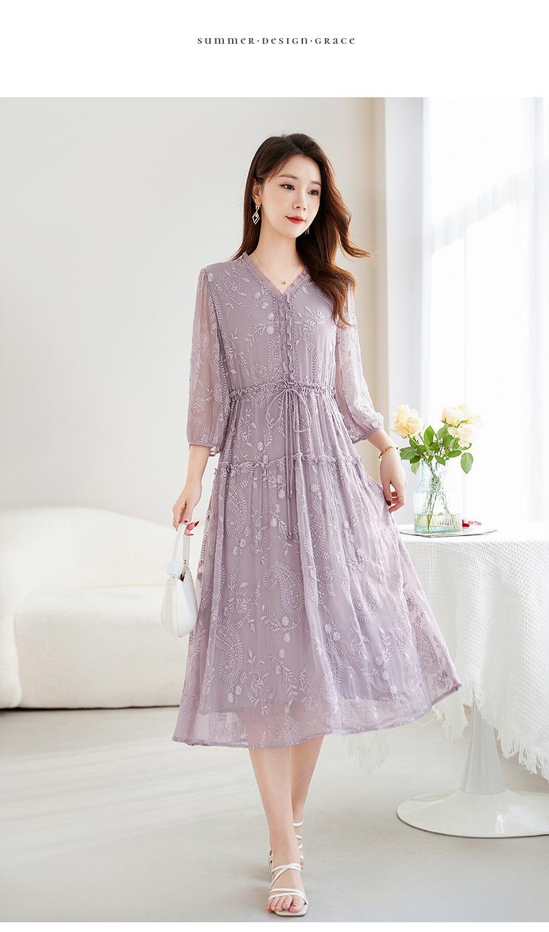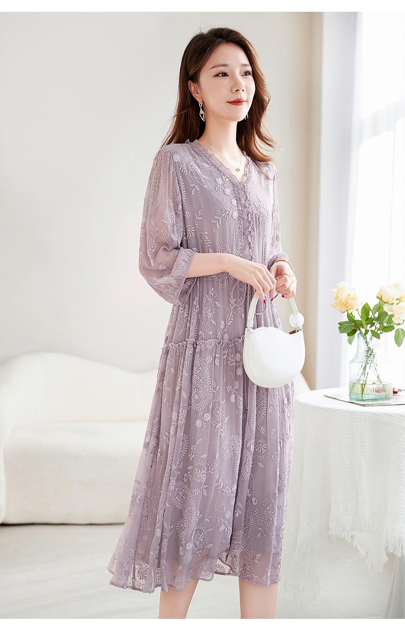 Bordado de Yunhe Oda a la Seda de Hangzhou Vestido de Seda Seda de Morera Verano 2025 Bordado Talla Grande Vestido Midi 8866