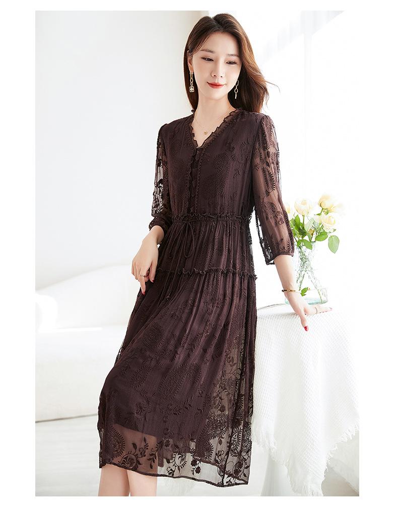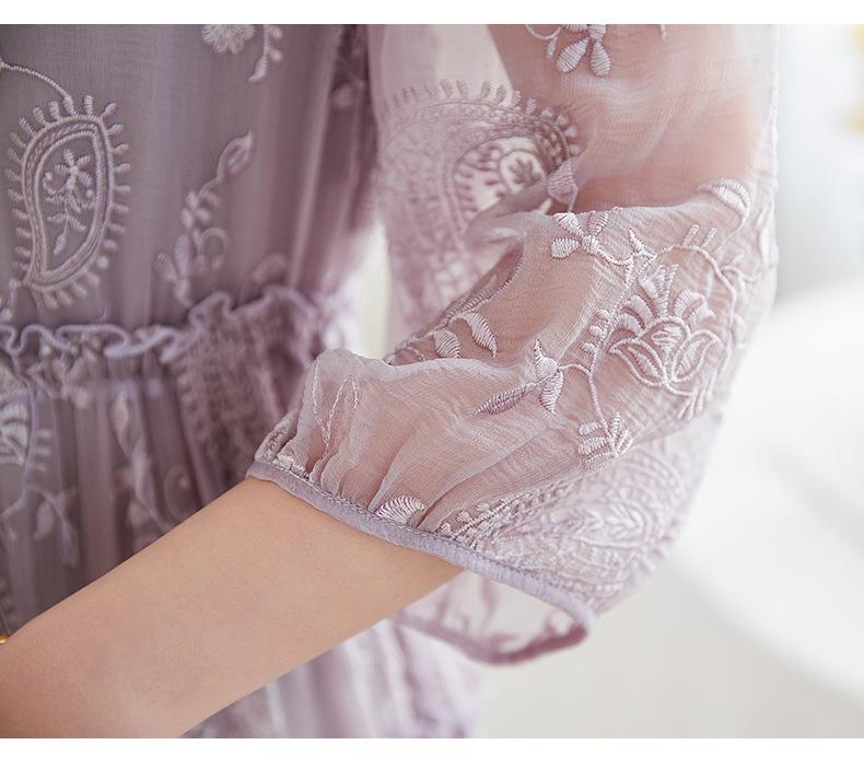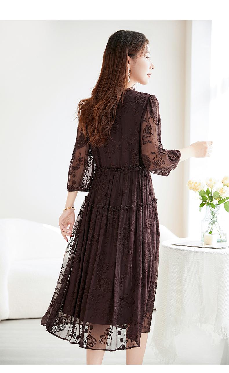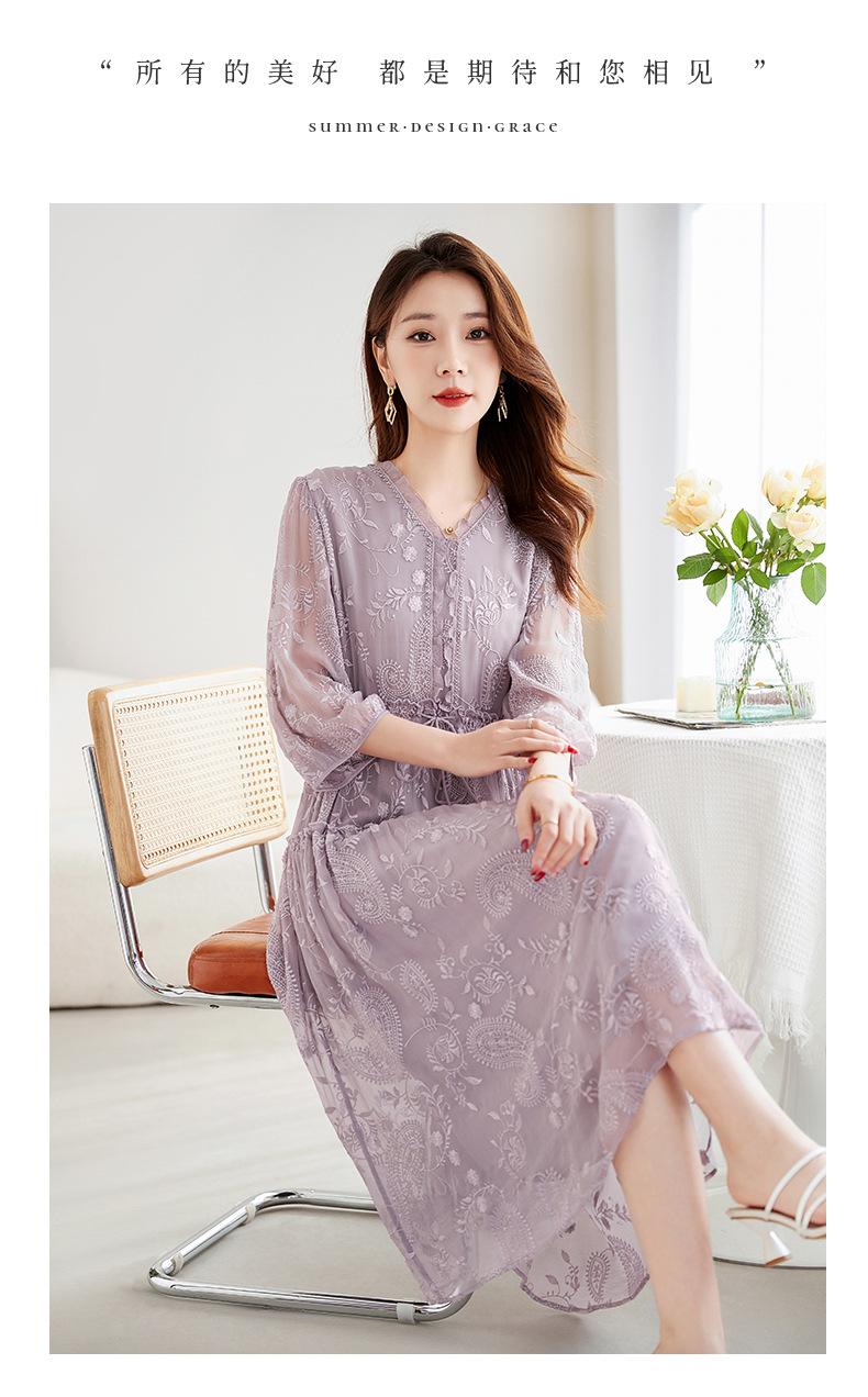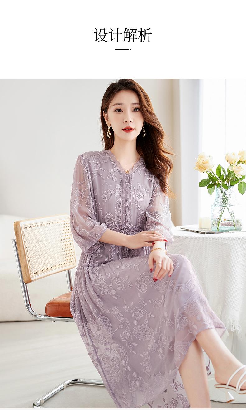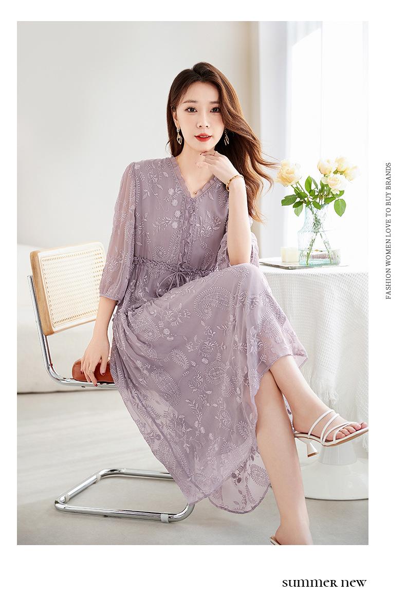 Bordado de Yunhe Oda a la Seda de Hangzhou Vestido de Seda Seda de Morera Verano 2025 Bordado Talla Grande Vestido Midi 8866