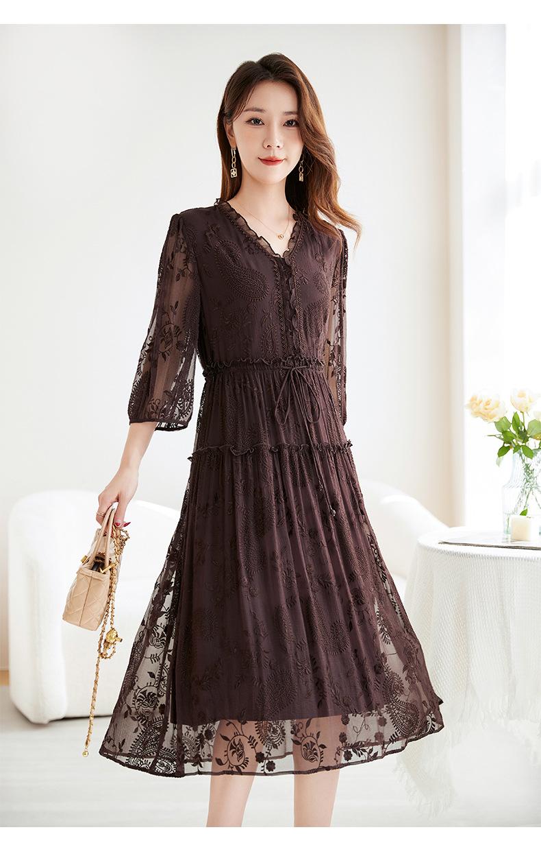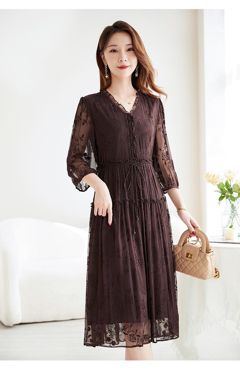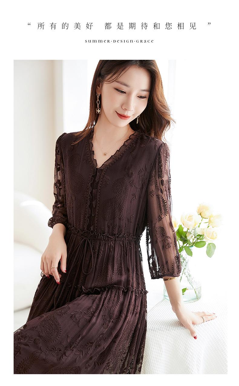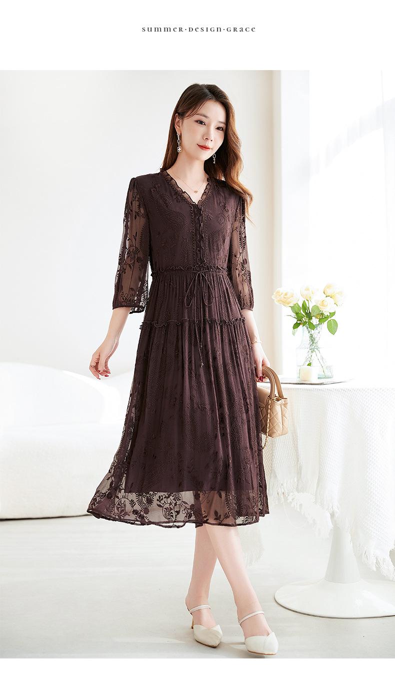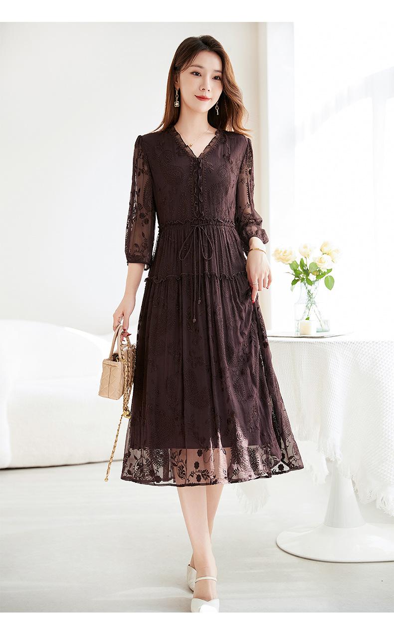 Bordado de Yunhe Oda a la Seda de Hangzhou Vestido de Seda Seda de Morera Verano 2025 Bordado Talla Grande Vestido Midi 8866