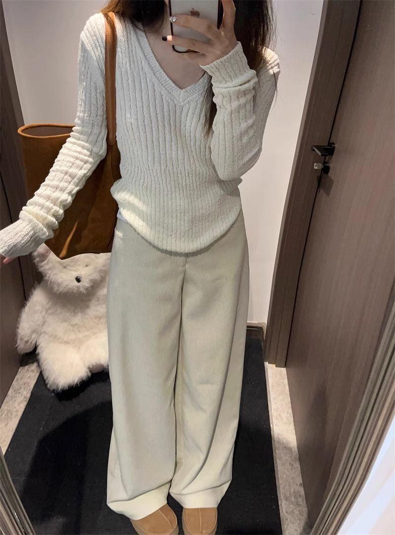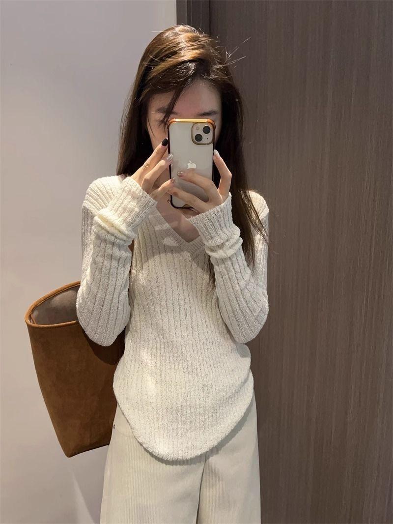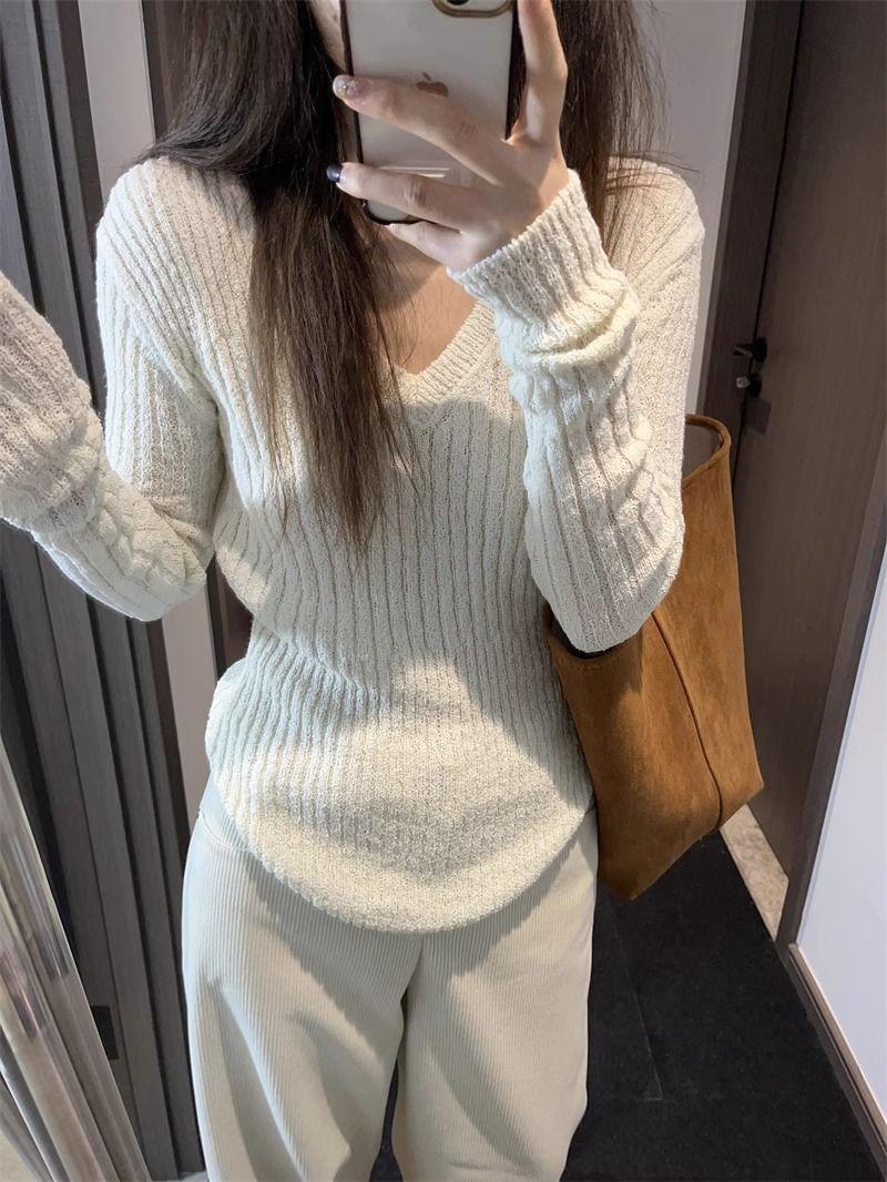 Suéter de punto con cuello en V para mujer, diseño de chica sexy blanca, otoño e invierno, nuevo, ajustado, base, camisa, top