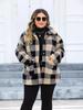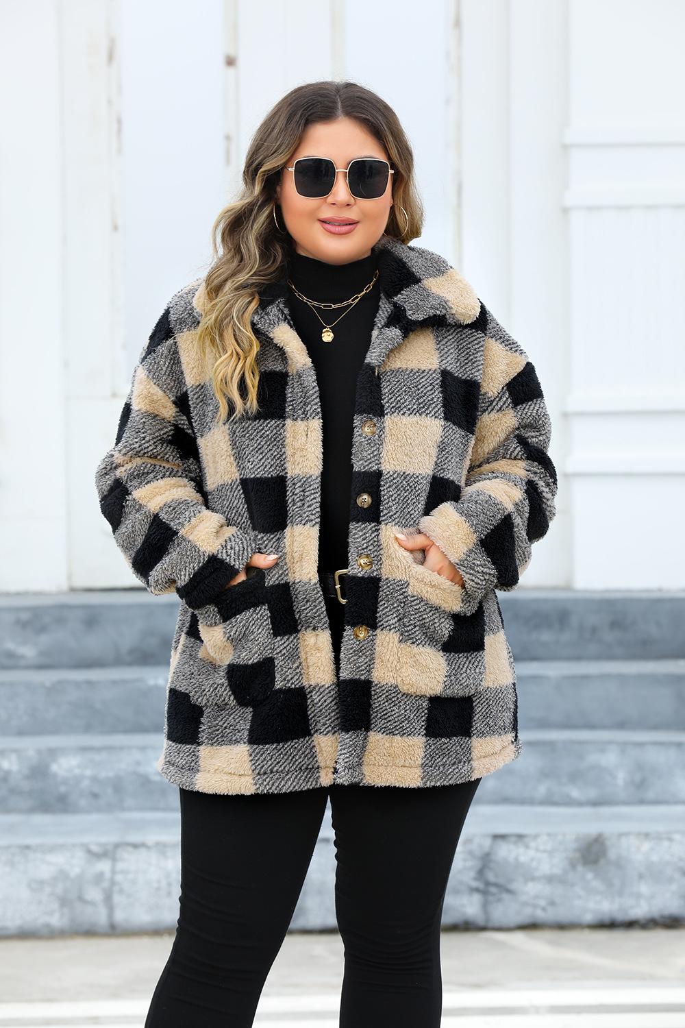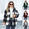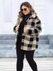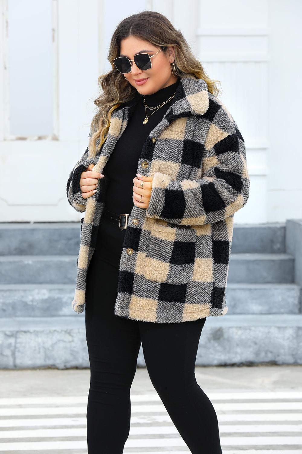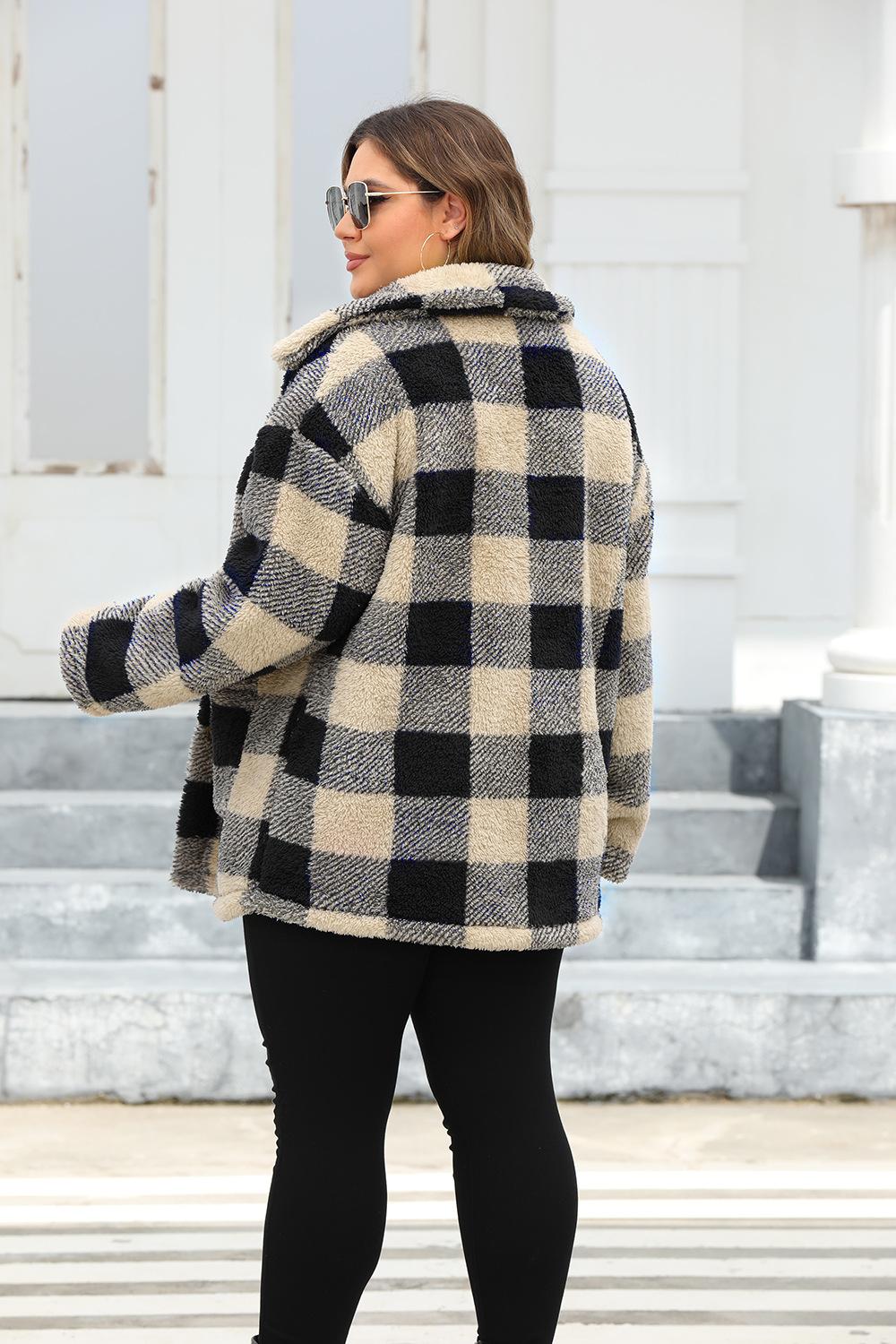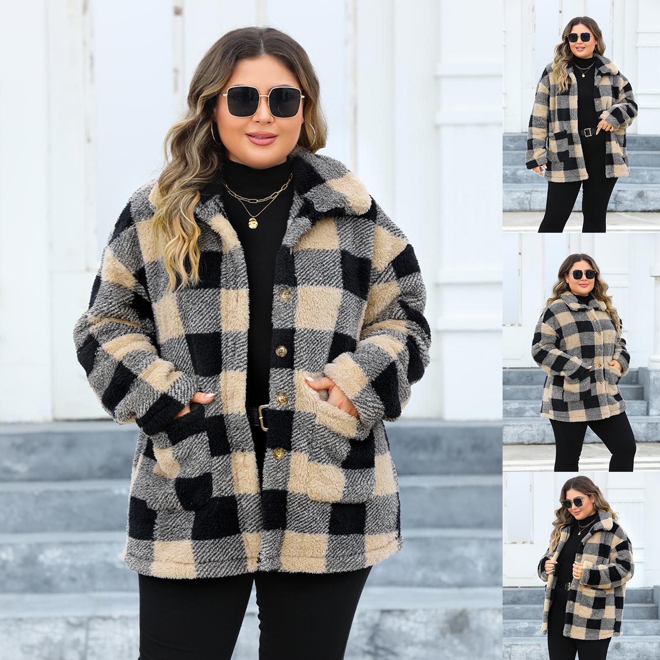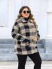 Chaqueta Europea y Americana de Talla Grande para Mujer con Solapa de Felpa Gruesa a Cuadros