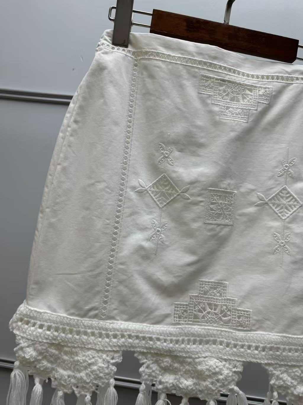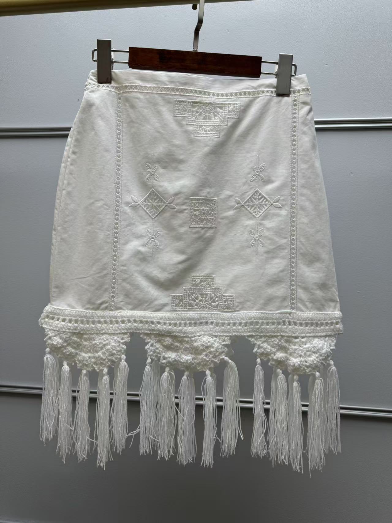 Talla 36: Cintura 70 Cadera 92 Largo de la falda 45 (sin flecos)