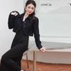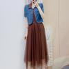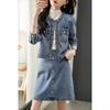 Conjunto de Vestido de Principios de Otoño Moda de Otoño para Mujer Chaqueta Corta de Mezclilla con Chaleco Falda con Abertura Conjunto de Dos Piezas