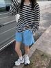 Camiseta de manga larga a rayas finas para mujer, novedad de verano 2025, estilo coreano, cuello redondo, manga raglán, suelta, con protección solar y aire acondicionado.