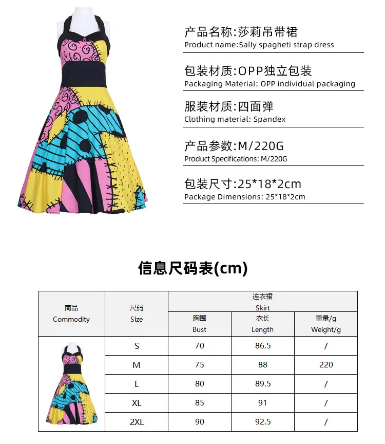 Noche en la Ciudad Extraña Sally Fantasmita Disfraz de Halloween Fiesta de Disfraces Divertido Disfraz Cosplay Pesadilla Antes de Navidad