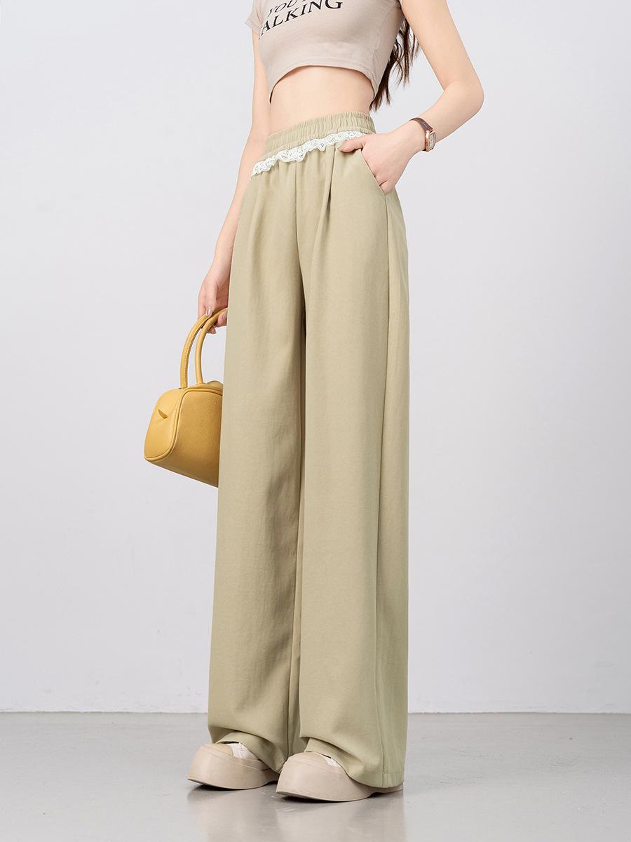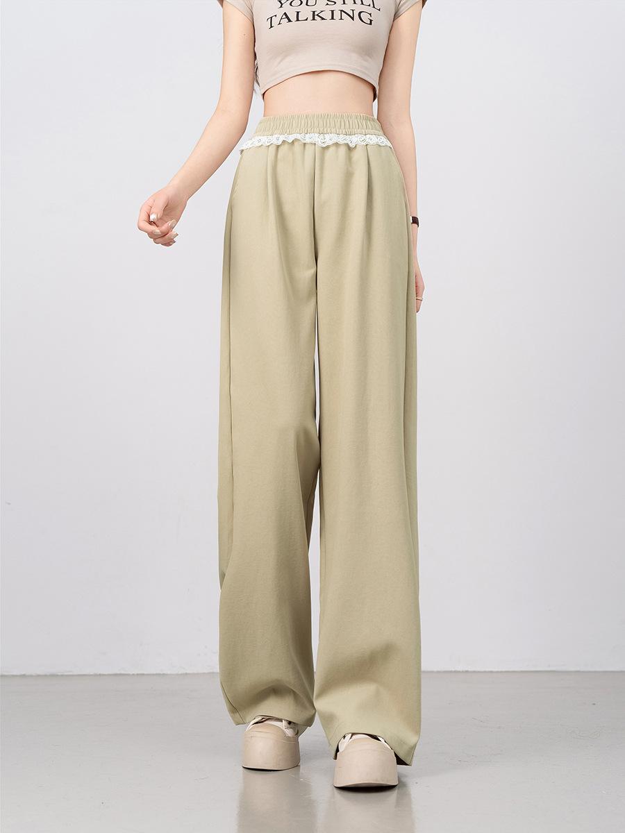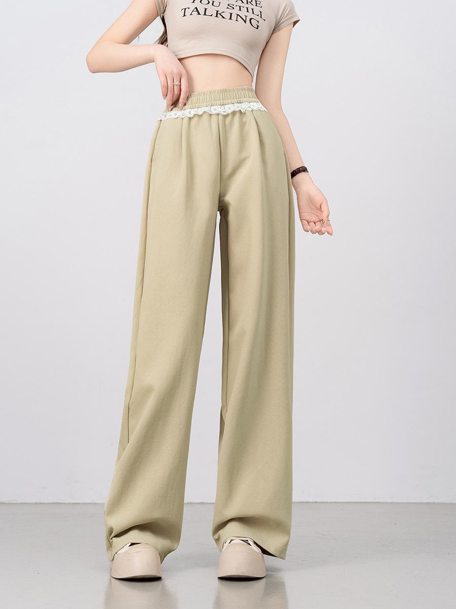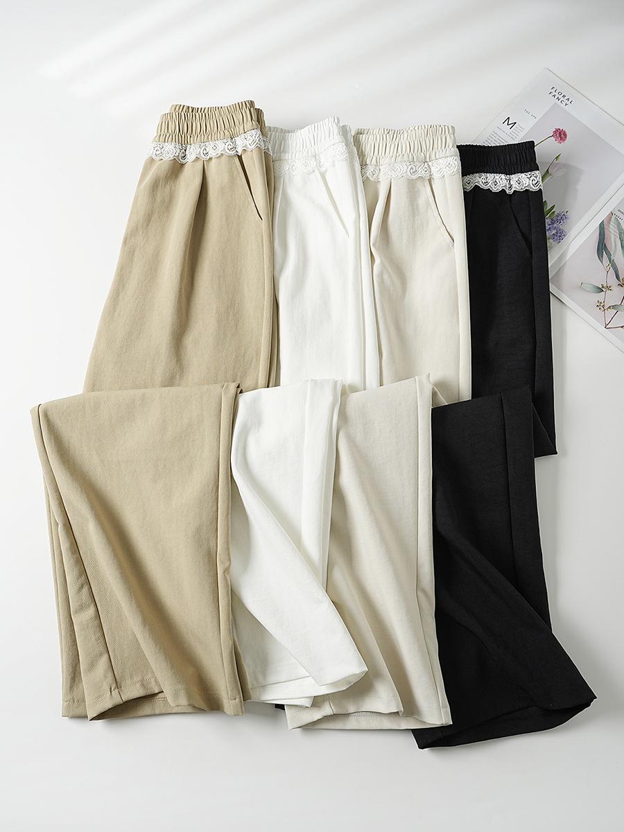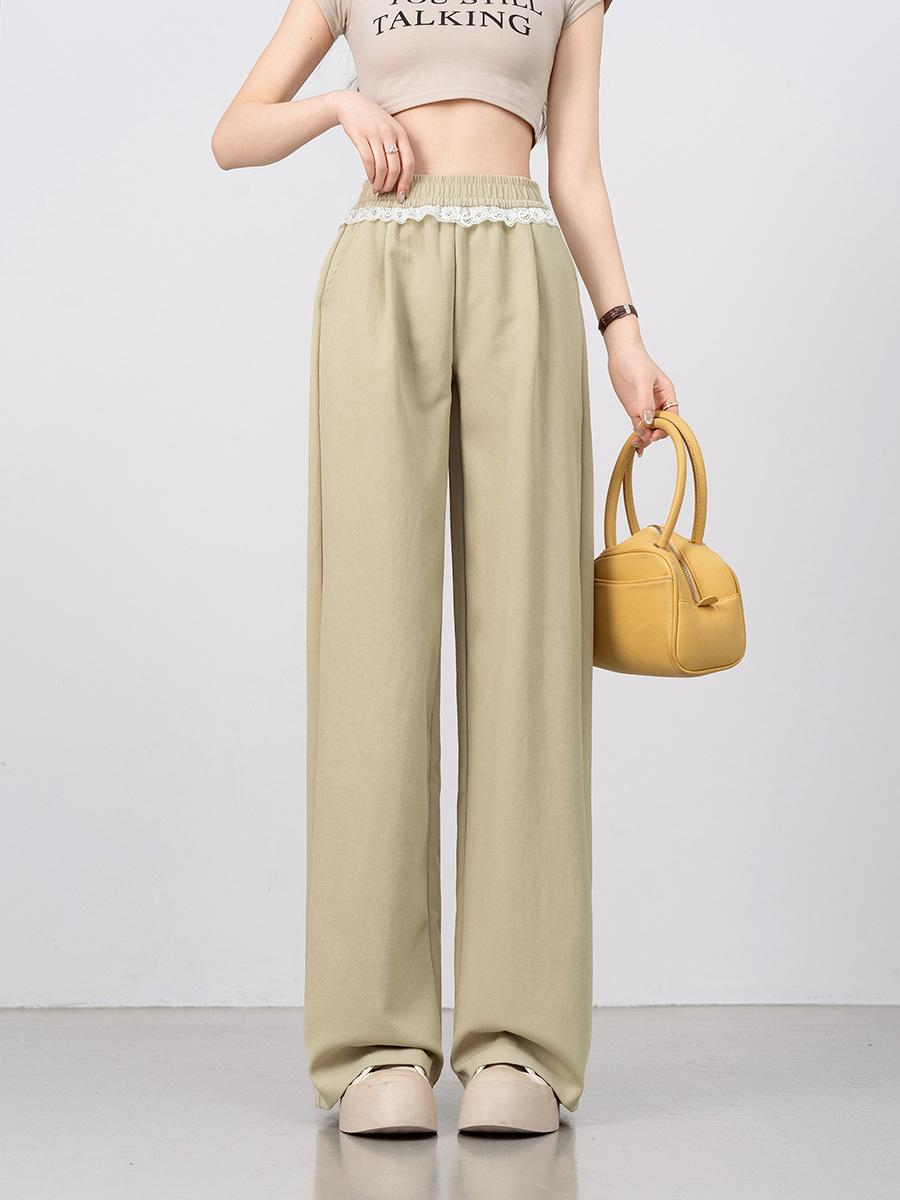 Pantalones anchos de pierna con encaje estilo coreano, nuevos, adelgazantes, rectos, de cintura alta, sueltos, informales, largos, de primavera