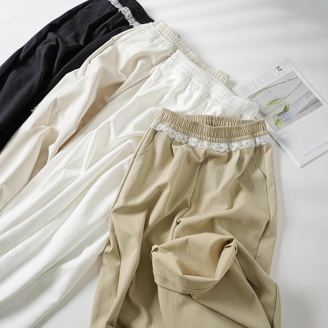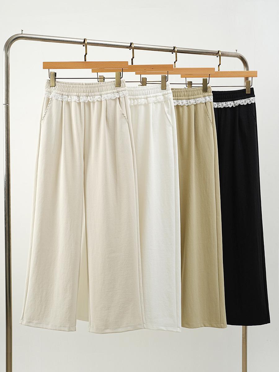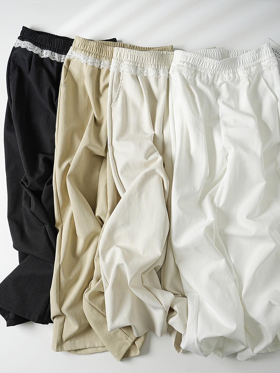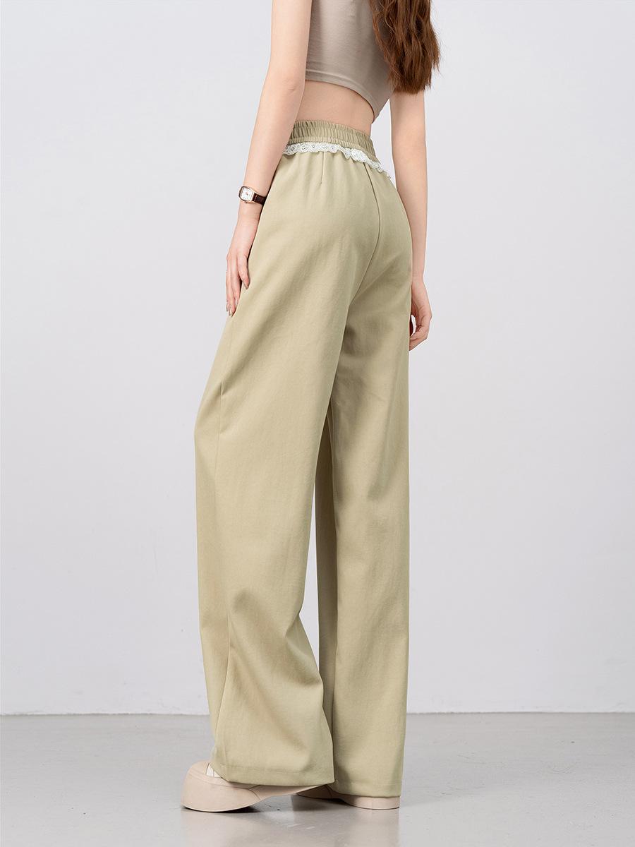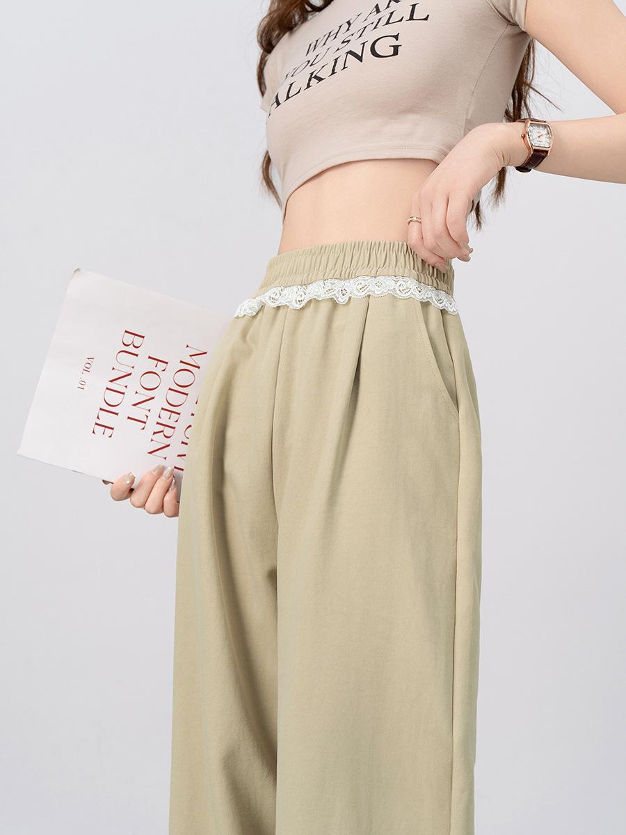 Pantalones anchos de pierna con encaje estilo coreano, nuevos, adelgazantes, rectos, de cintura alta, sueltos, informales, largos, de primavera