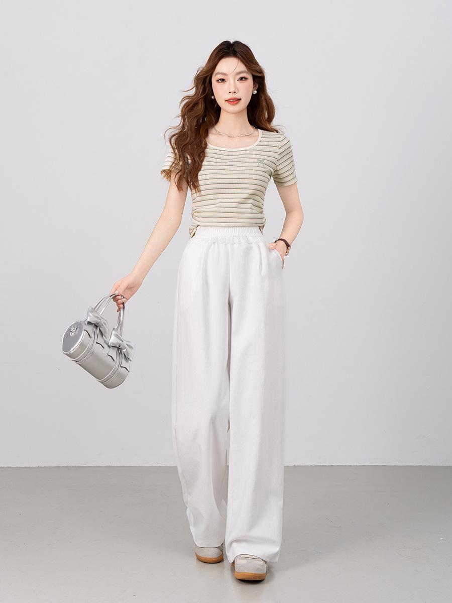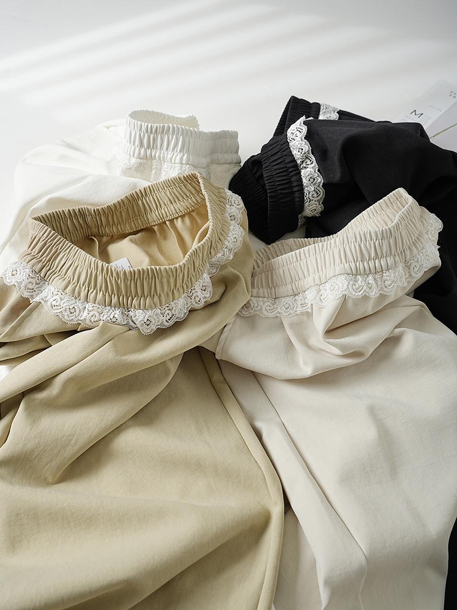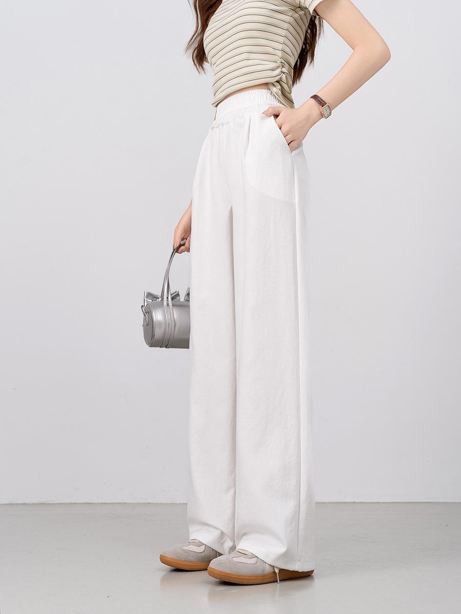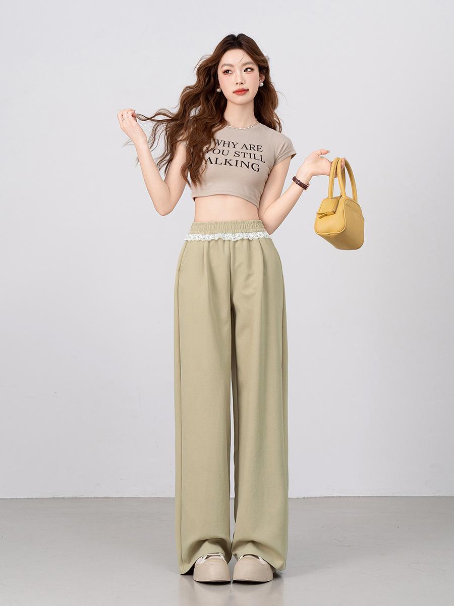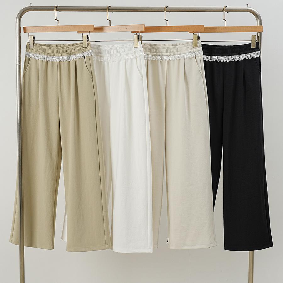 Pantalones anchos de pierna con encaje estilo coreano, nuevos, adelgazantes, rectos, de cintura alta, sueltos, informales, largos, de primavera