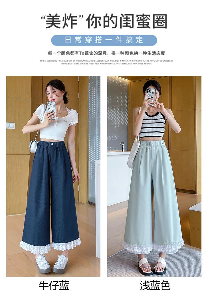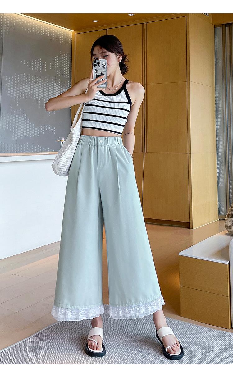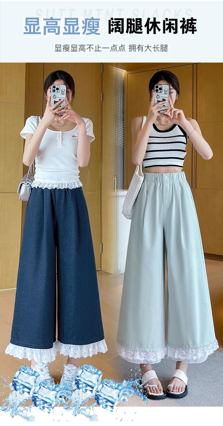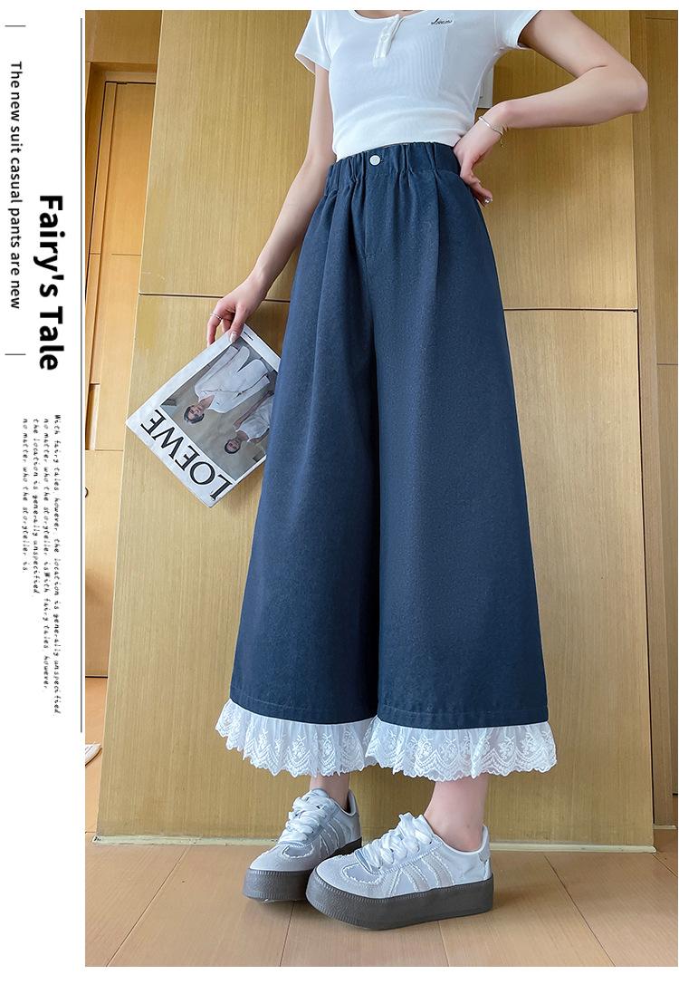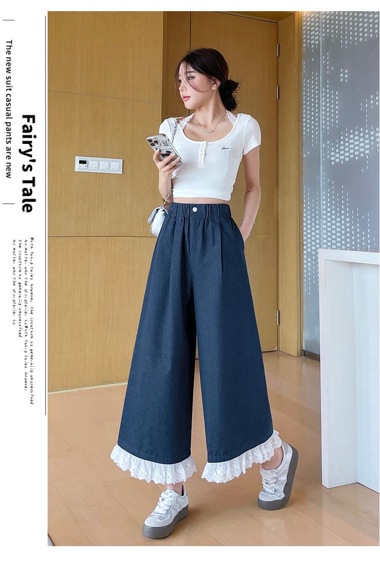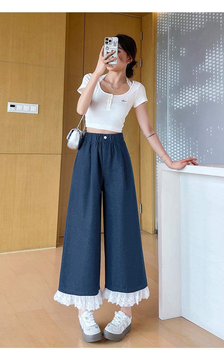 Pantalones Casuales de Encaje Tencel Algodón Lavado para Mujer Verano Pantalones Nueve Puntos Diseño Nuevo 2025 Pantalones de Pierna Ancha de Cintura Alta
