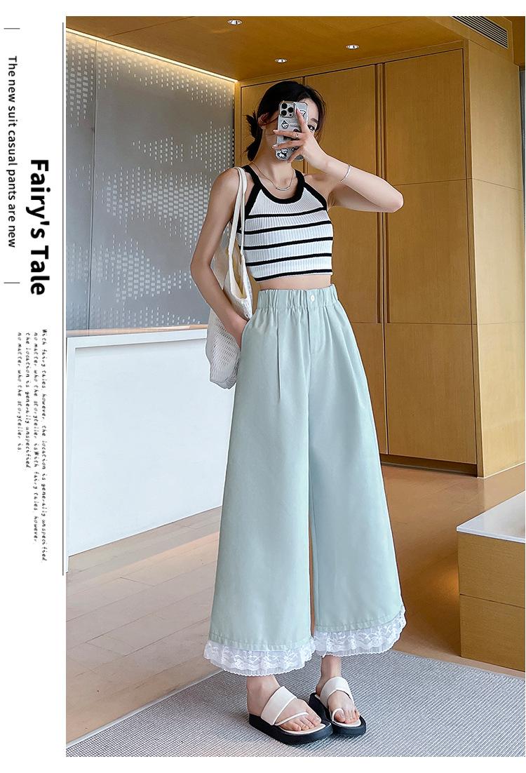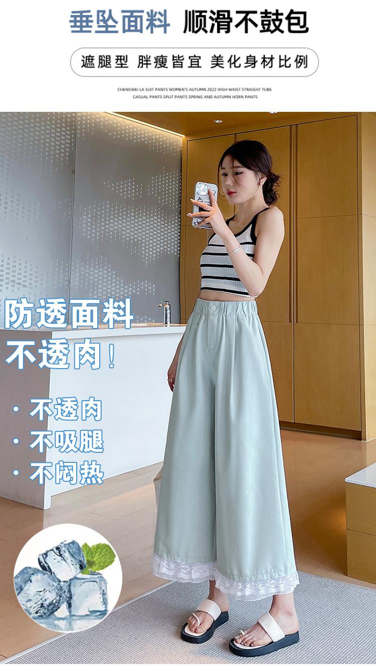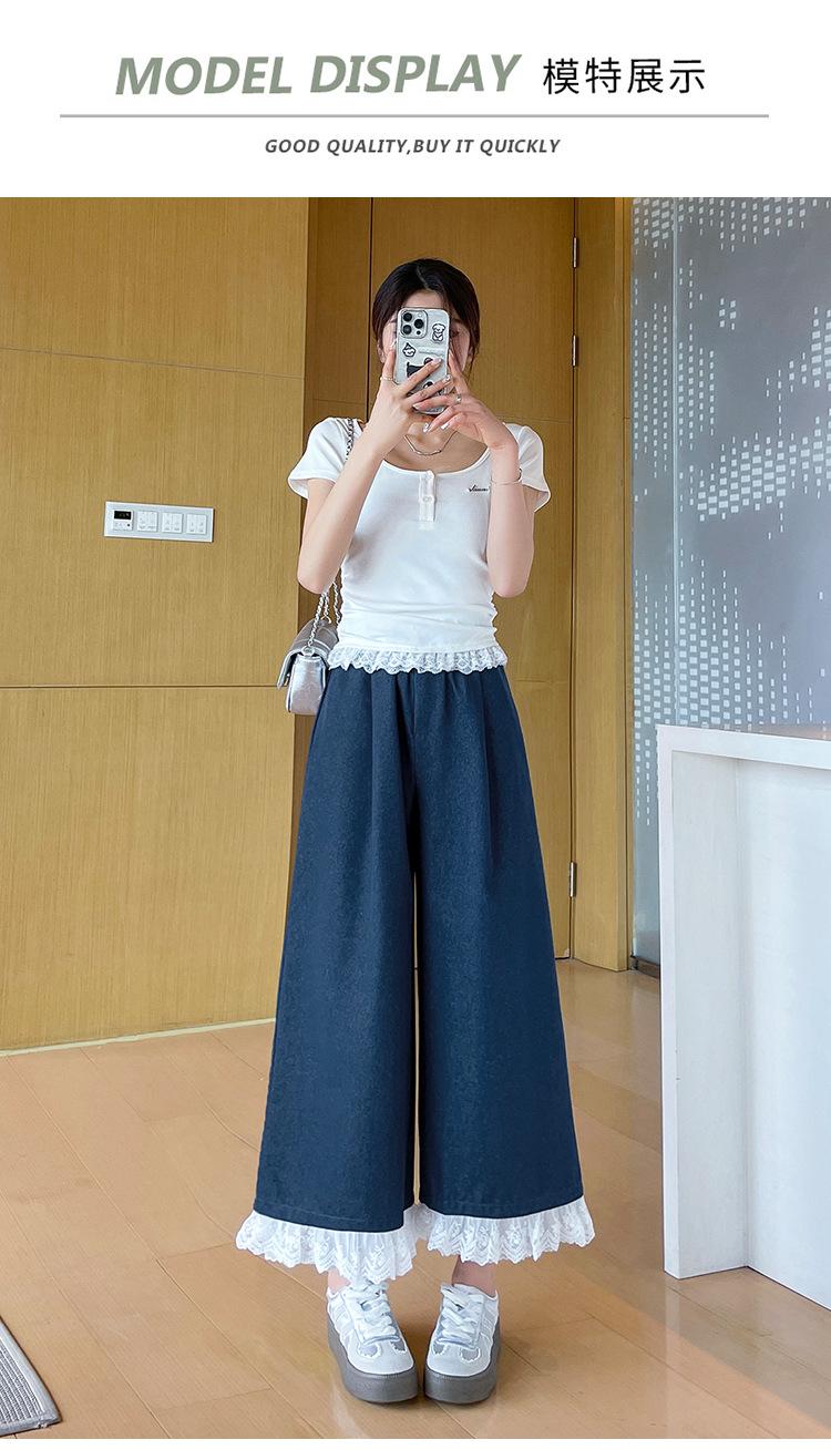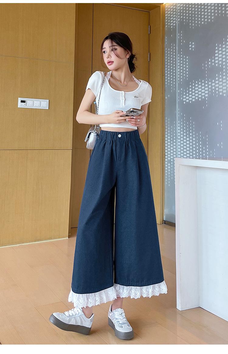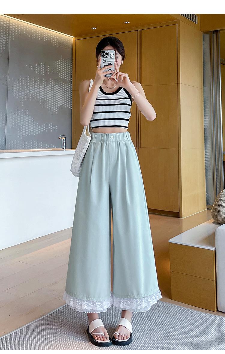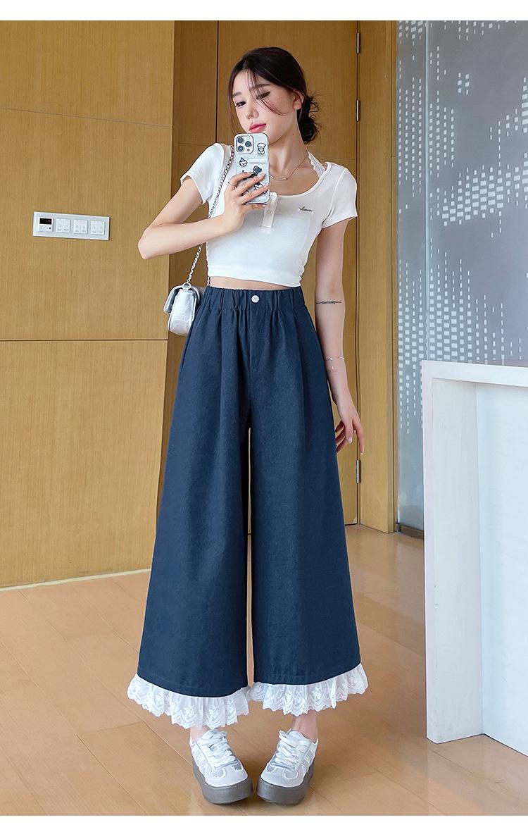 Pantalones Casuales de Encaje Tencel Algodón Lavado para Mujer Verano Pantalones Nueve Puntos Diseño Nuevo 2025 Pantalones de Pierna Ancha de Cintura Alta