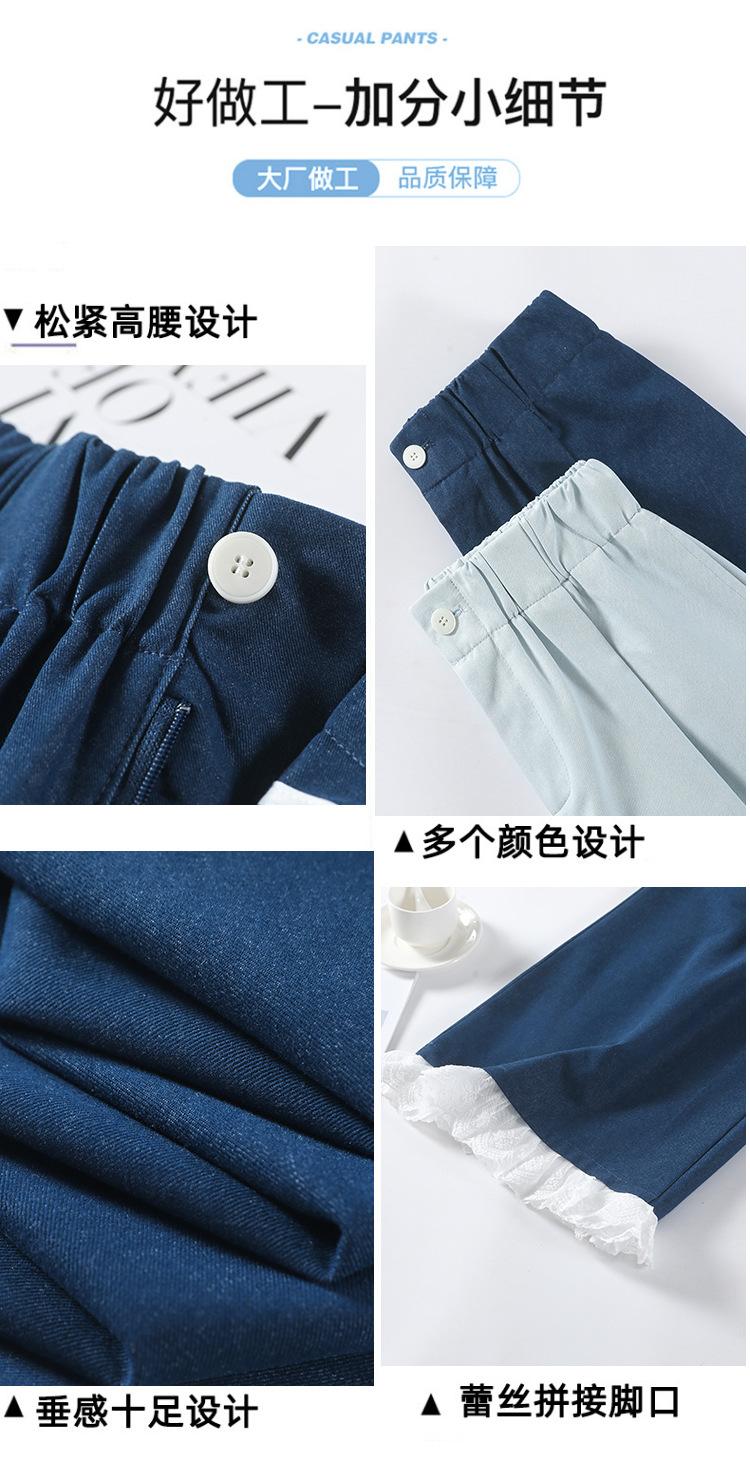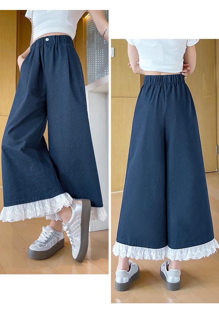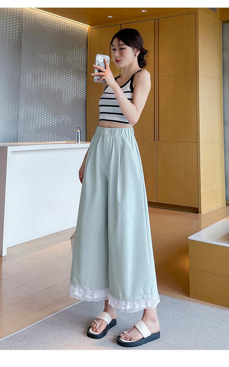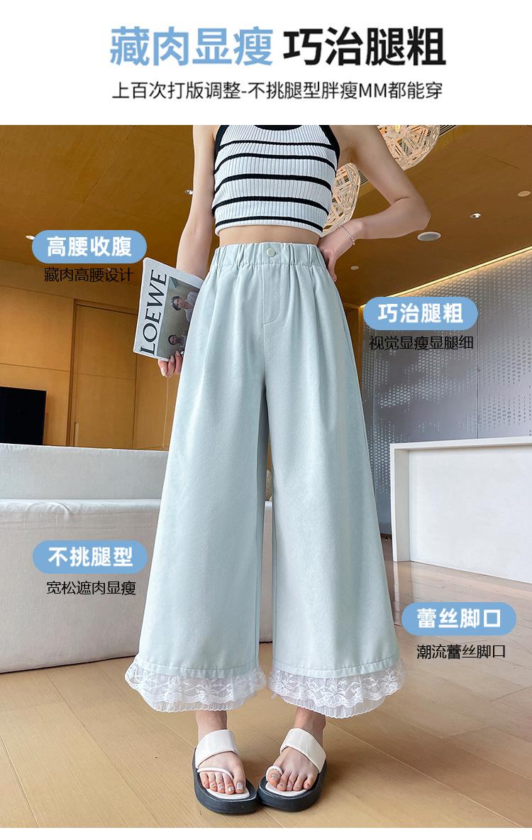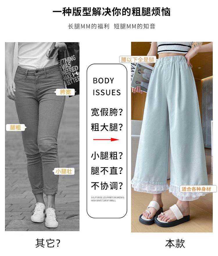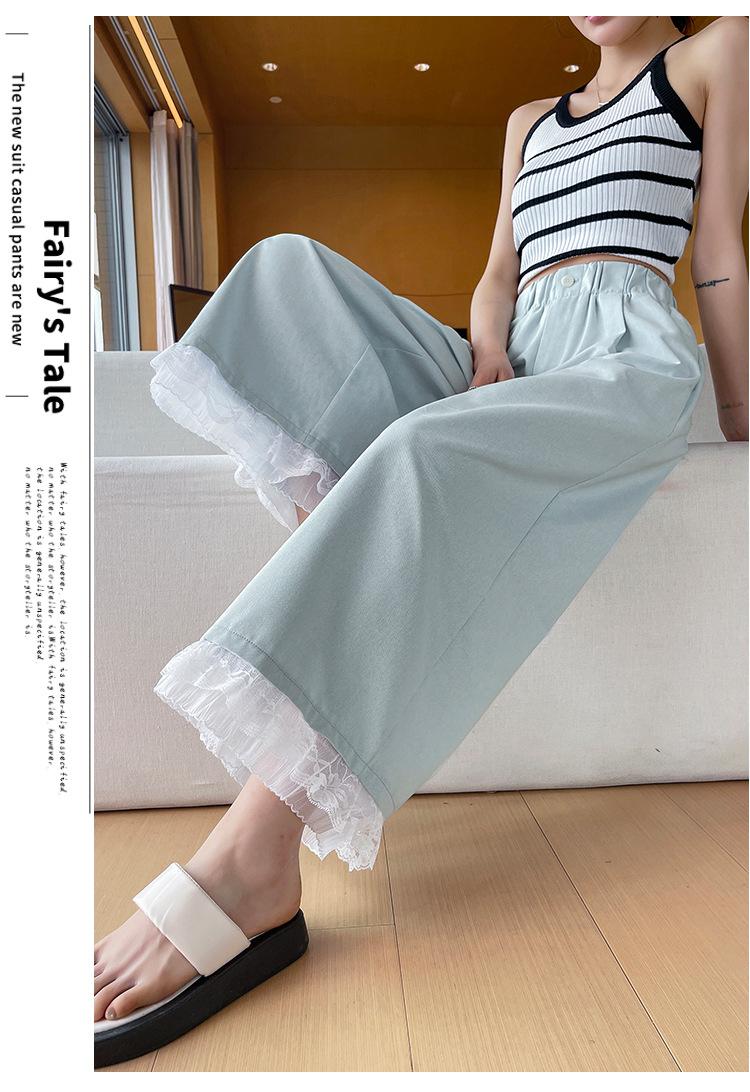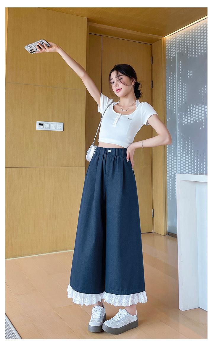 Pantalones Casuales de Encaje Tencel Algodón Lavado para Mujer Verano Pantalones Nueve Puntos Diseño Nuevo 2025 Pantalones de Pierna Ancha de Cintura Alta