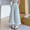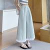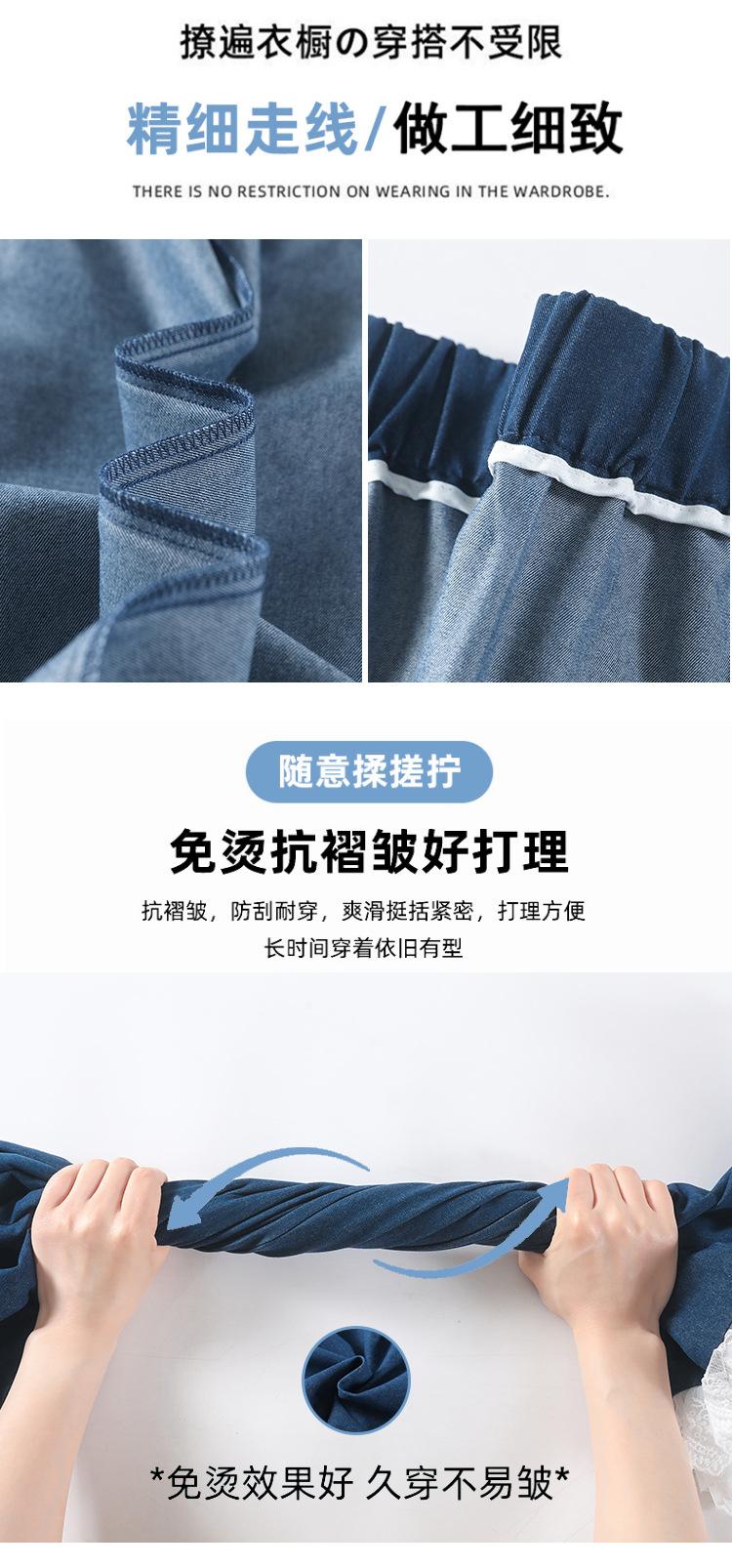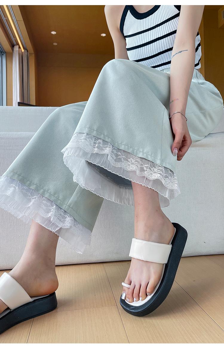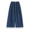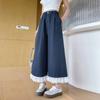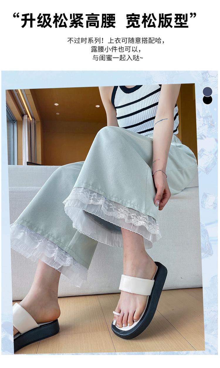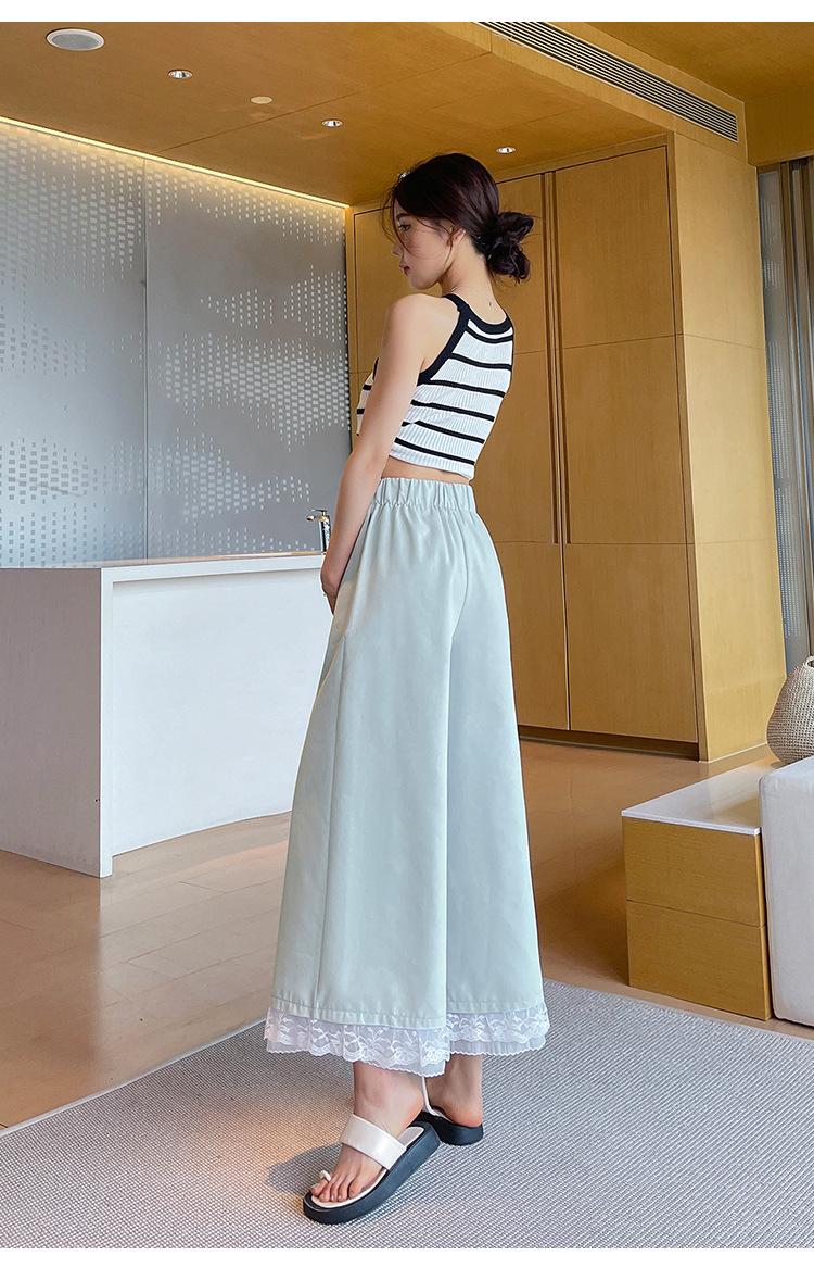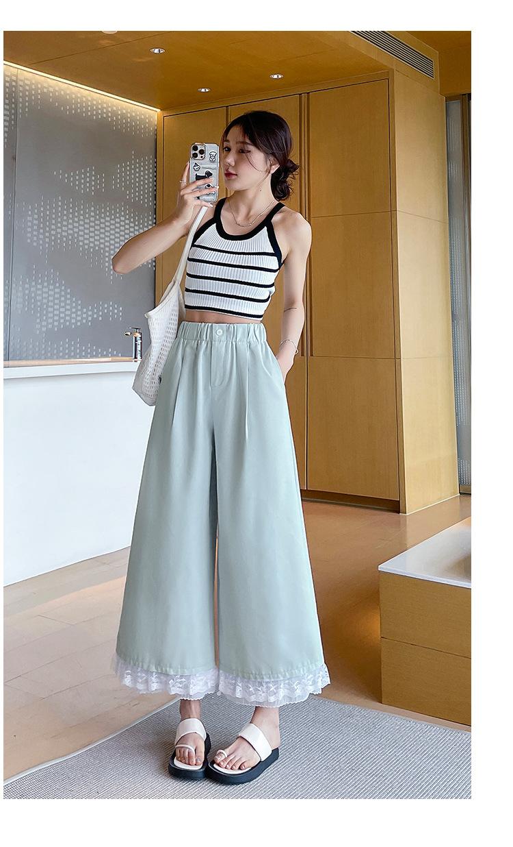 Pantalones Casuales de Encaje Tencel Algodón Lavado para Mujer Verano Pantalones Nueve Puntos Diseño Nuevo 2025 Pantalones de Pierna Ancha de Cintura Alta