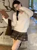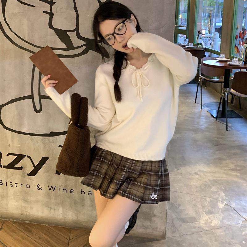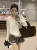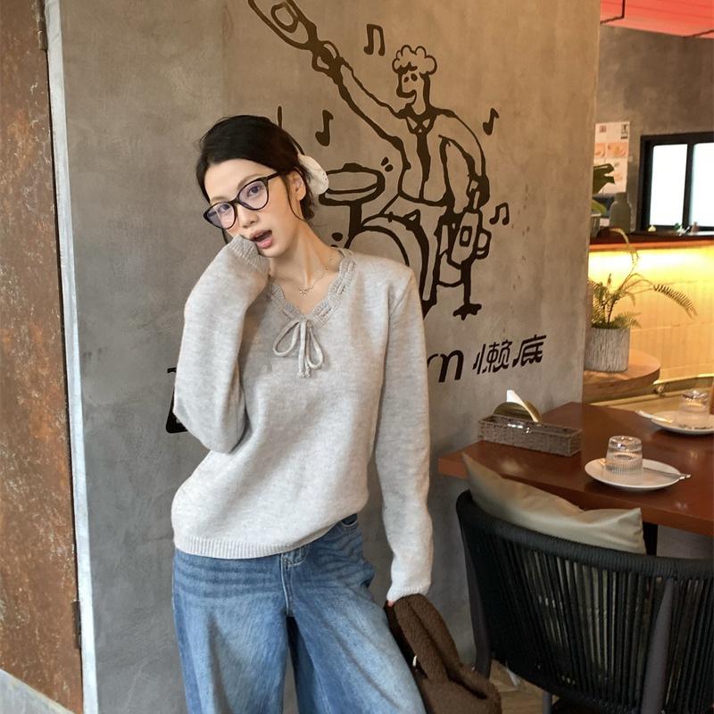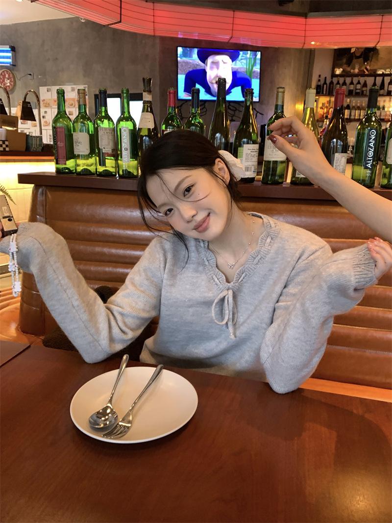 Camiseta de manga larga con cordón sexy para chicas calientes de otoño e invierno, pequeña, holgada, estilo perezoso, de punto, de moda, top de nicho Ins