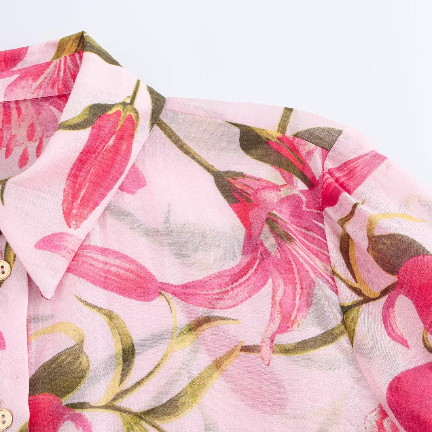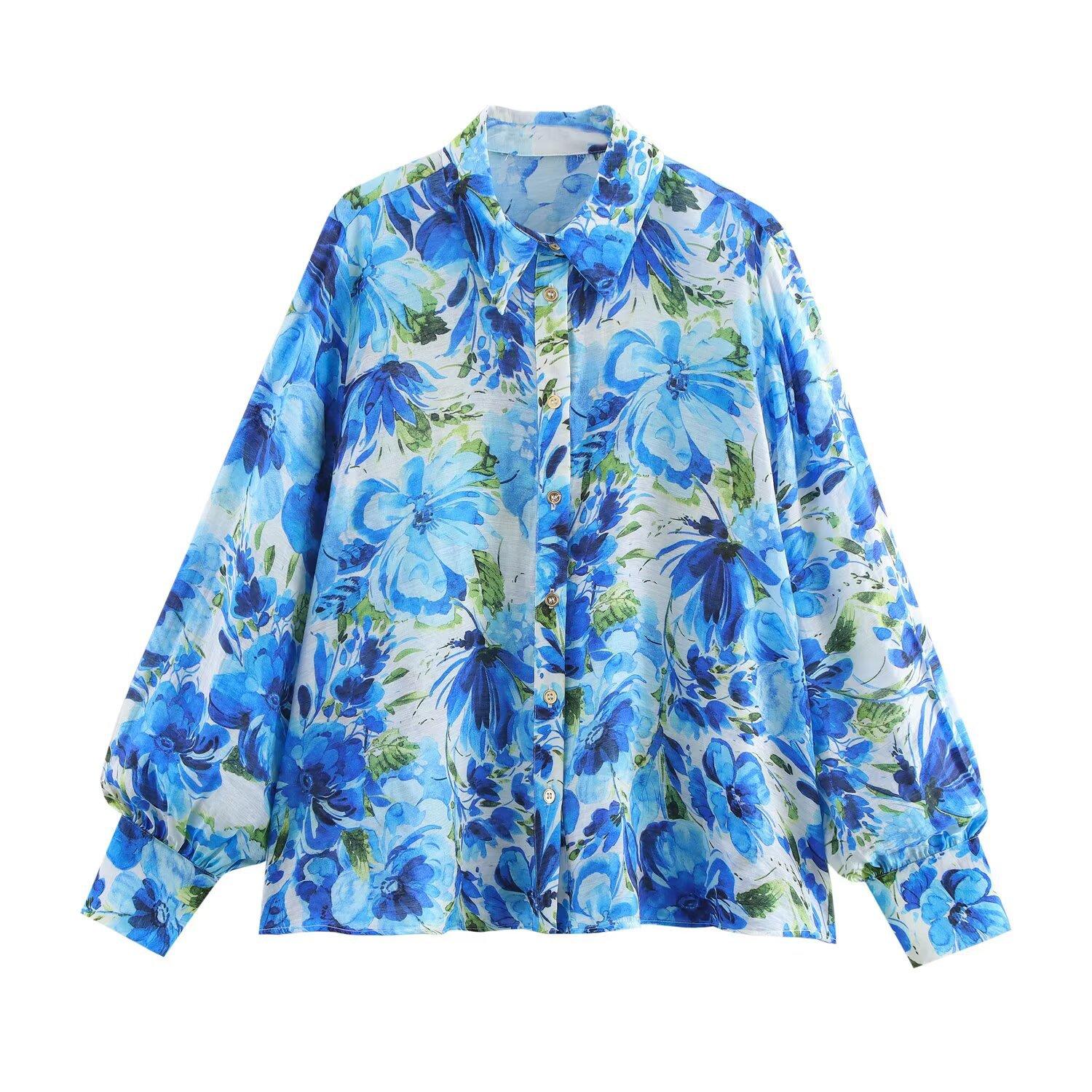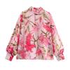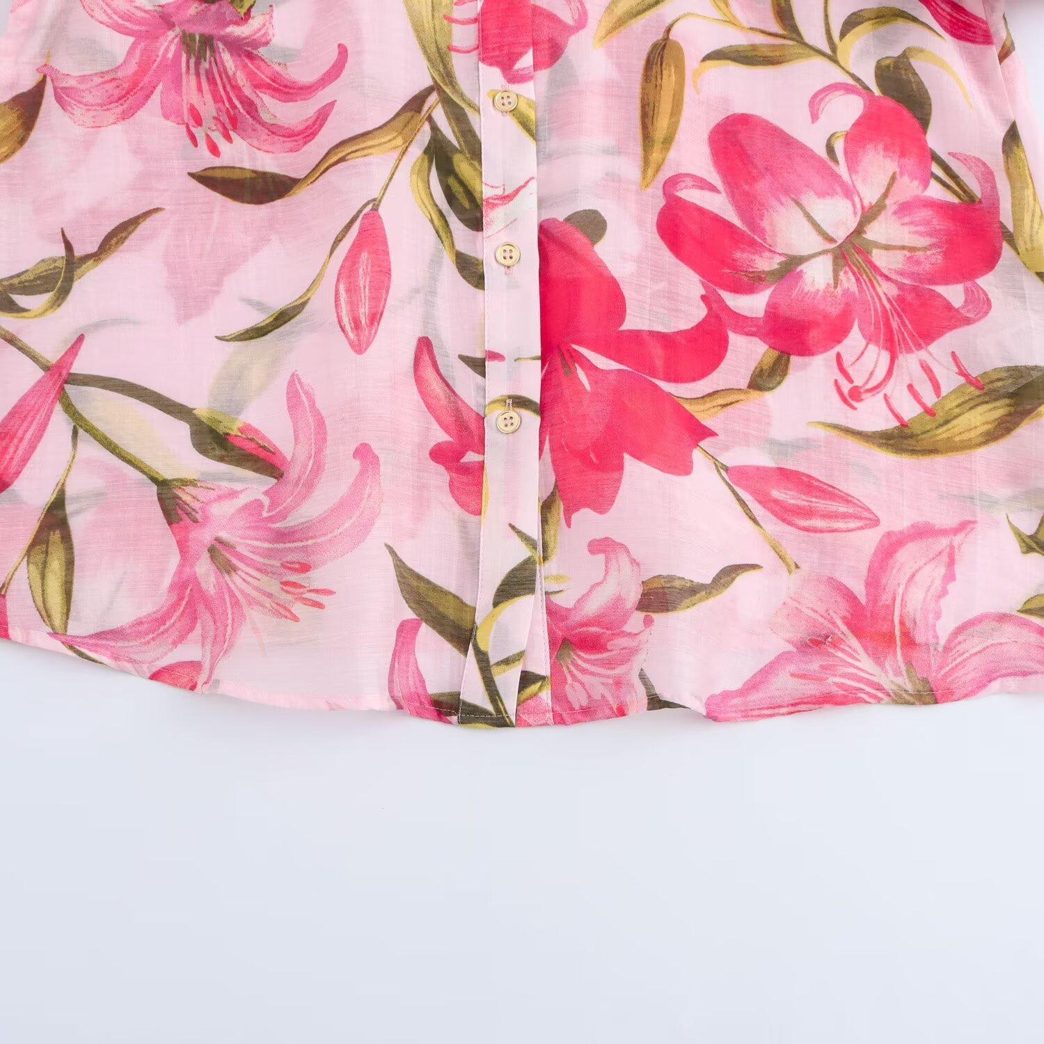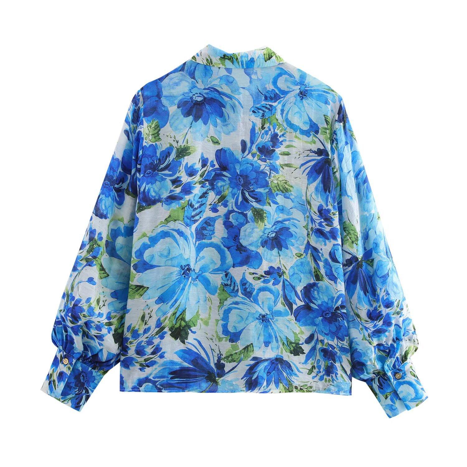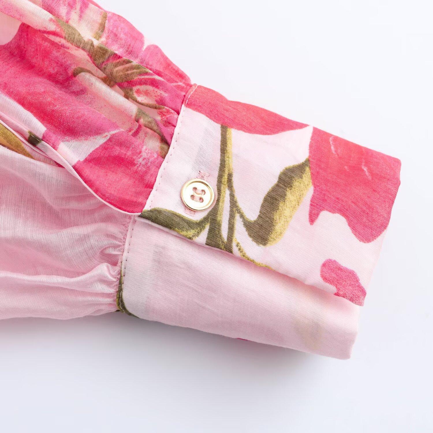 Primavera 2025, nueva ropa transfronteriza europea y americana para mujer, moda urbana, temperamento, estampado floral, manga larga w025 11237