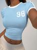 Nuevo Caliente Americano Transfronterizo Chica Mujeres Cuello Redondo Estampado Digital Ombligo Manga Corta Jersey Transfronterizo Venta al por Mayor Top Camiseta