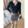 Clásico color sólido limpio y nítido cuello ribete línea de cuello tapeta color de contraste detalle de adorno de nudo forrado sensación llena