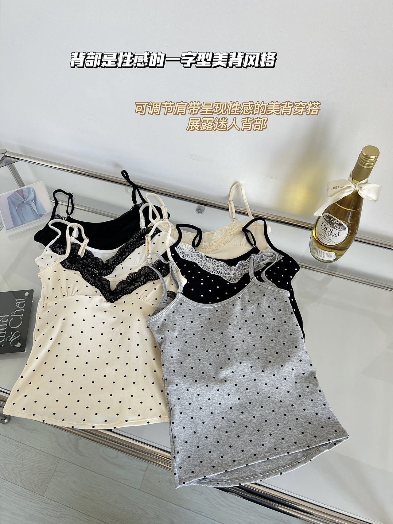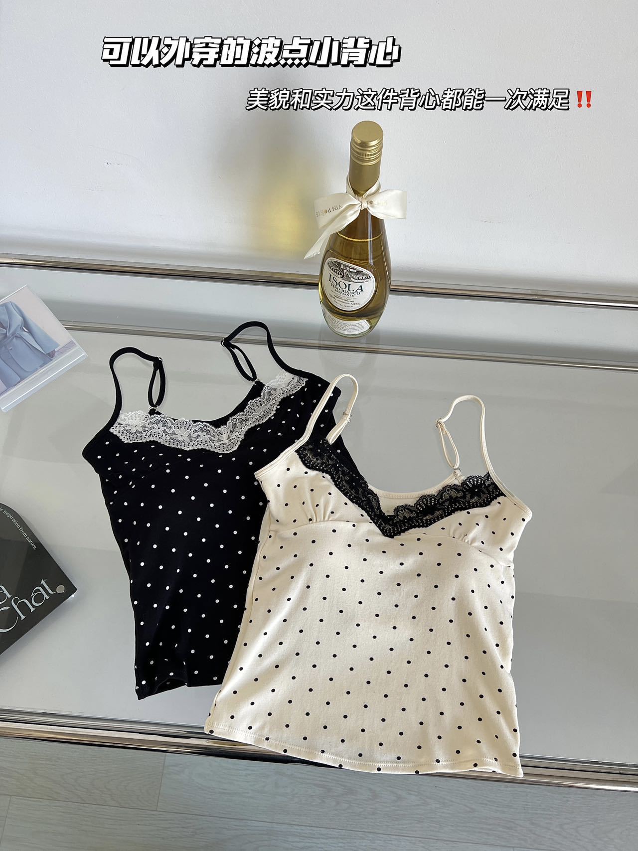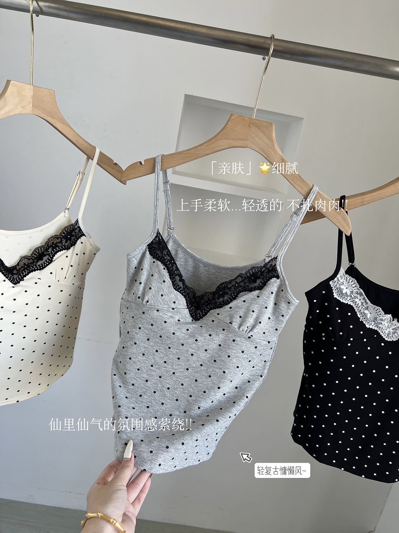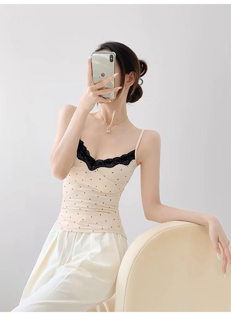 Camisola de encaje francés con lunares y costuras Spice Girl para mujer, escote en V, 86082