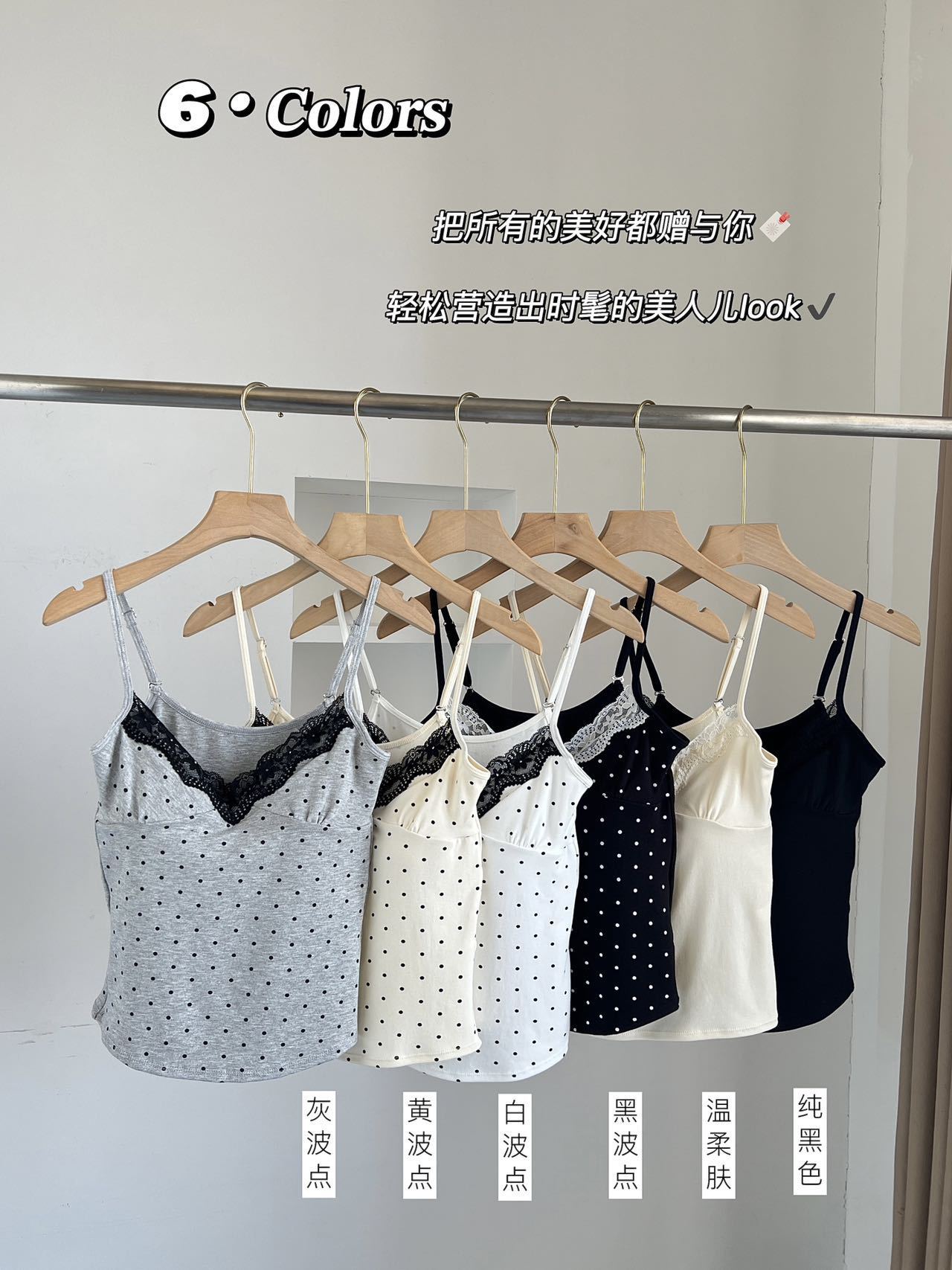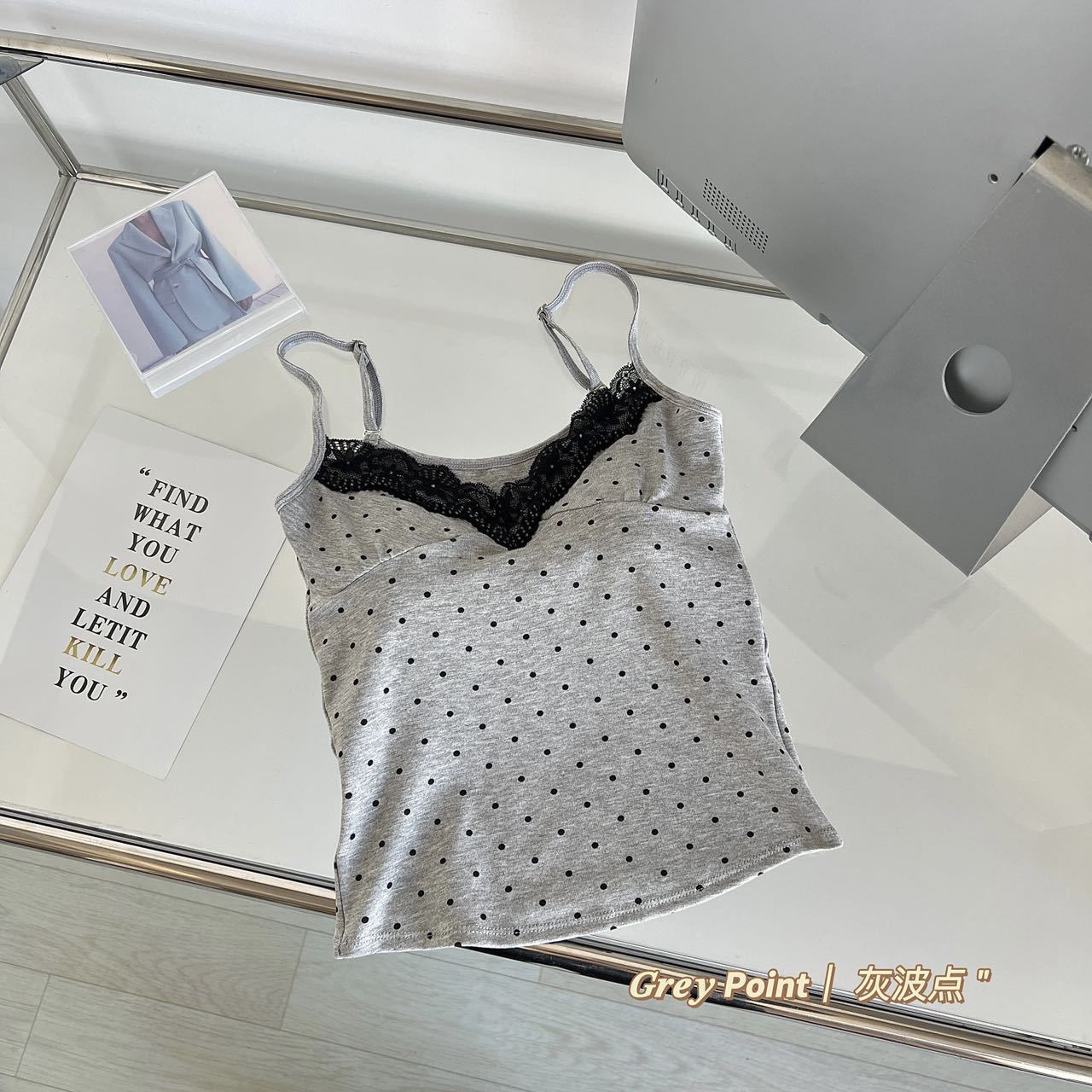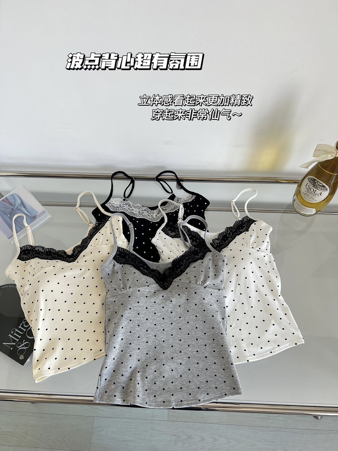 Camisola de encaje francés con lunares y costuras Spice Girl para mujer, escote en V, 86082