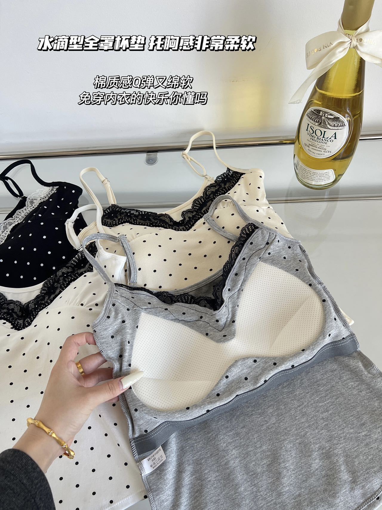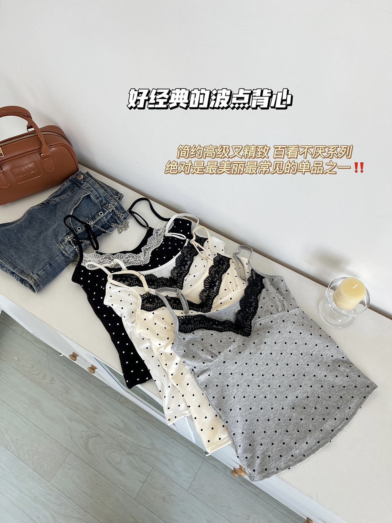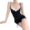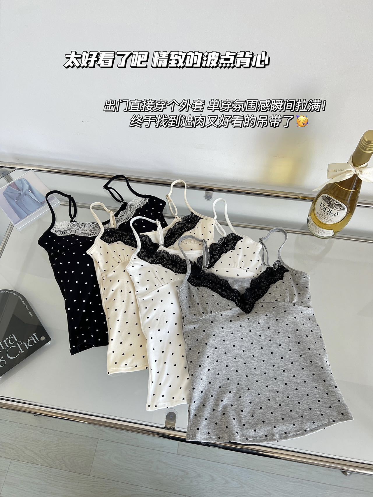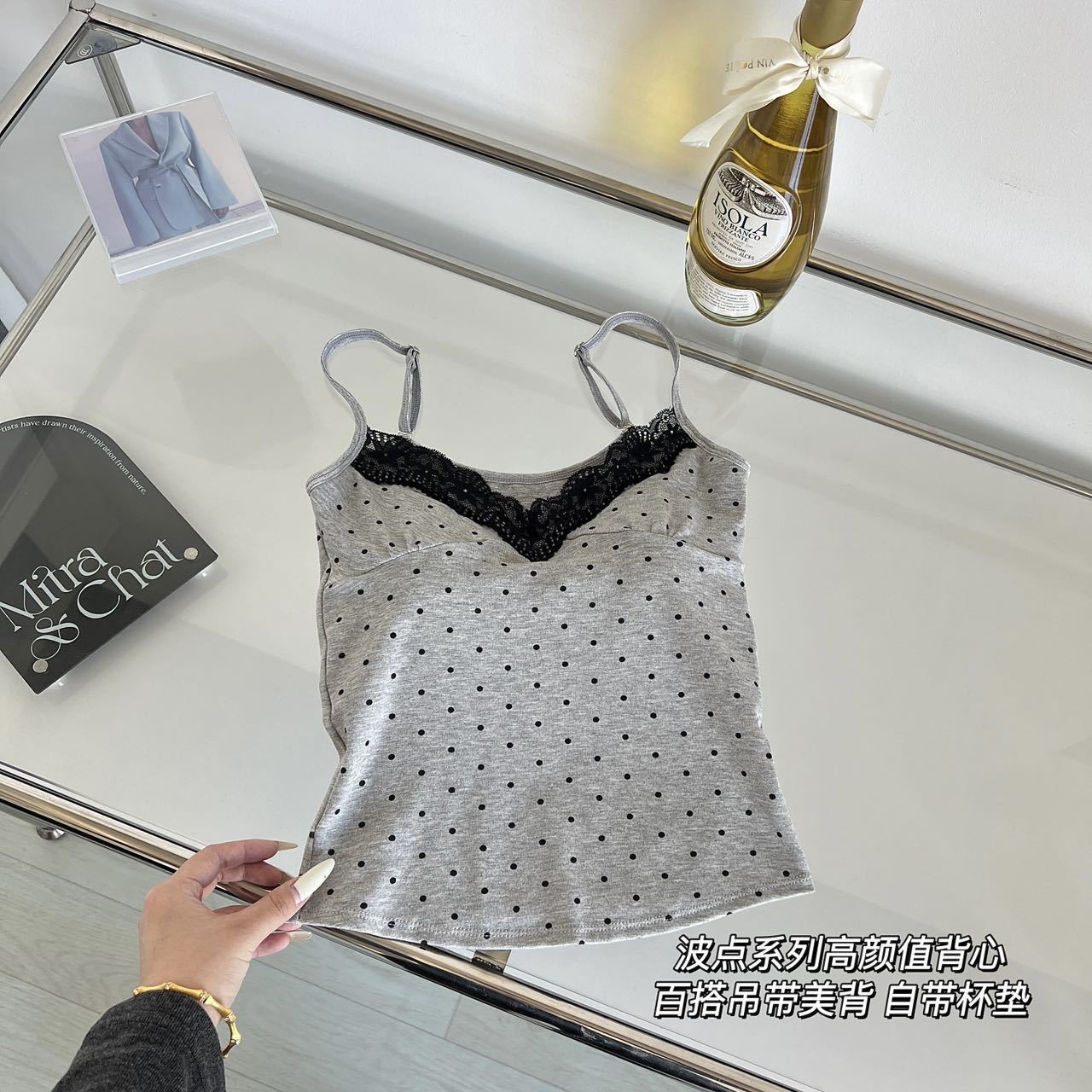 Camisola de encaje francés con lunares y costuras Spice Girl para mujer, escote en V, 86082