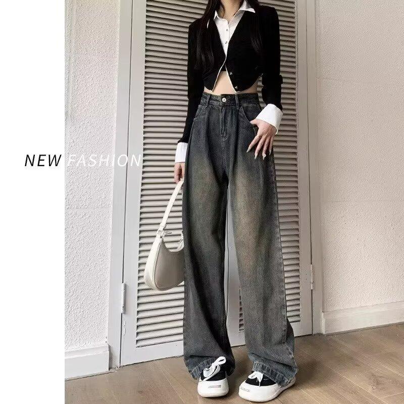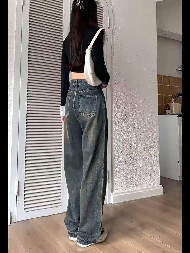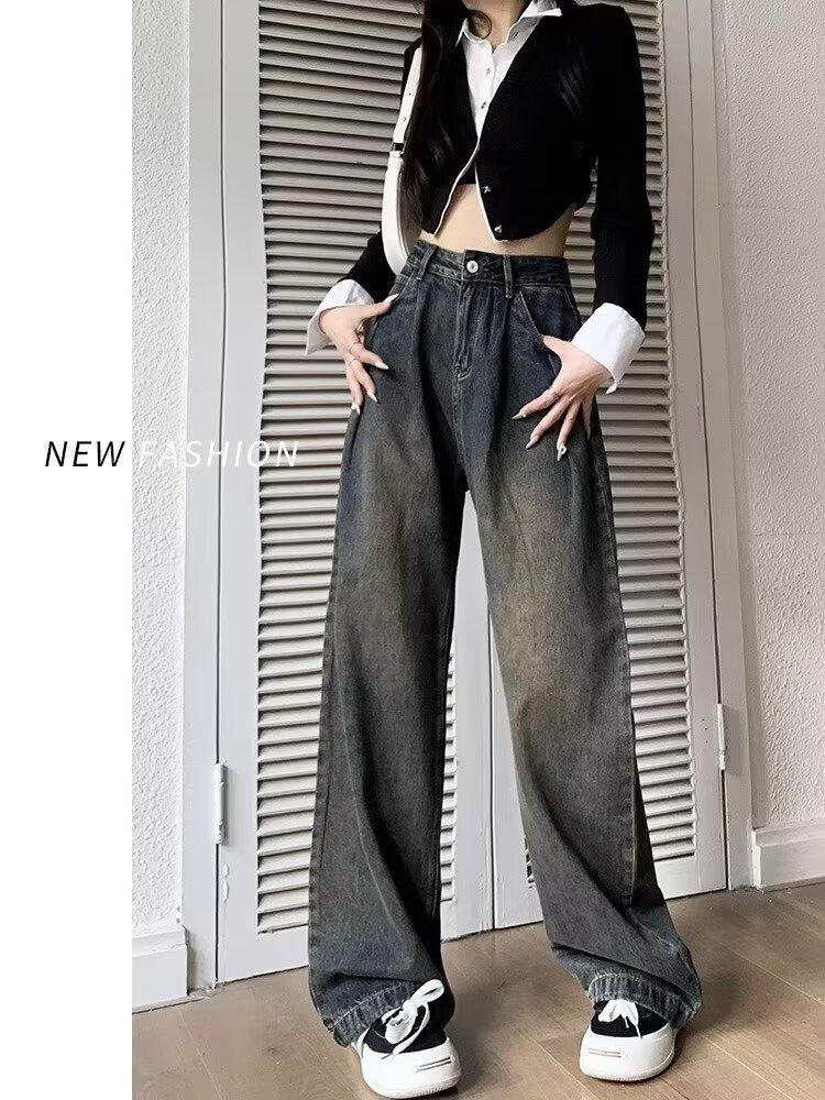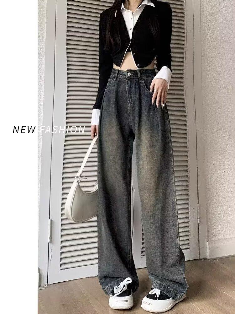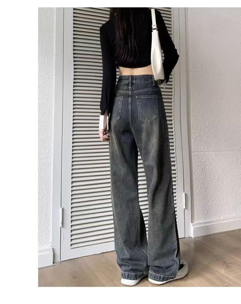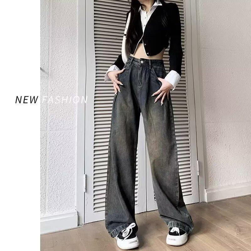 Pantalones vaqueros retro americanos para mujer, primavera y verano, diseño antiguo, estilo nicho, pierna recta, pierna ancha, a la moda.
