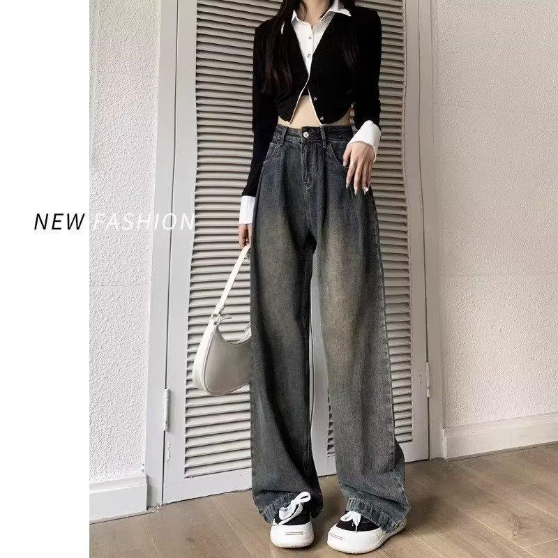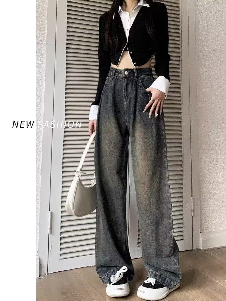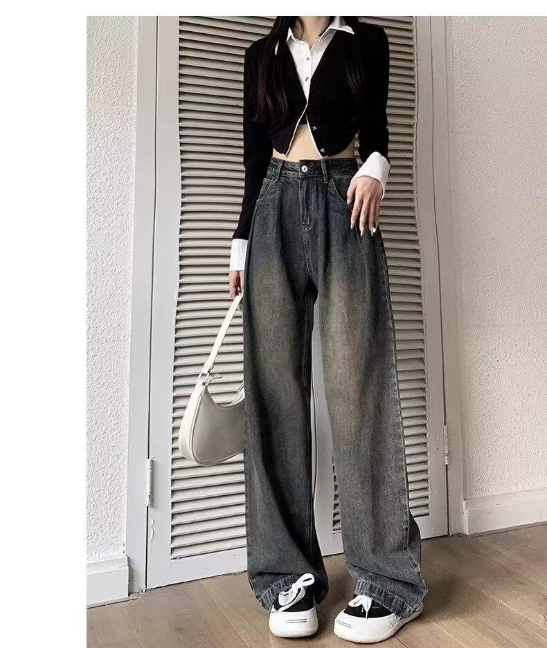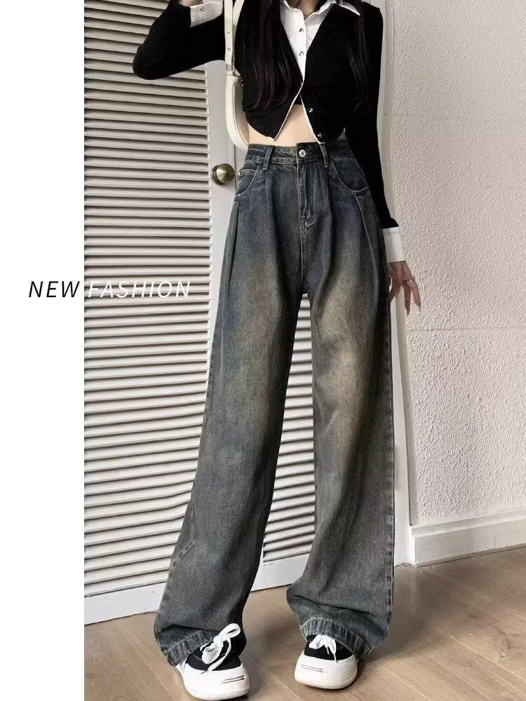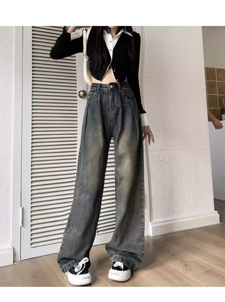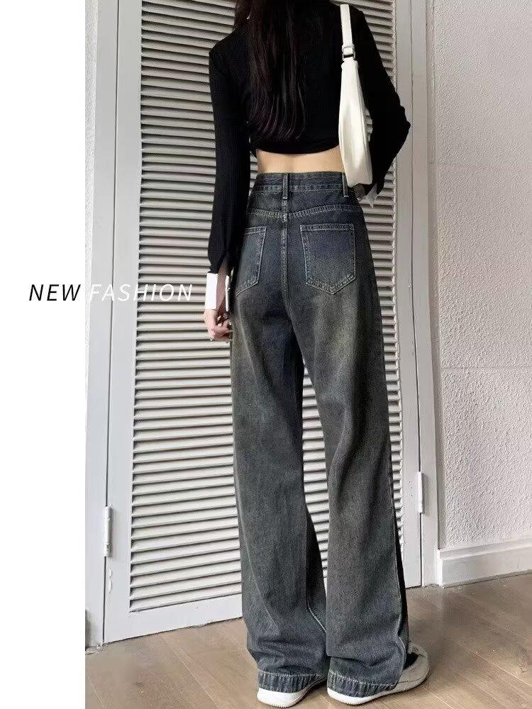 Pantalones vaqueros retro americanos para mujer, primavera y verano, diseño antiguo, estilo nicho, pierna recta, pierna ancha, a la moda.