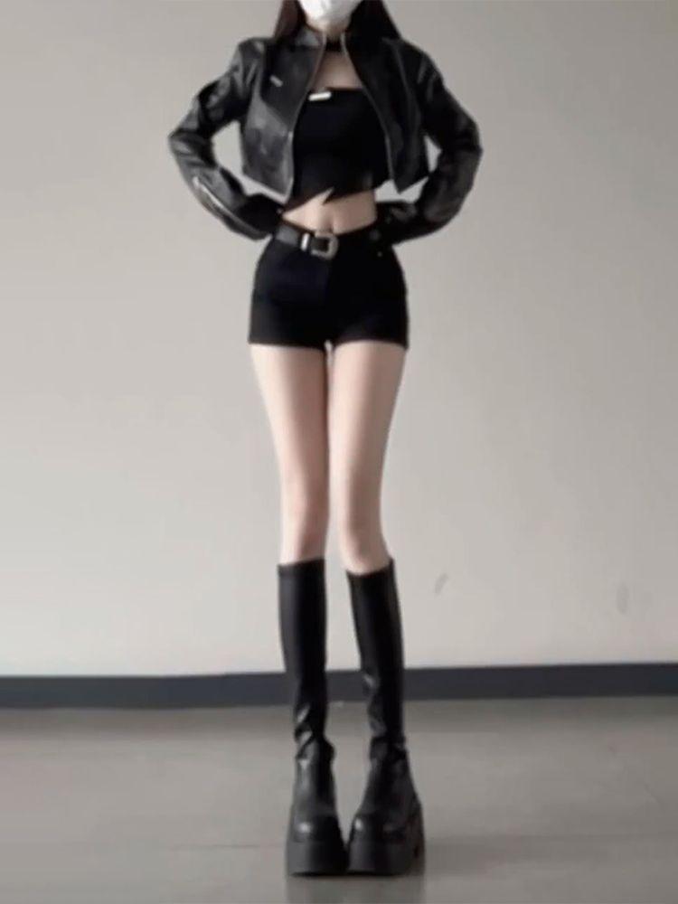 Pantalones cortos vaqueros negros de cintura baja estilo americano para mujer, nuevos pantalones cortos ajustados adelgazantes de verano con forma de A y caderas.