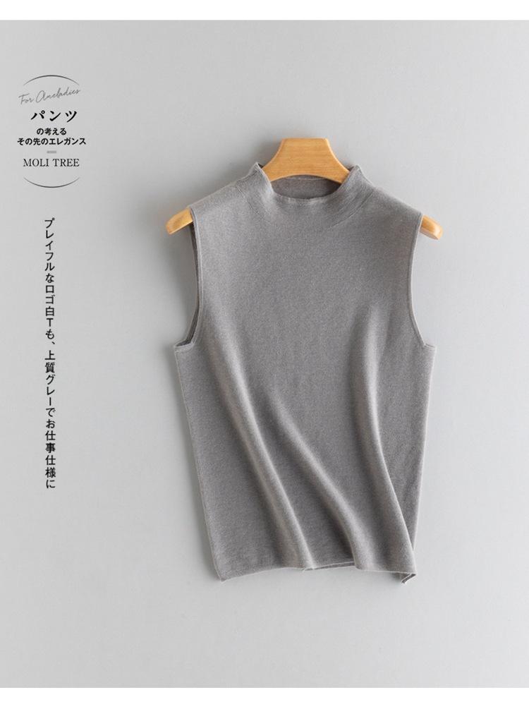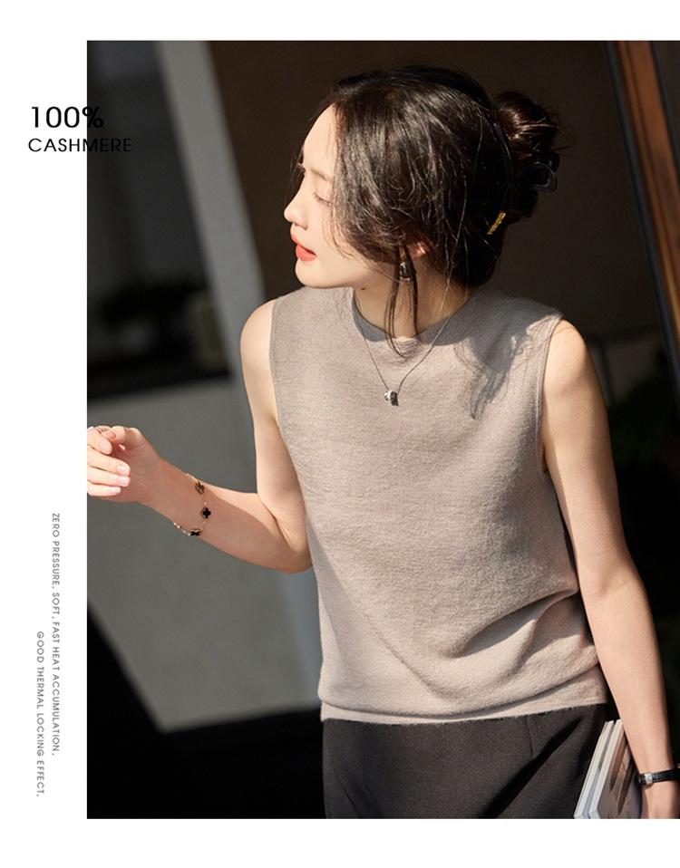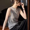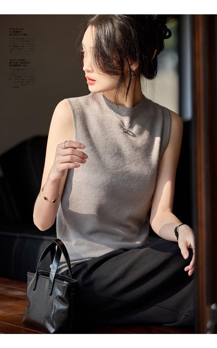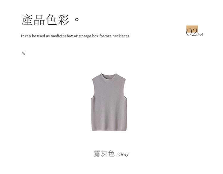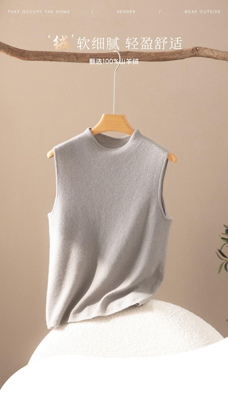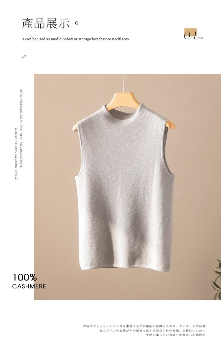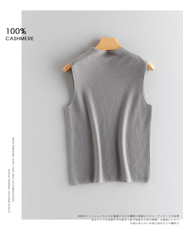 Ropa de Punto 100% Cachemira para Mujer Cuello Alto Medio Slim Chaleco Exterior Nuevo Primavera y Otoño Camiseta Básica sin Mangas