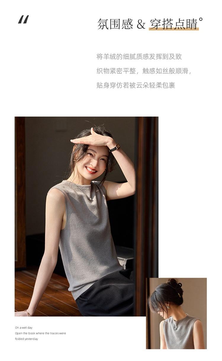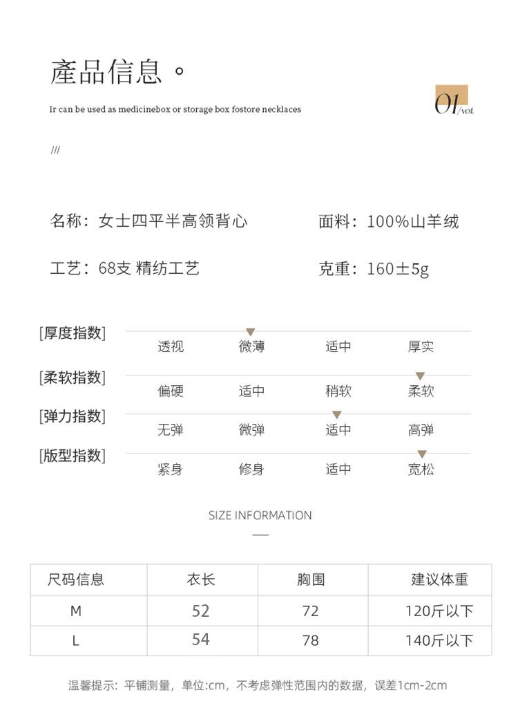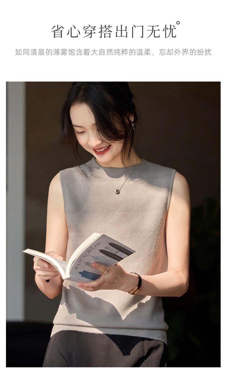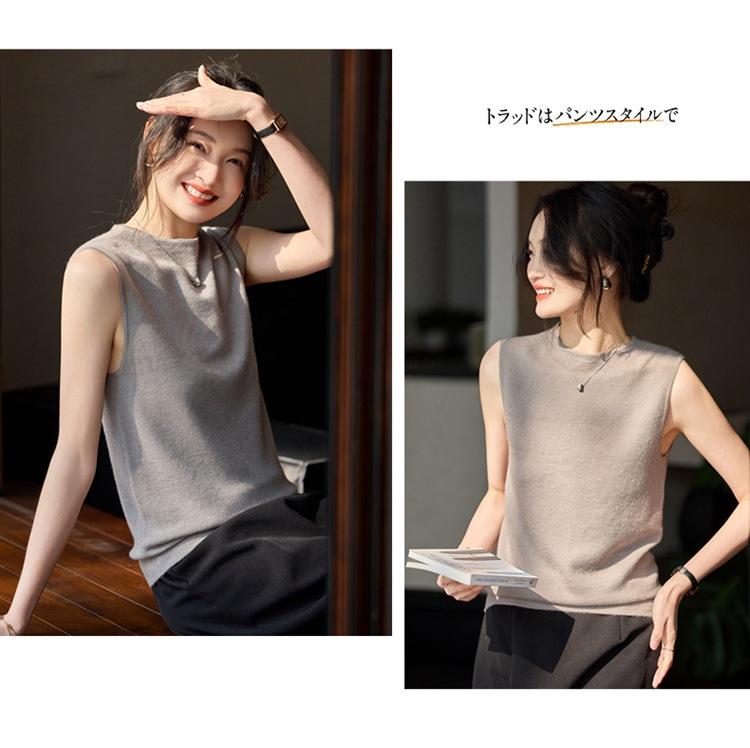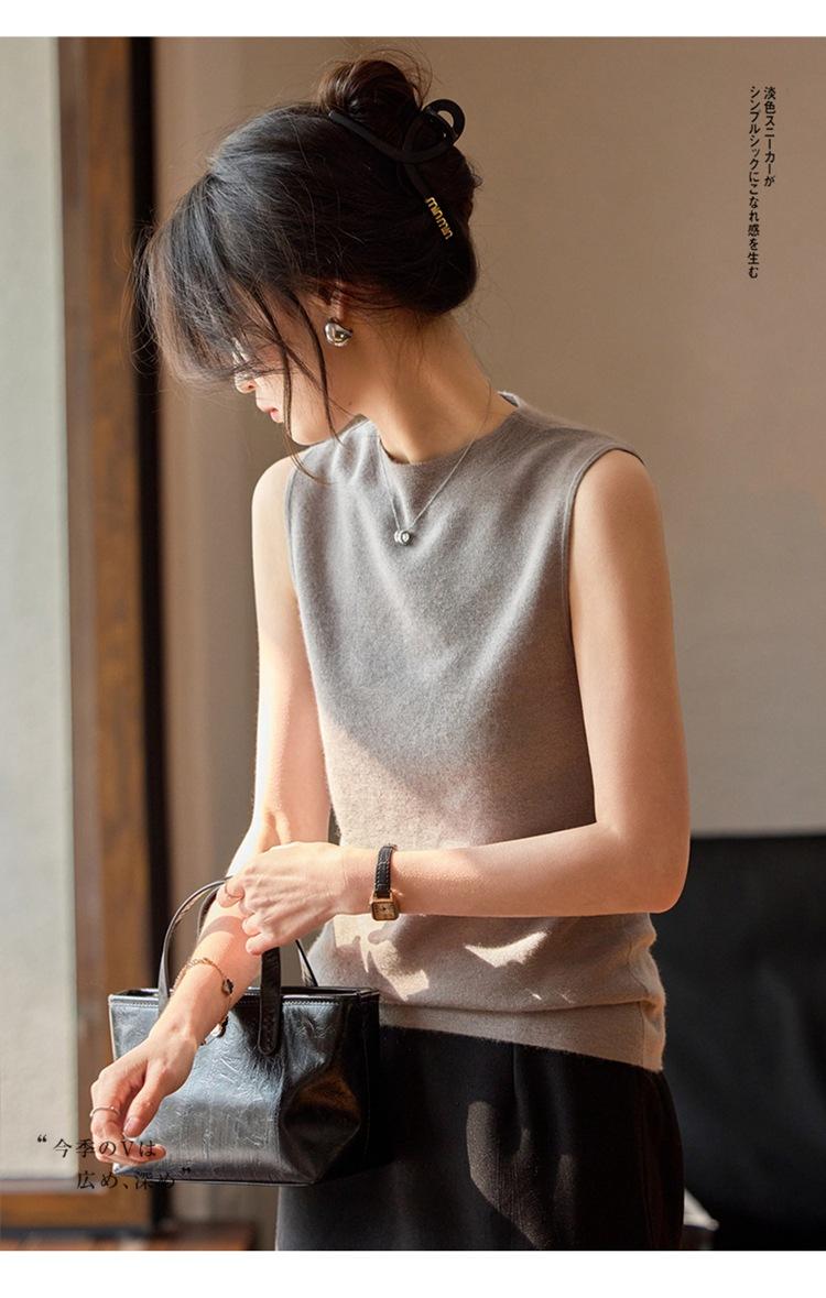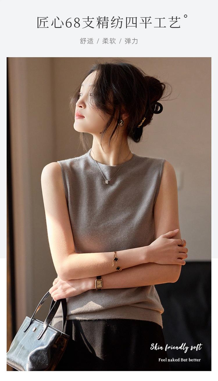 Ropa de Punto 100% Cachemira para Mujer Cuello Alto Medio Slim Chaleco Exterior Nuevo Primavera y Otoño Camiseta Básica sin Mangas