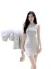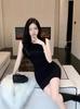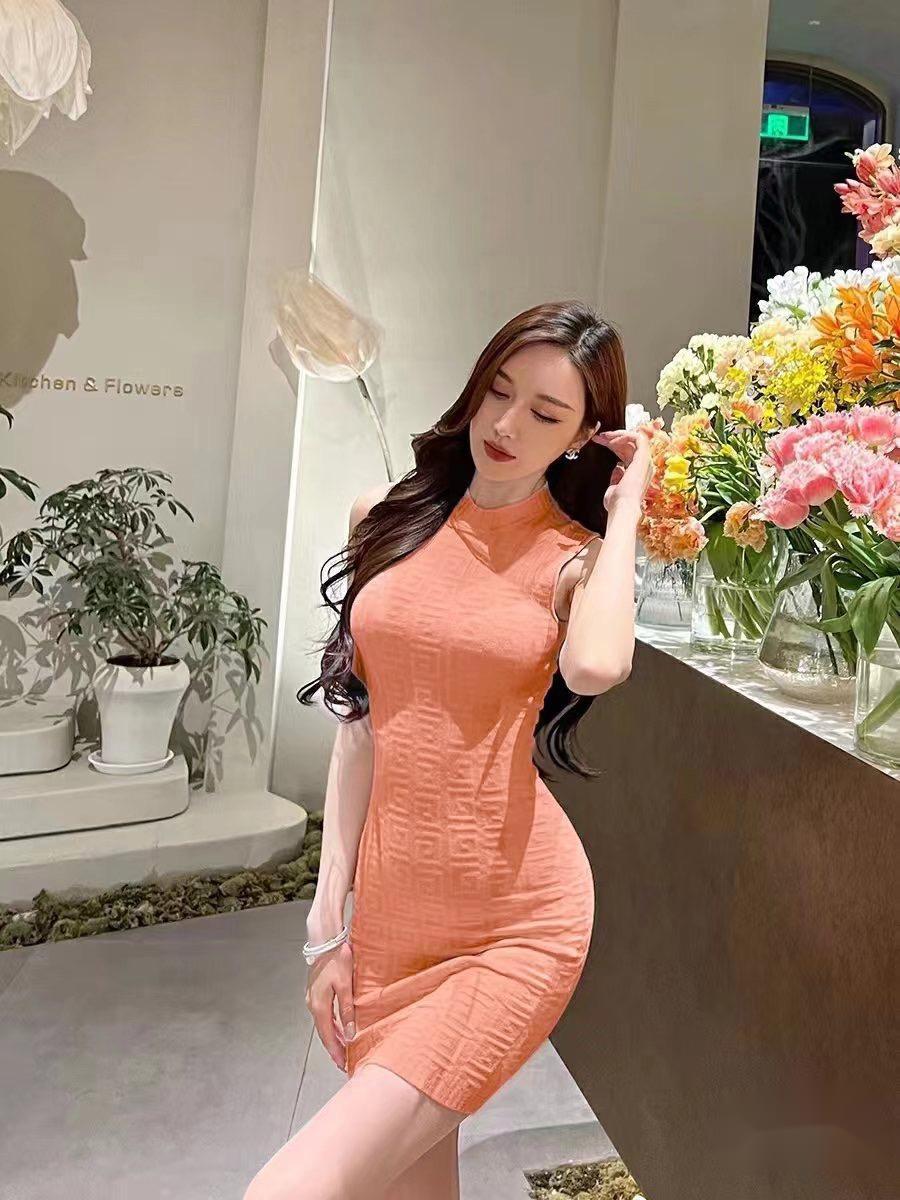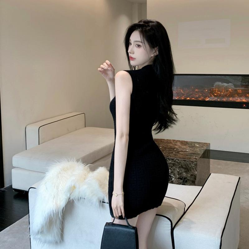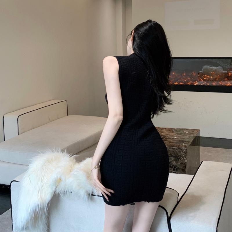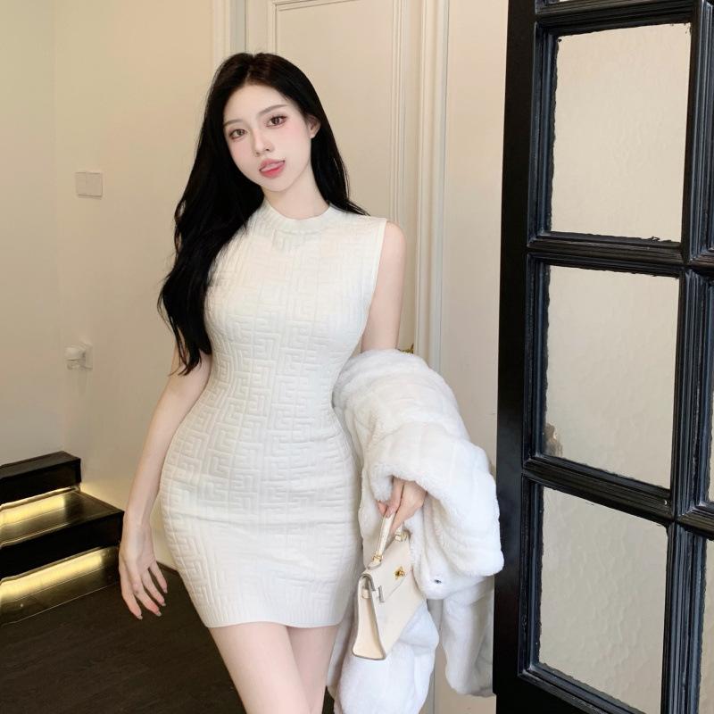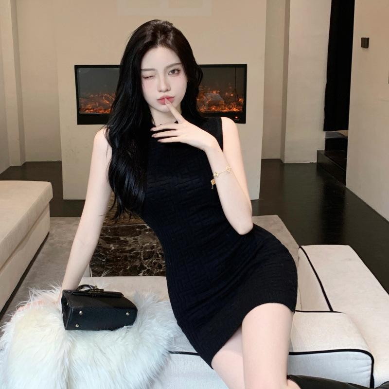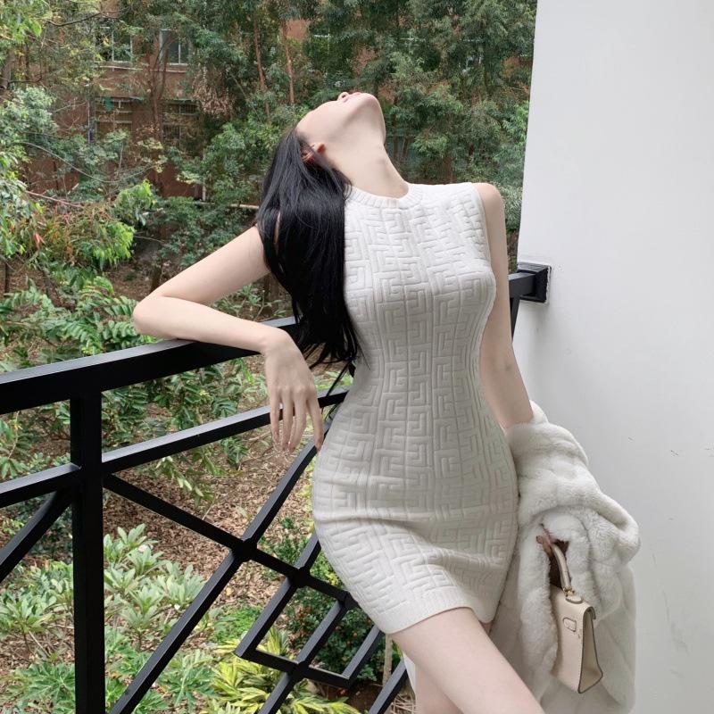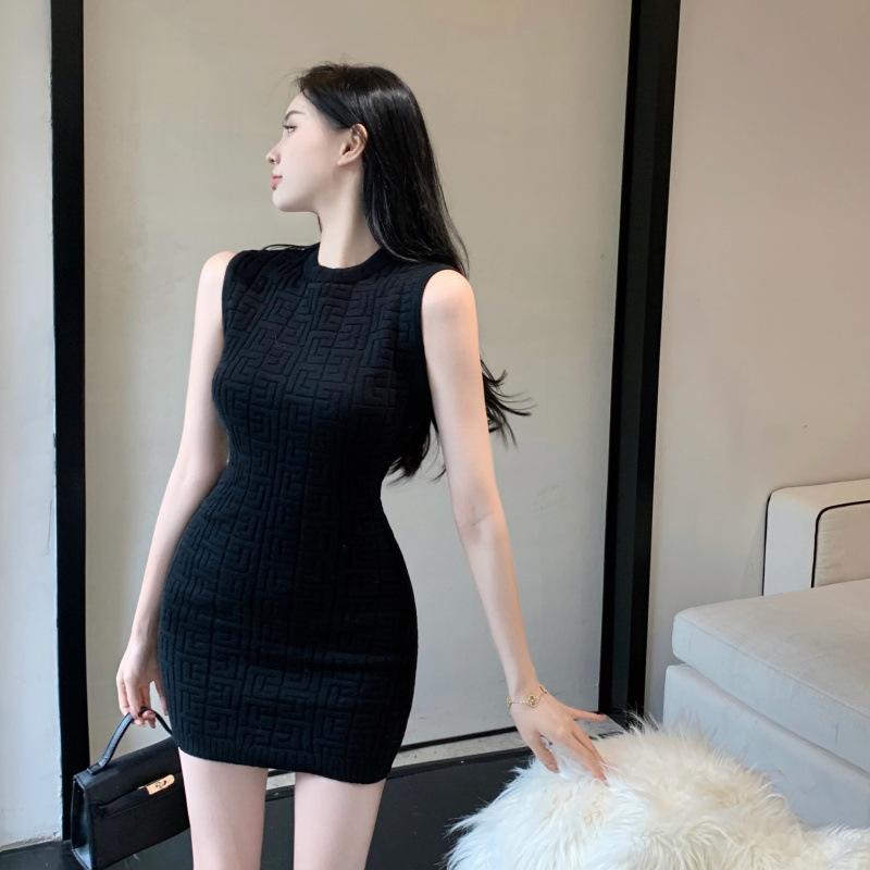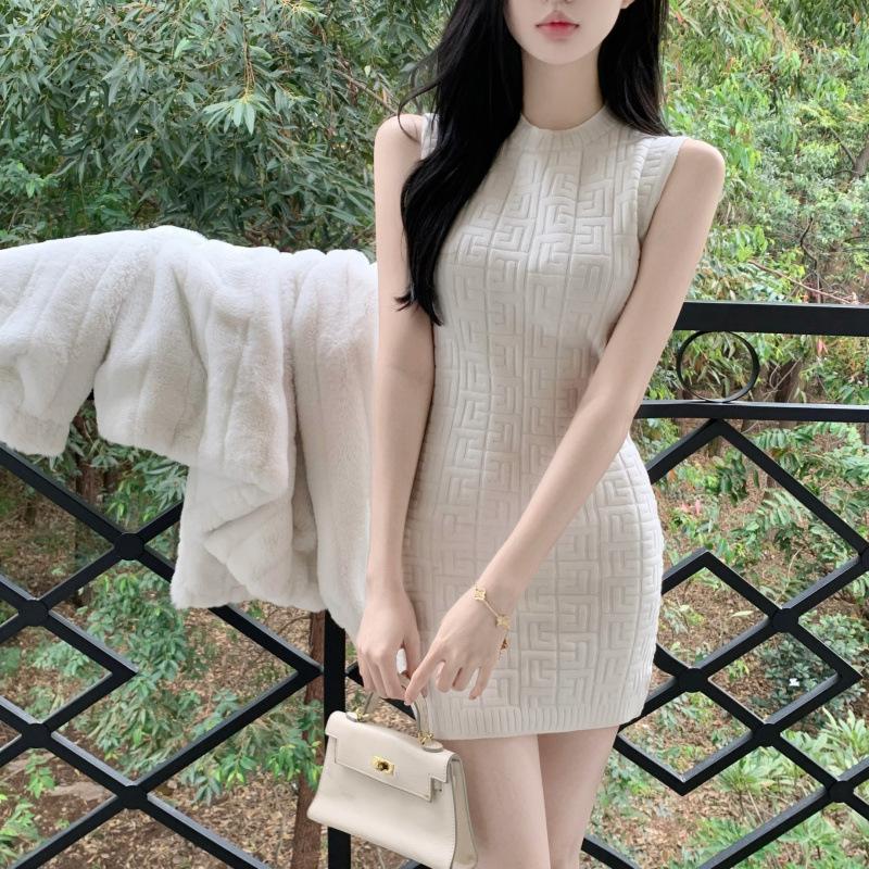 Vestido de Verano Elegante y Elegante sin Mangas Ajustado Cuello Redondo para Mujer