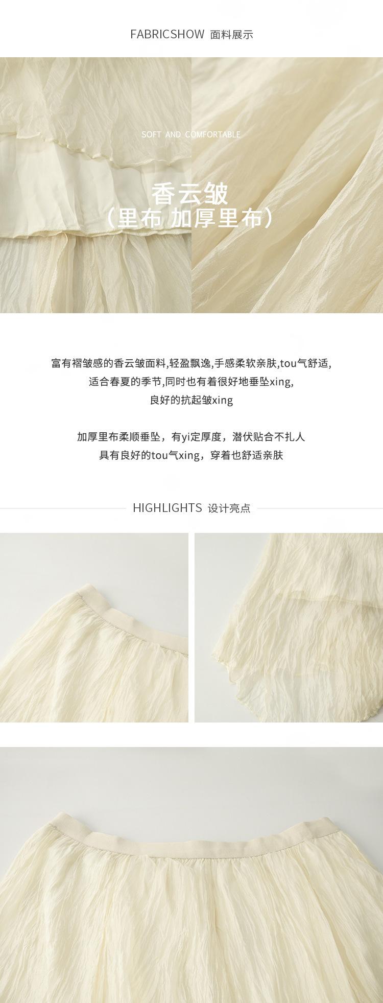 La tela arrugada Xiangyun es ligera y elegante, suave y agradable al tacto, transpirable y cómoda.