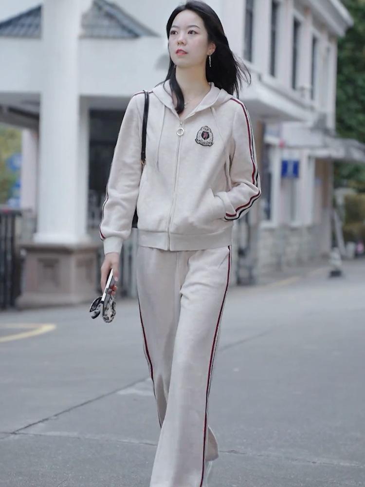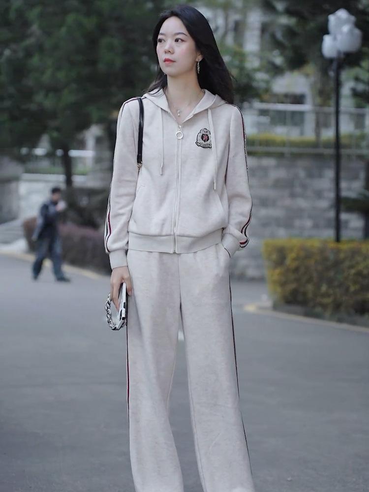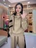 Pantalones rectos adelgazantes informales, ropa antiedad, cárdigan de invierno con cremallera, suéter grueso de manga larga, ropa de dos piezas para mujer