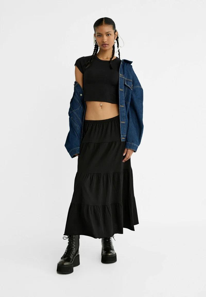 Falda de Pastel por Capas Elegante de Verano para Mujer Europea y Americana Transfronteriza Bohemia con Cintura Elástica Plisada en A