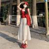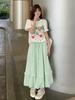 Falda vintage con bordado floral para mujer, de verano, de longitud media, combinable, corte A