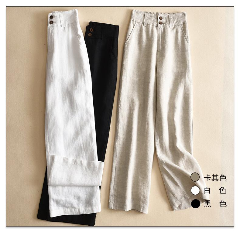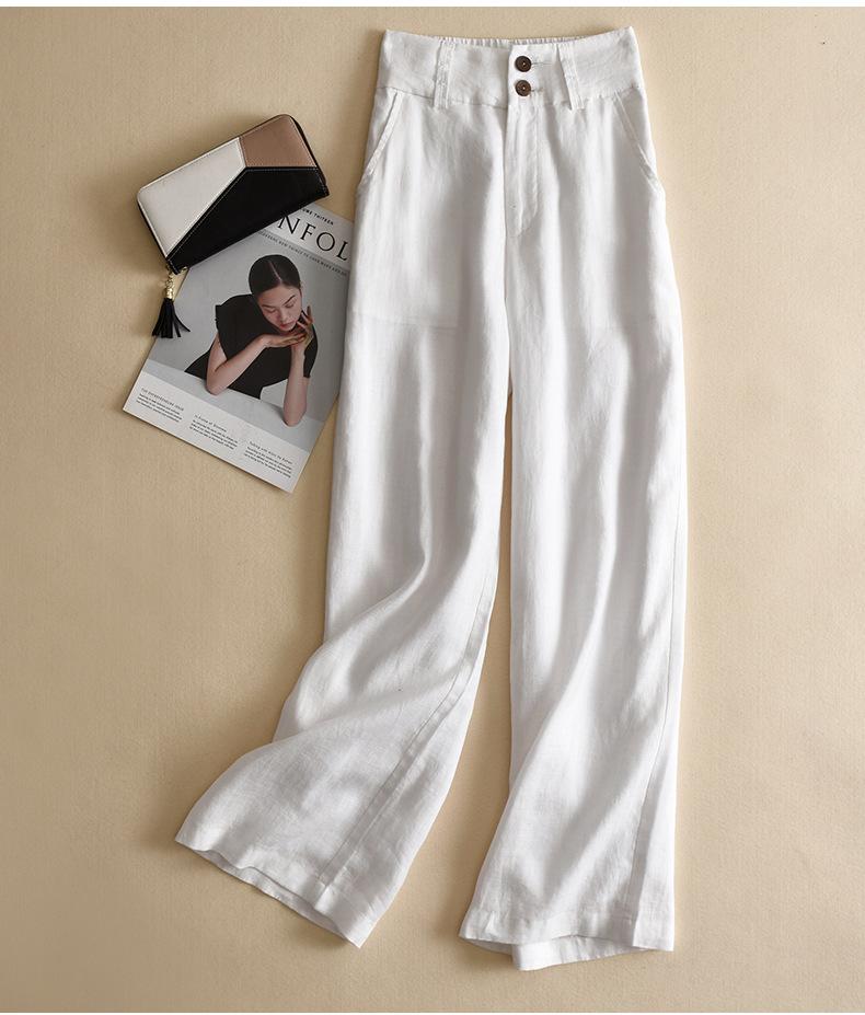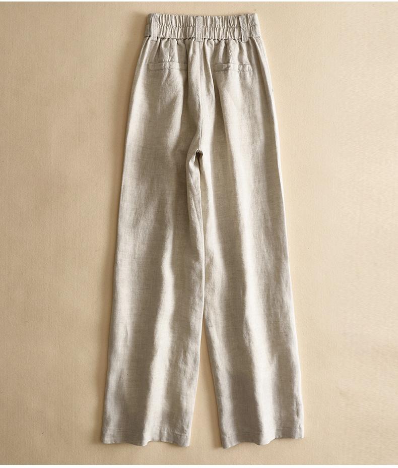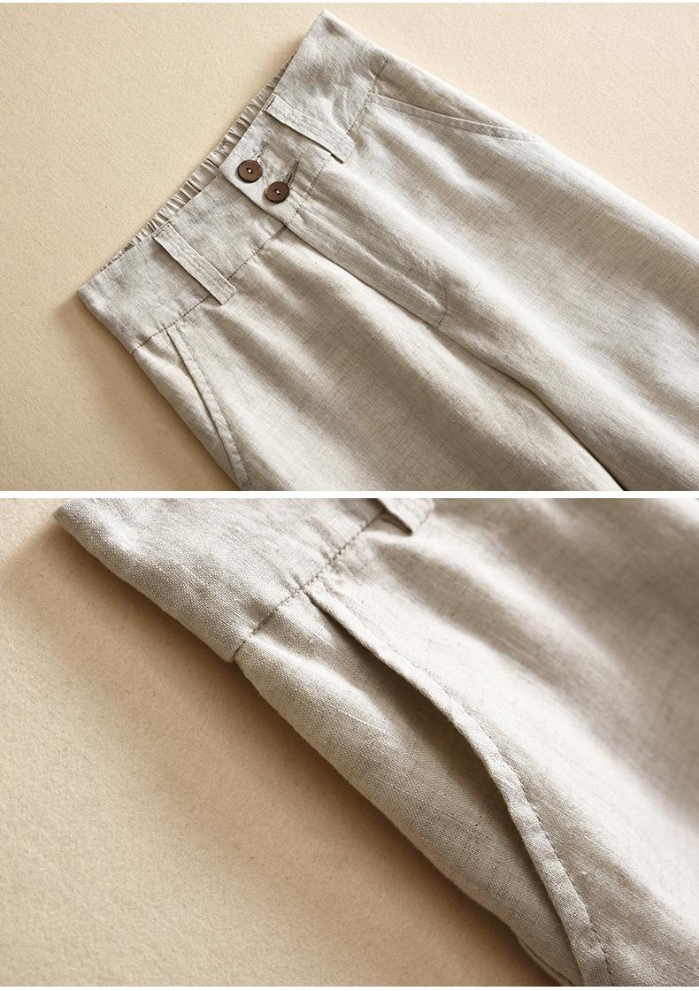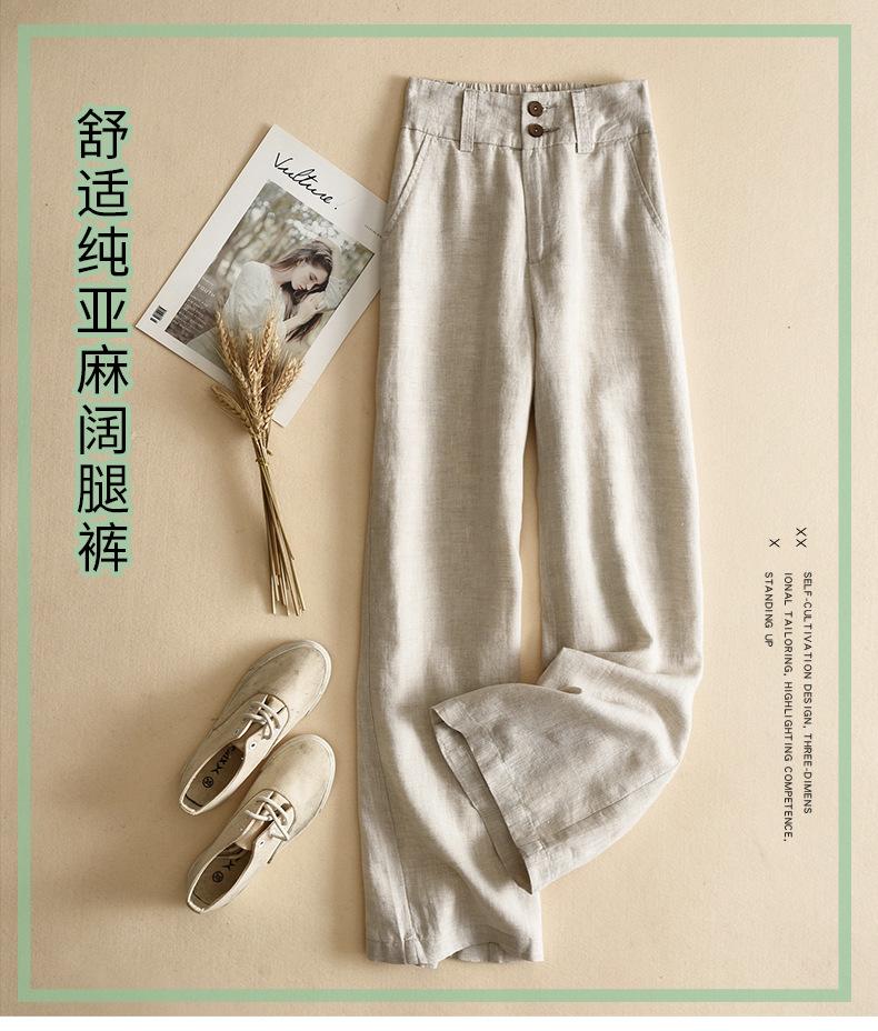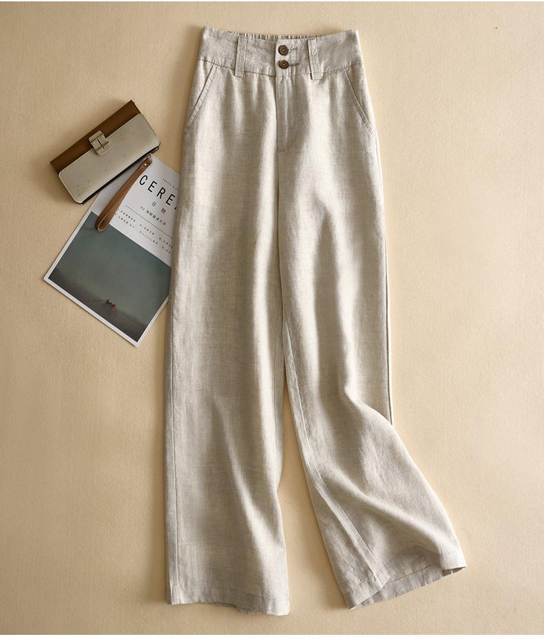 Pantalones casuales artísticos holgados de algodón y cáñamo para mujer de cintura alta y corte recto para primavera y verano 2025