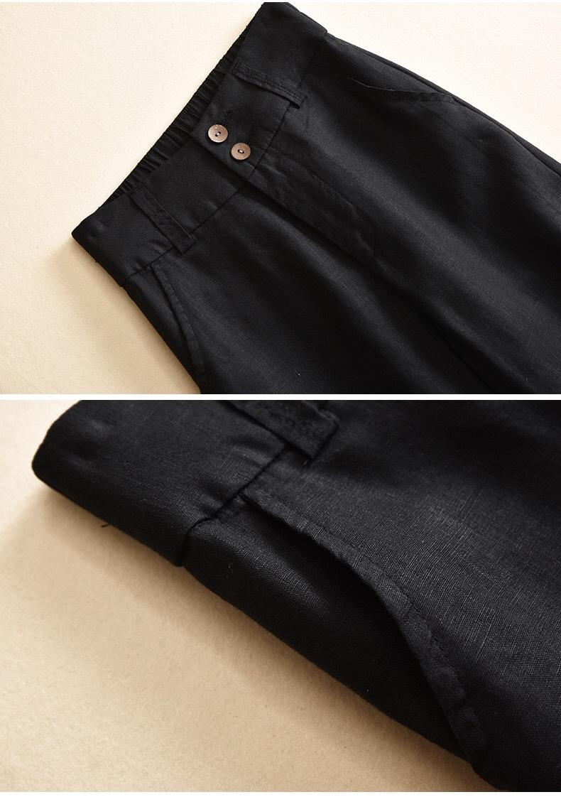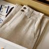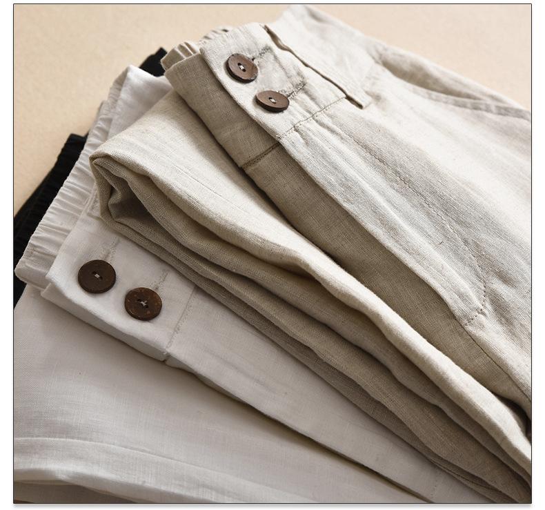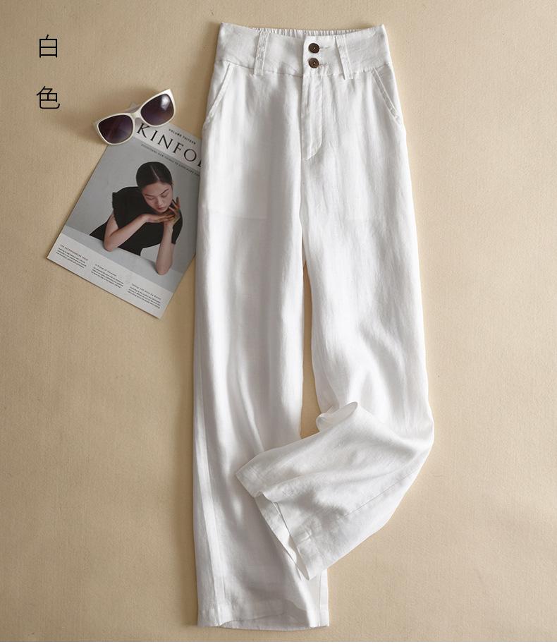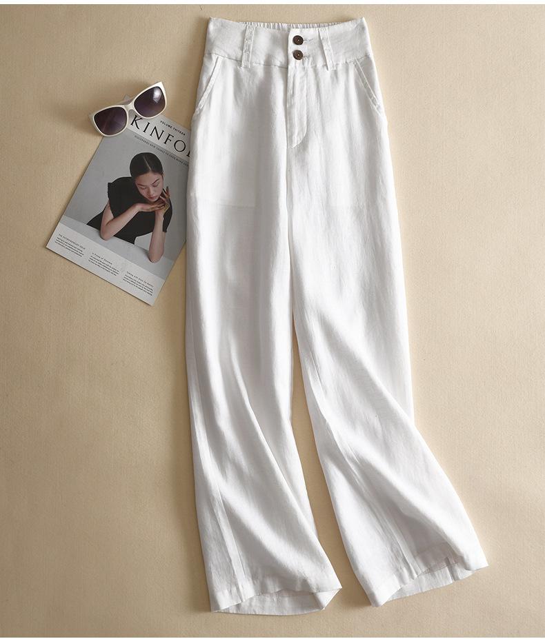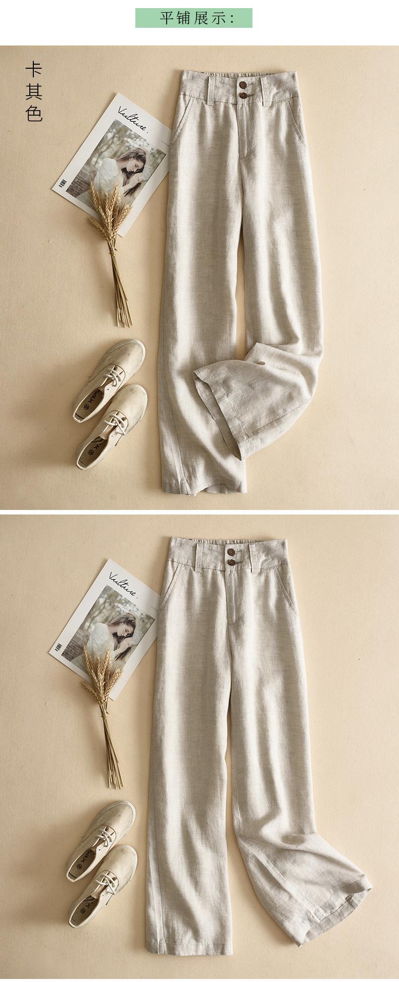 Pantalones casuales artísticos holgados de algodón y cáñamo para mujer de cintura alta y corte recto para primavera y verano 2025