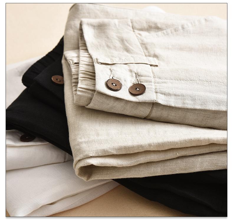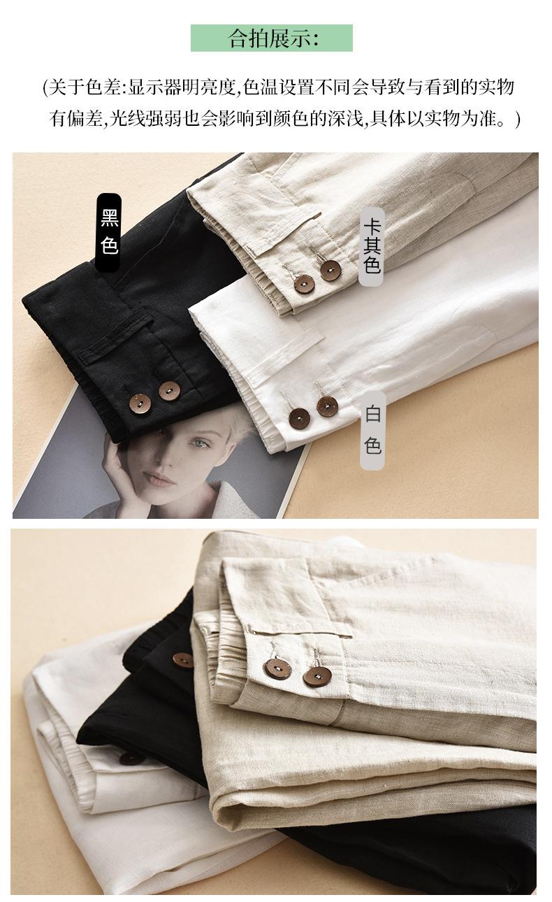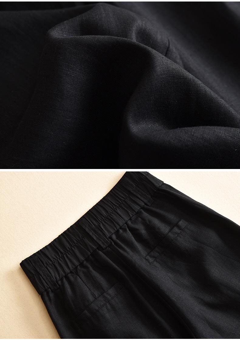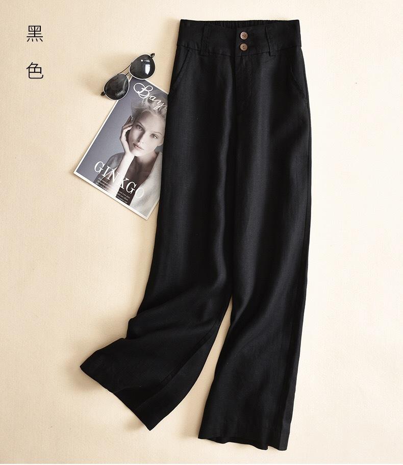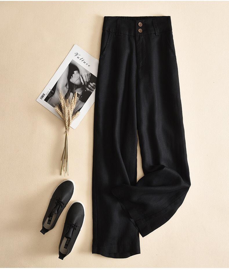 Pantalones casuales artísticos holgados de algodón y cáñamo para mujer de cintura alta y corte recto para primavera y verano 2025