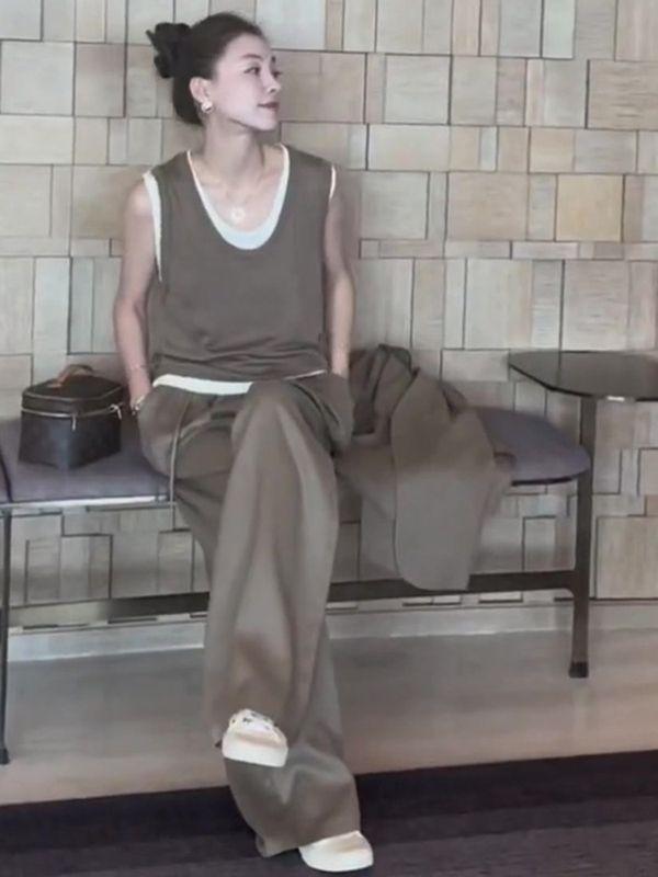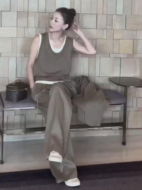 Traje 2025 Nuevo Moda de Verano para Mujer Moderno Top sin Mangas y Conjunto de Pantalones de Pierna Ancha