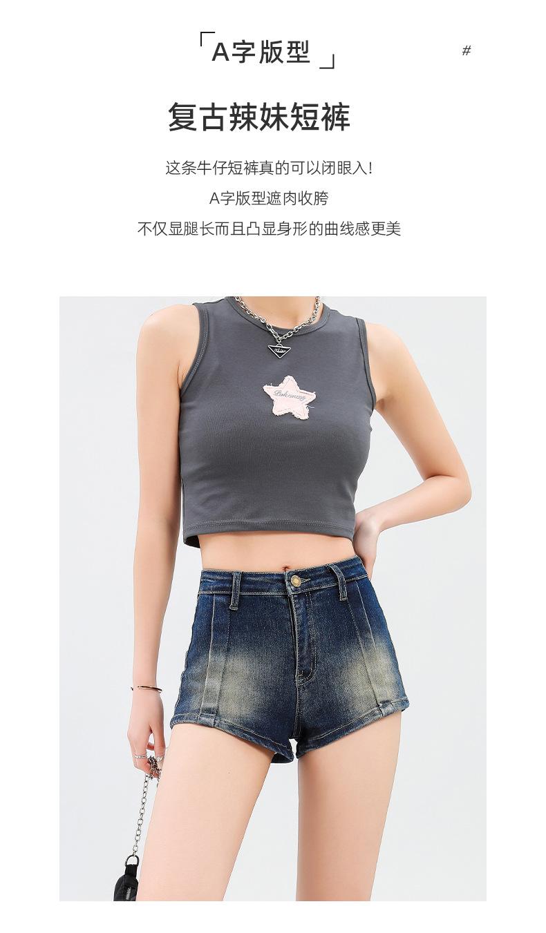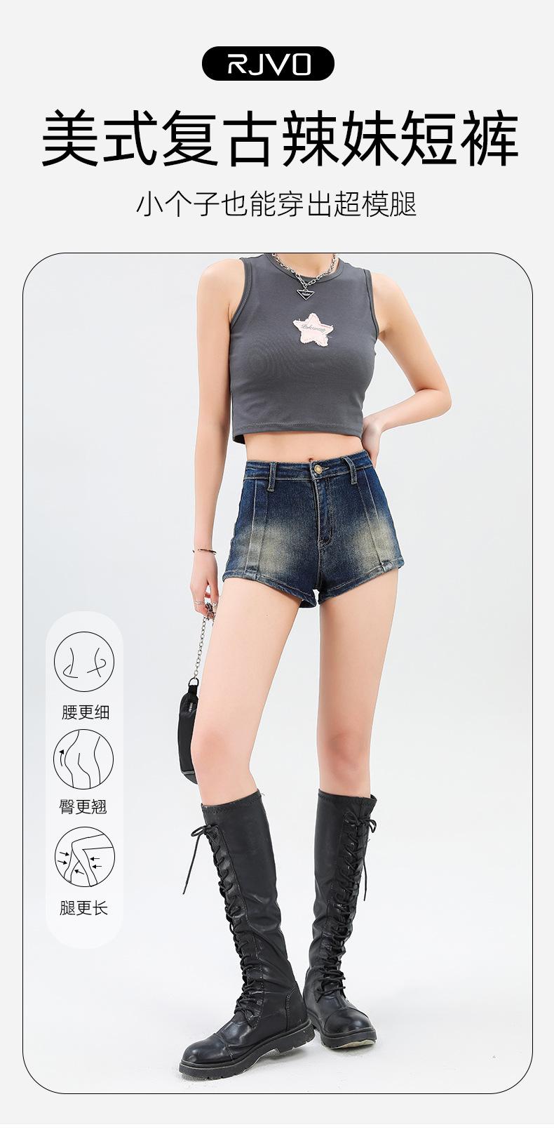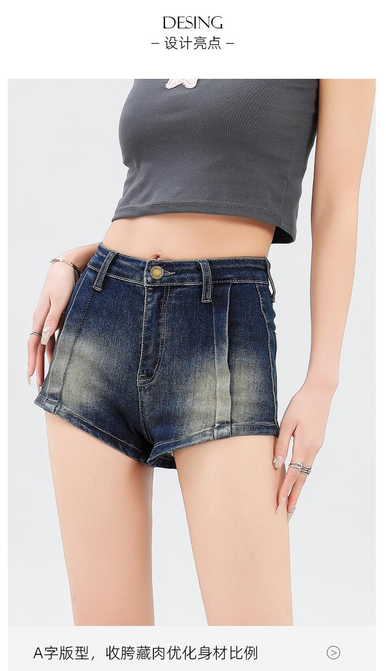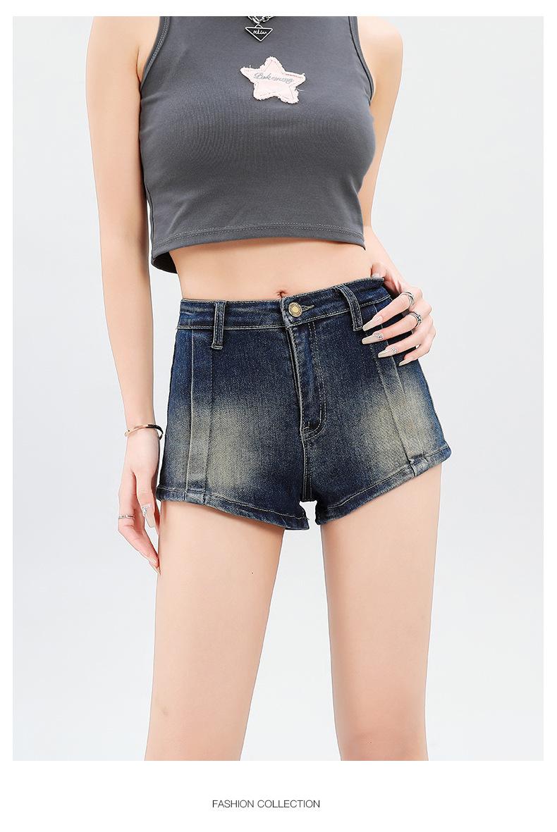 Pantalones cortos vaqueros elásticos estilo americano retro para mujer, novedad de verano 2025, pantalones cortos sexis de cintura alta y corte A, pantalones cortos ultracortos.