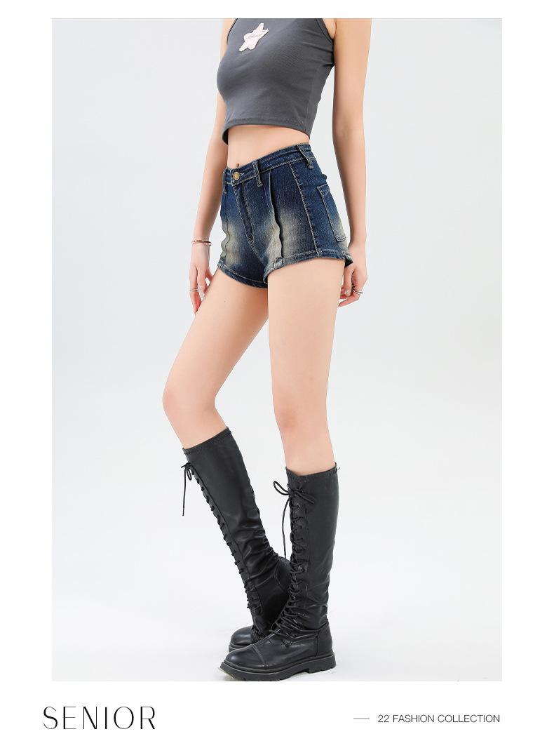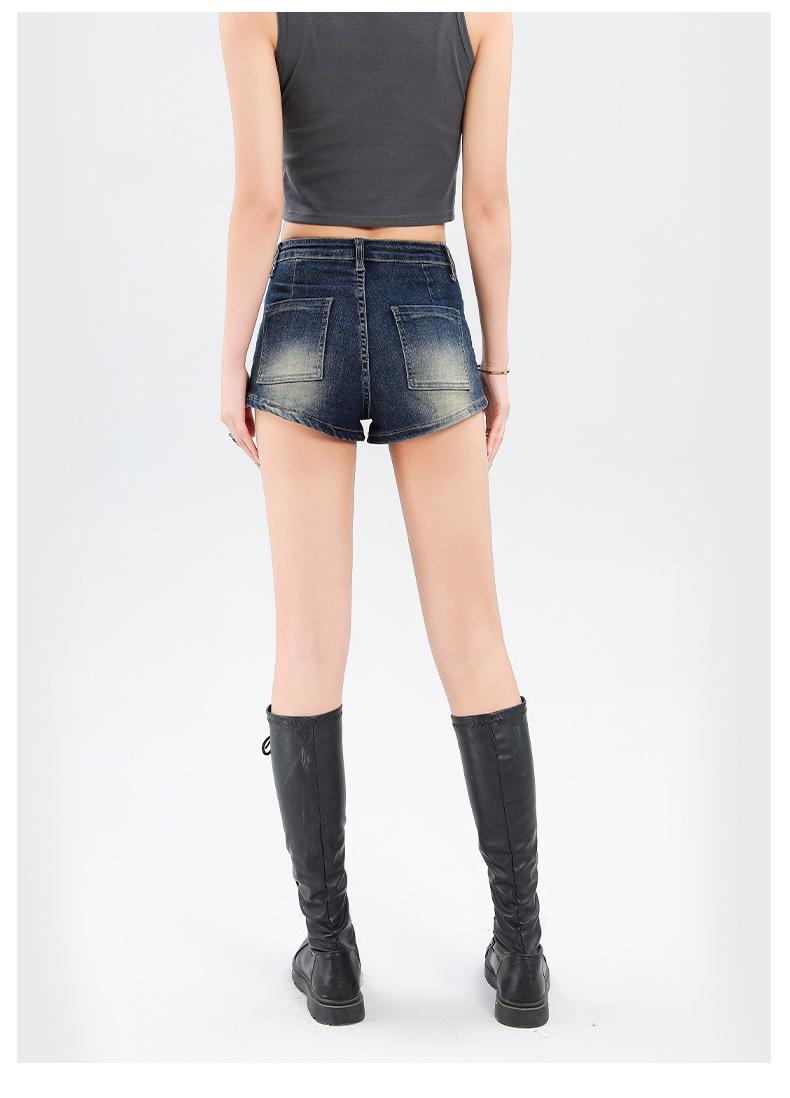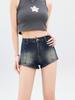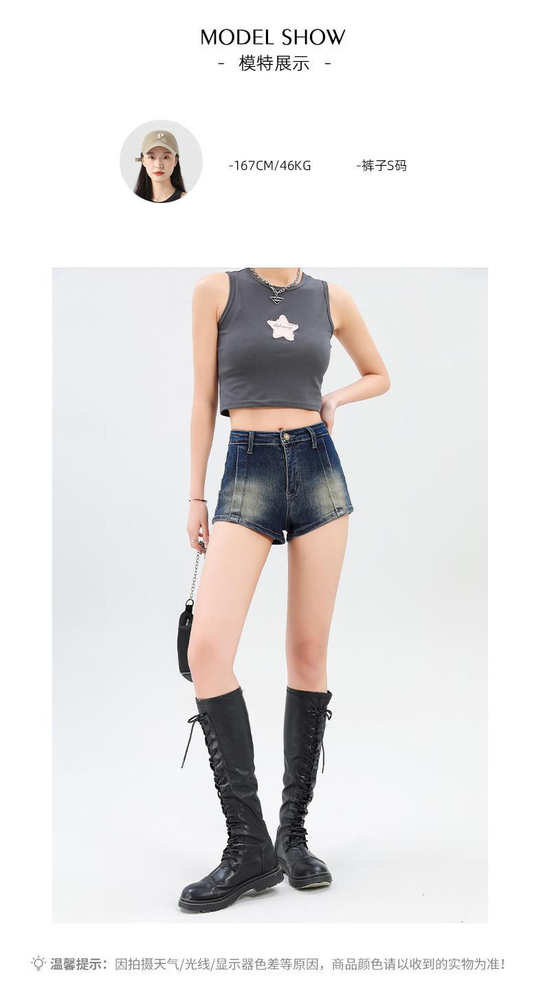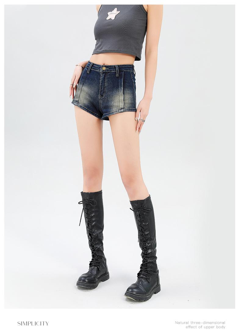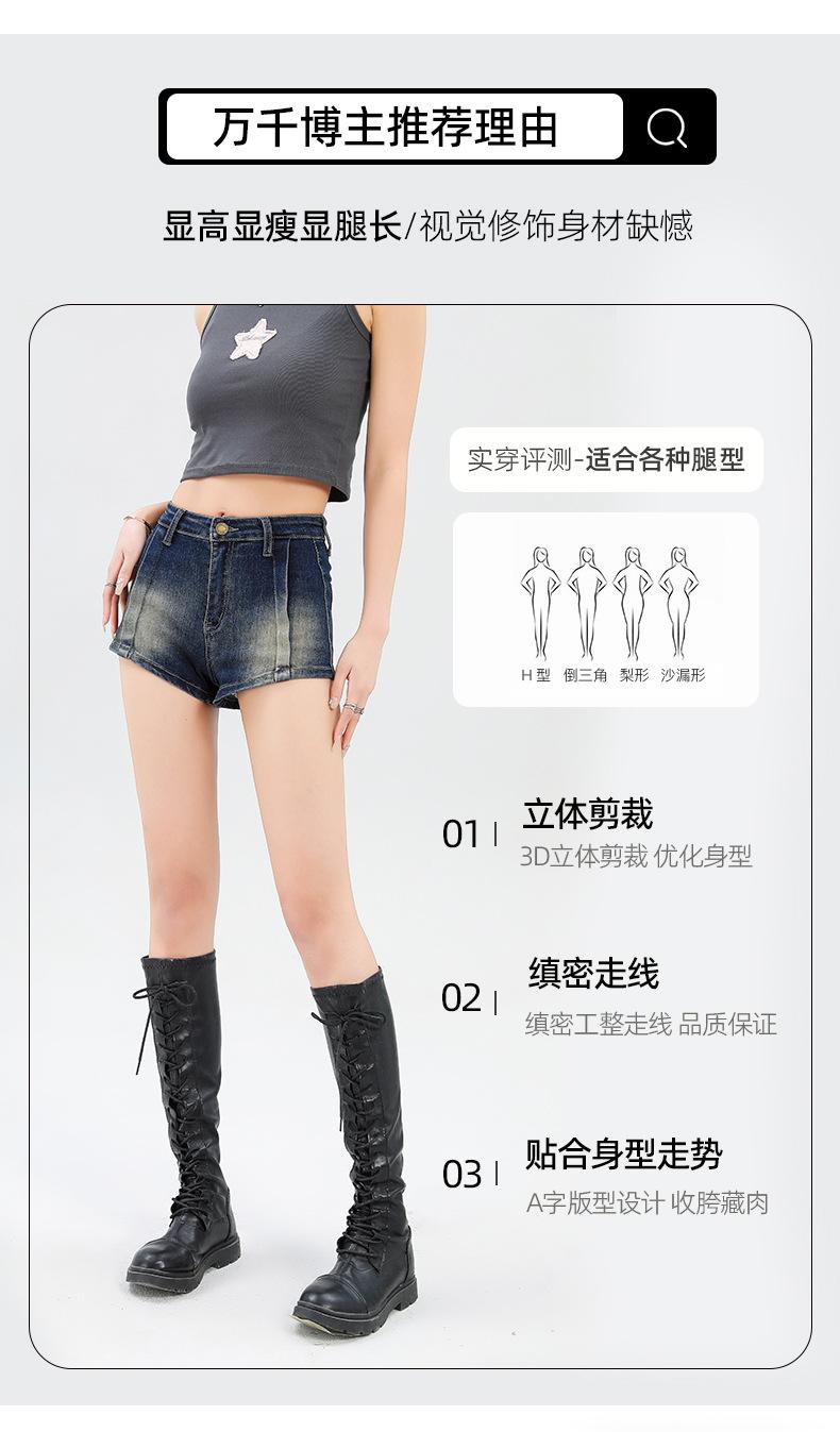 Pantalones cortos vaqueros elásticos estilo americano retro para mujer, novedad de verano 2025, pantalones cortos sexis de cintura alta y corte A, pantalones cortos ultracortos.