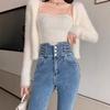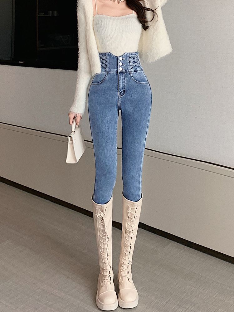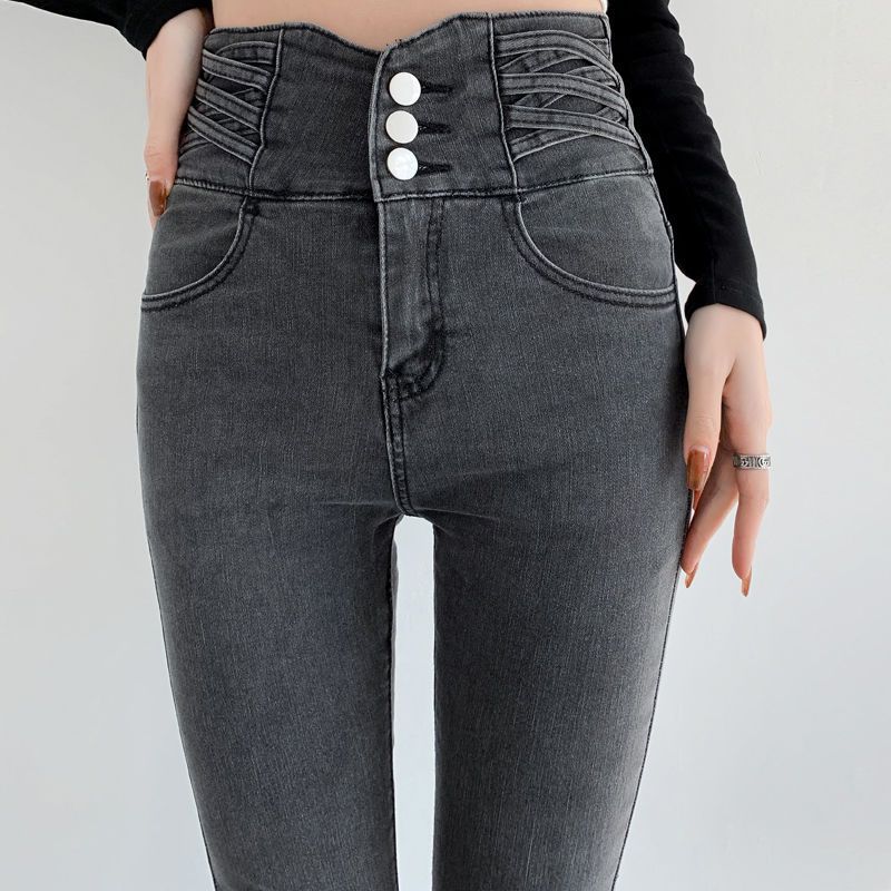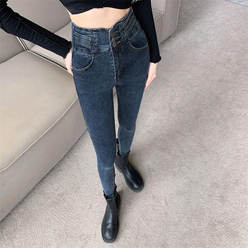 Pantalones vaqueros vintage de cintura alta para mujer, ajustados, adelgazantes, primavera y otoño de 2025, nuevos pantalones ajustados con lápiz para niños, elegantes