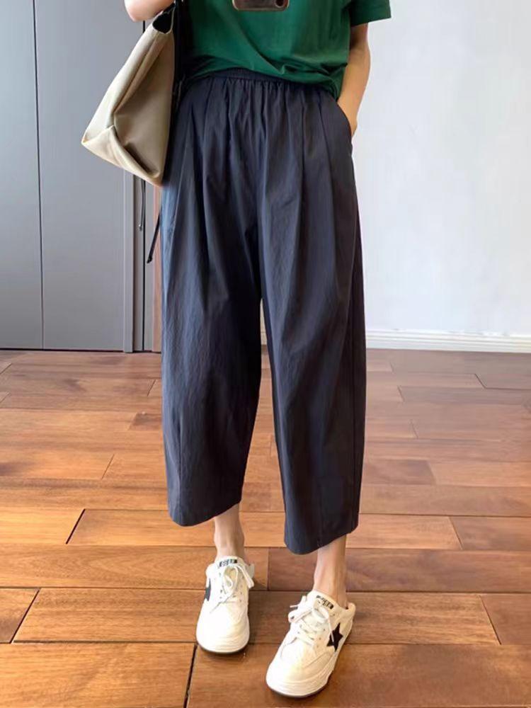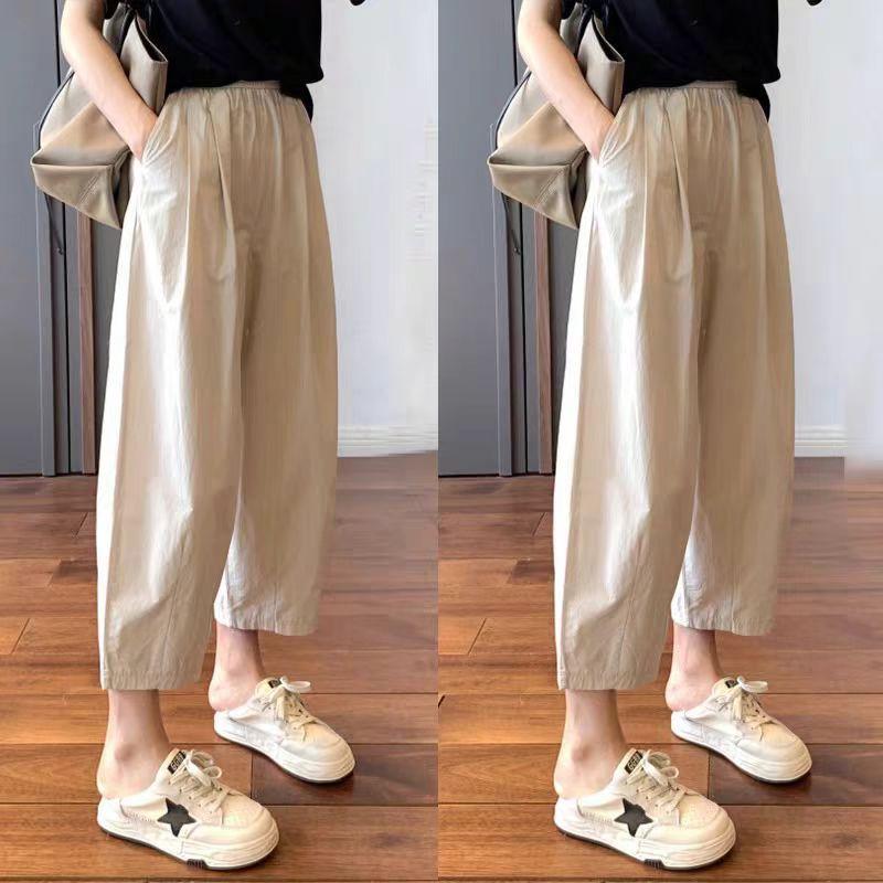 Pantalones de zanahoria cortos de estilo japonés para mujer, pantalones finos de verano 2025, nuevos pantalones Harlan informales holgados de pierna recta y ancha.